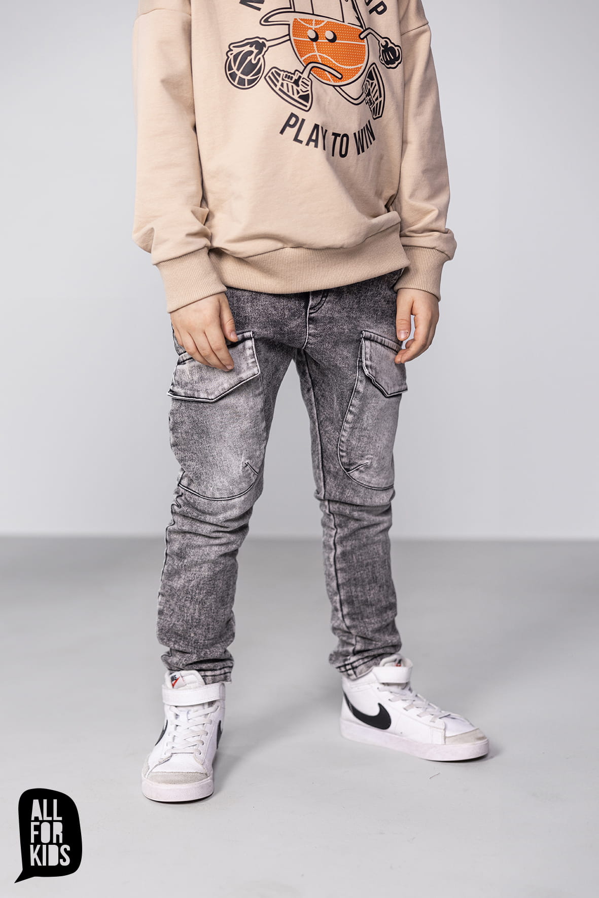 All For Kids spodnie jeansowe z kieszeniami grafitowe