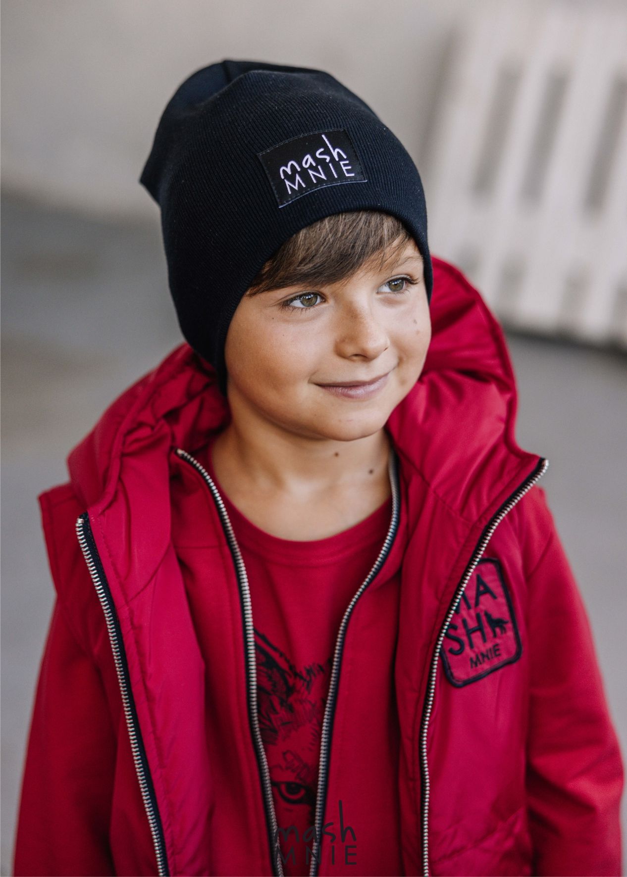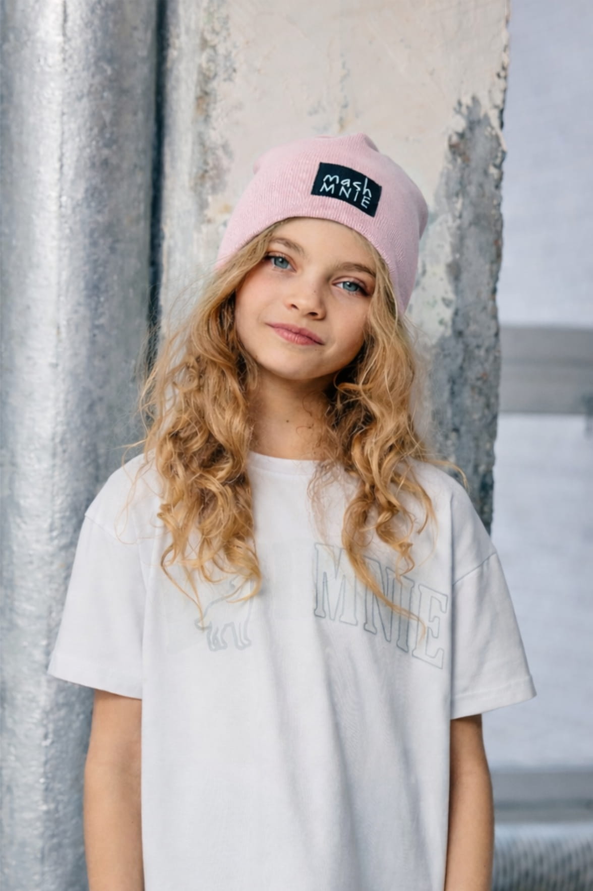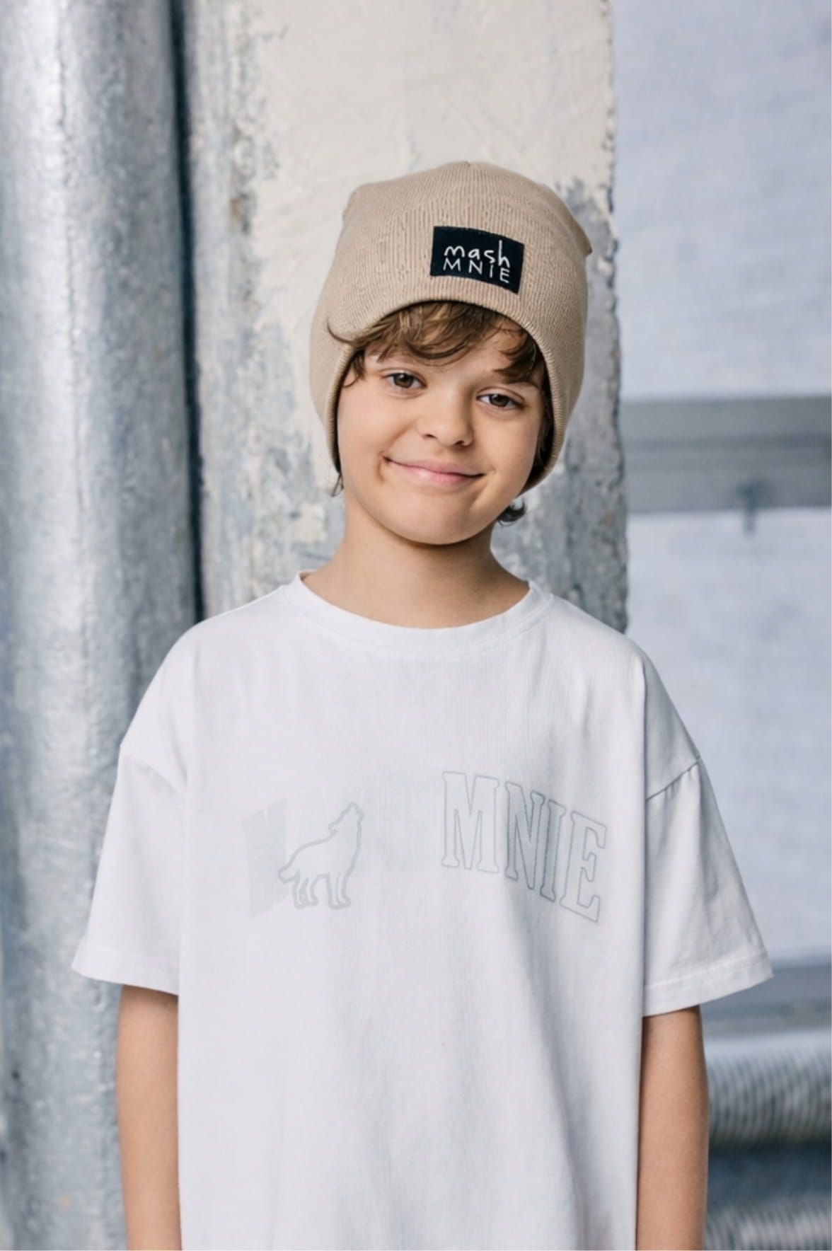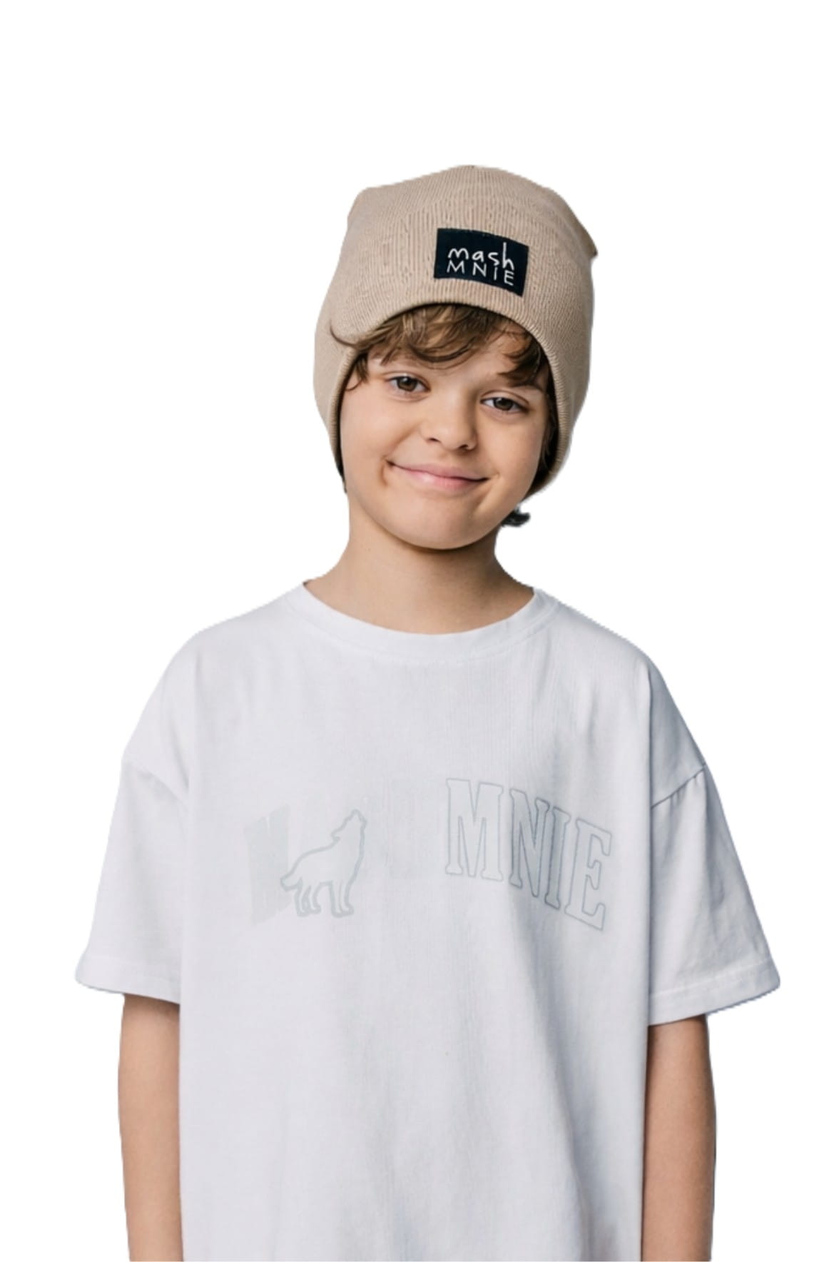 Beżowa czapka dziecięca powstała w Polsce przez markę Mash MNIE z komfortowej w noszeniu podwójnej dzianiny o strukturze prążkowanej.