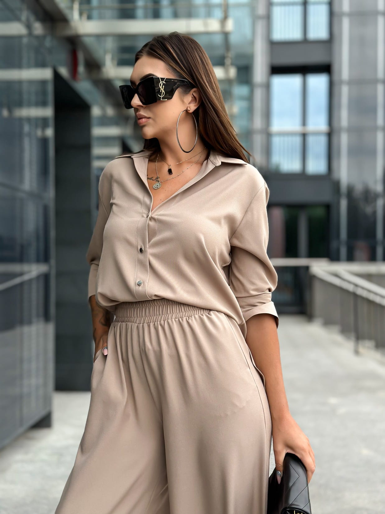 Modna koszula to podstawa każdej kobiecej garderoby. Beżowa koszula powstała w Polsce przez markę Me Gusta z przyjemnej w dotyku i komfortowej w noszeniu tkaniny.