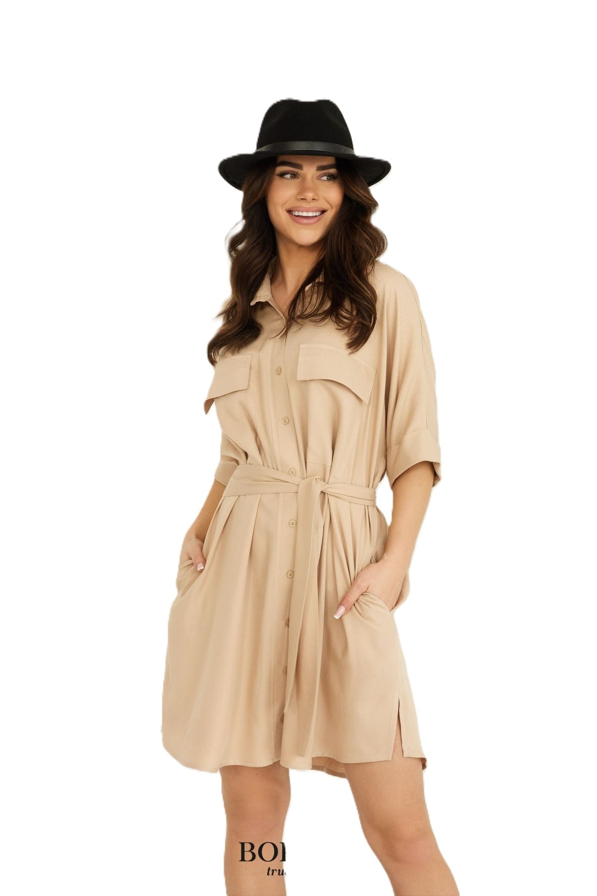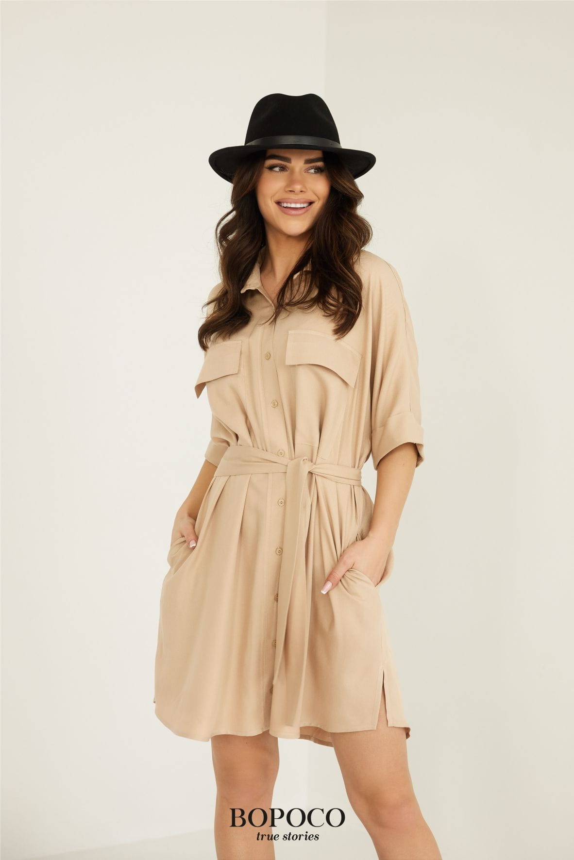Beżowa sukienka damska szmizjerka oversize Bopoco