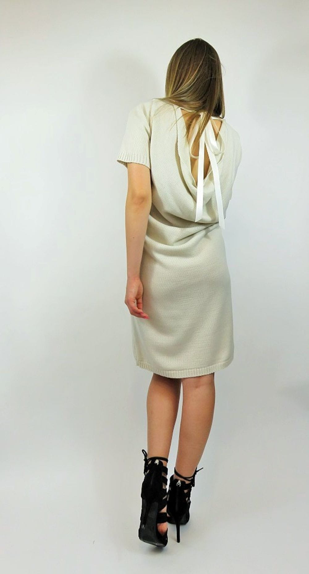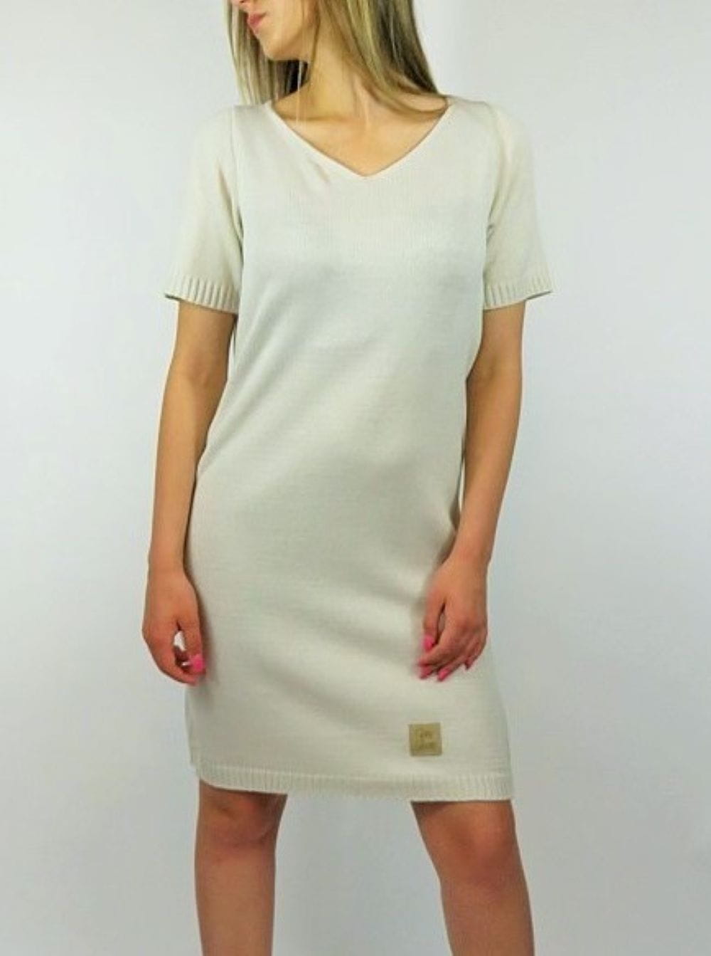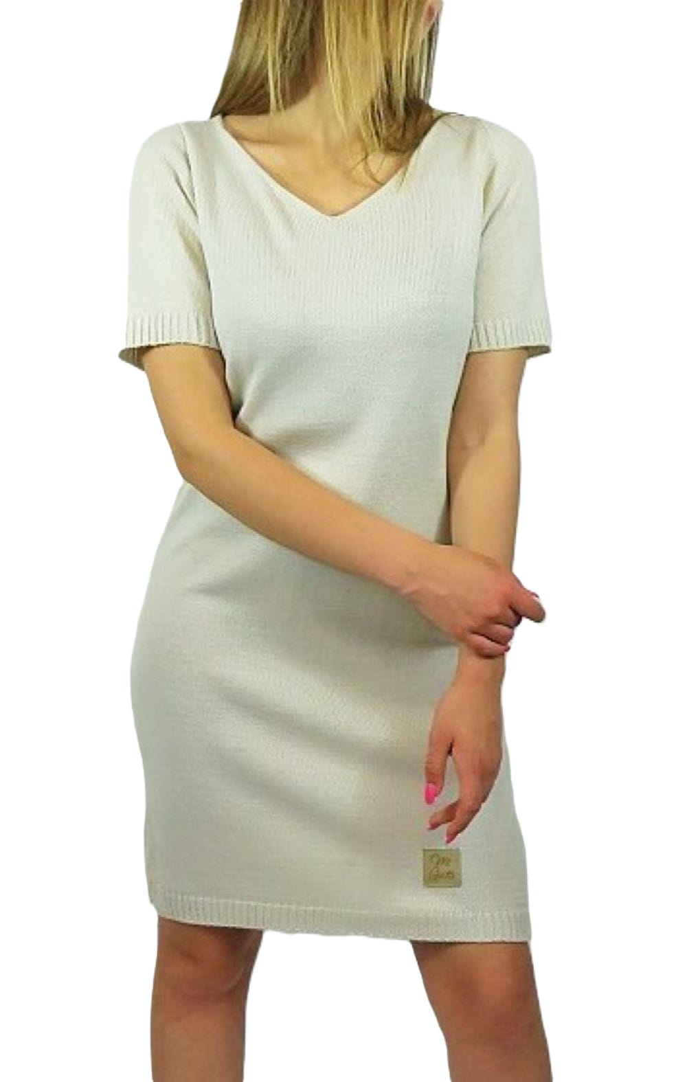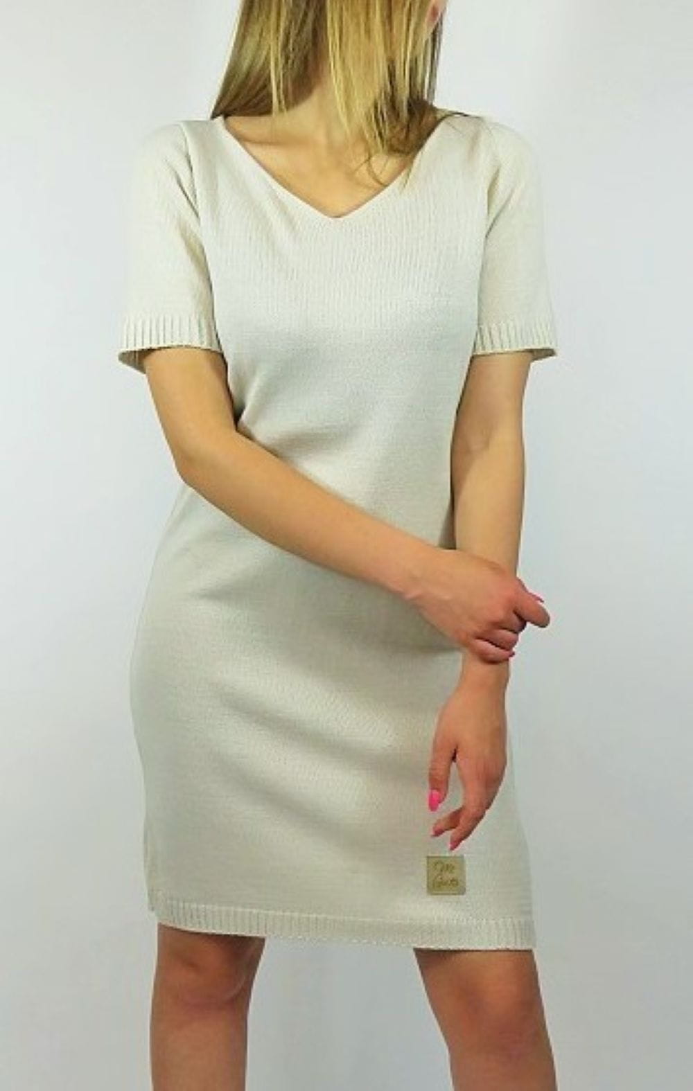 Beżowa sukienka dzianinowa Me Gusta