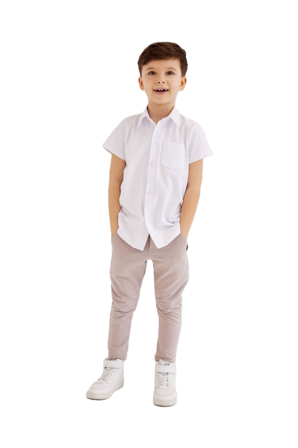 Beżowe spodnie chłopięce powstały w Polsce przez markę All For Kids z wysokiej jakości, komfortowej w noszeniu dzianiny dresowej.
