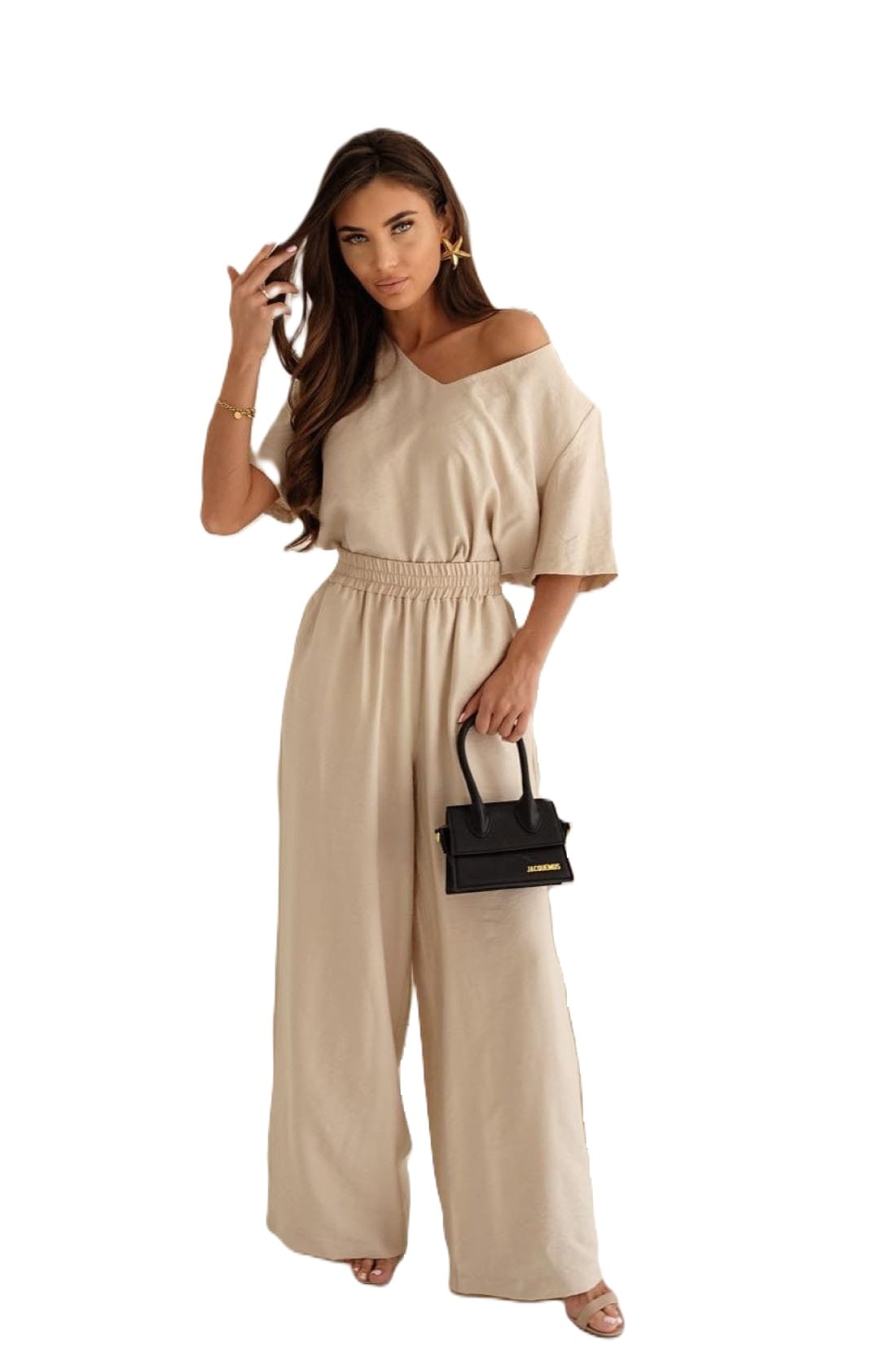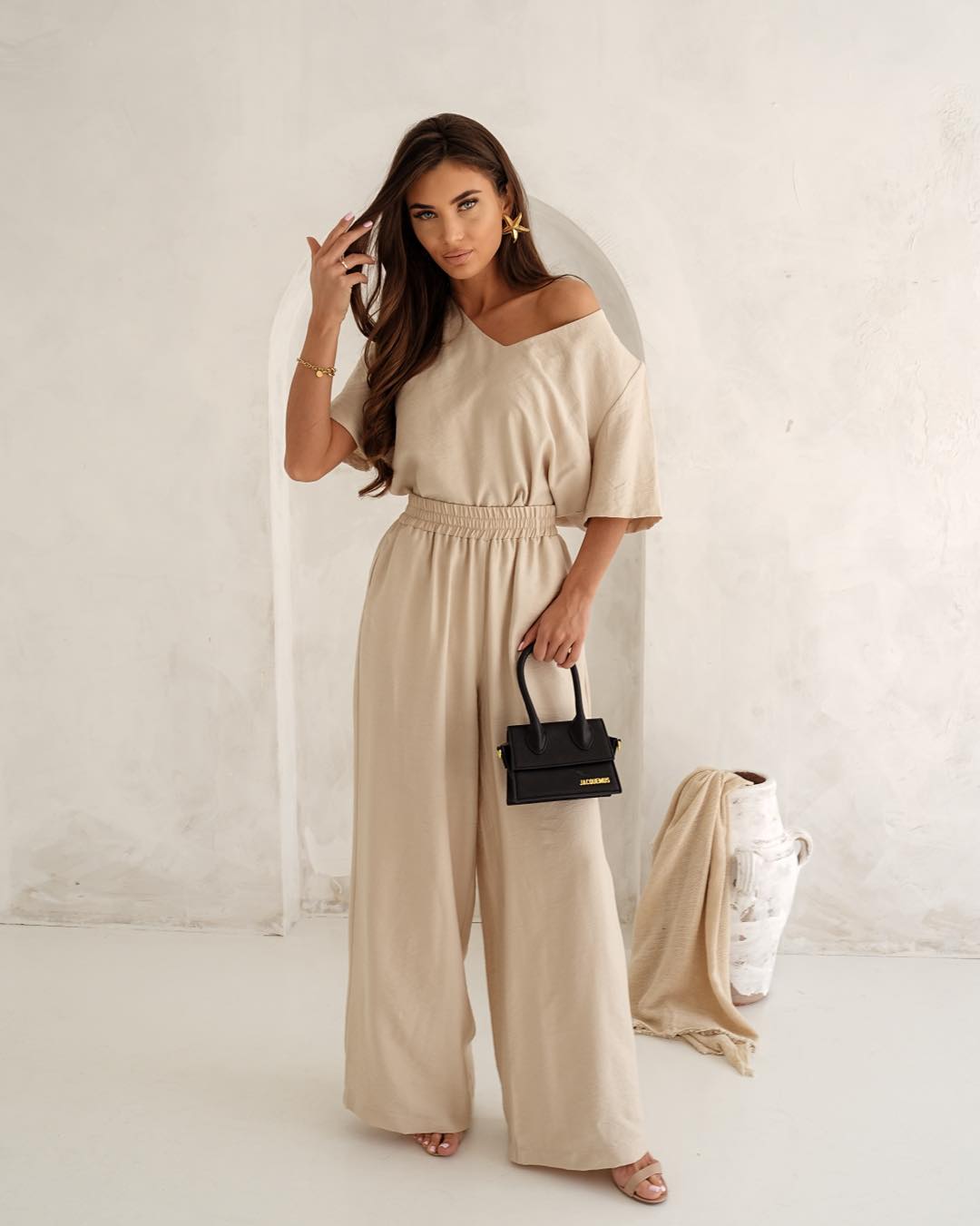 Beżowe spodnie z szerokimi nogawkami Me Gusta [ROZMIAR: uniwersalny, KOLOR: odcienie brązu i beżu]