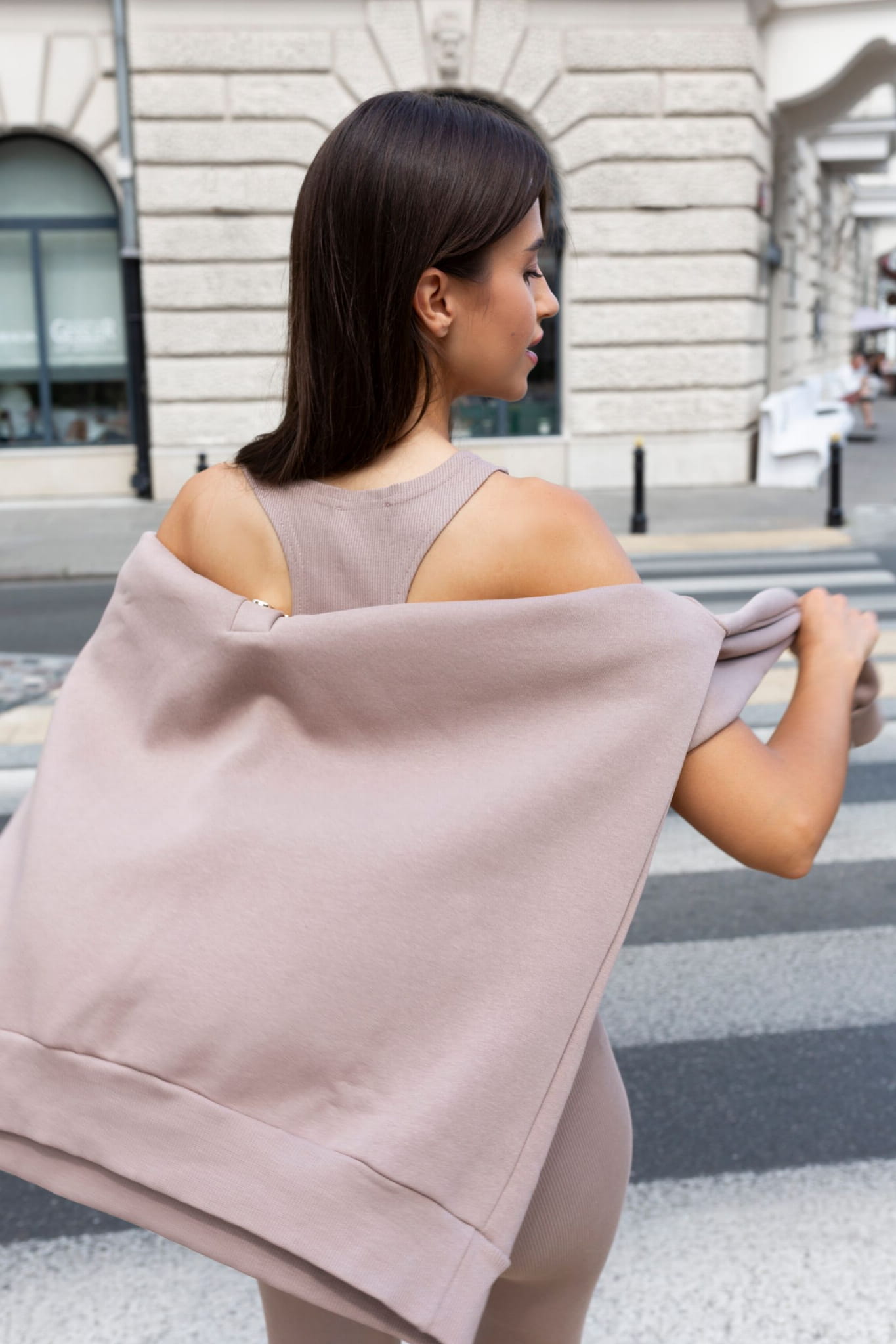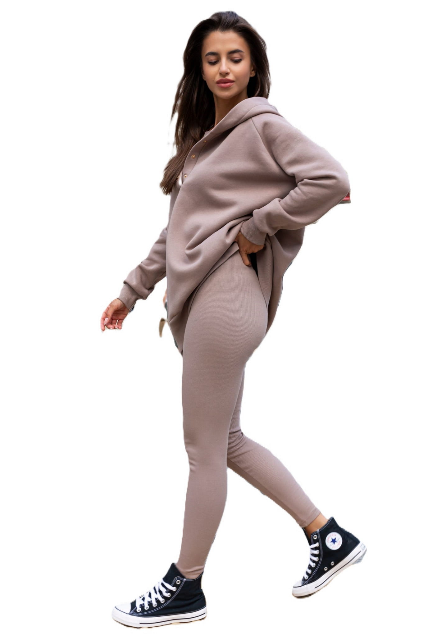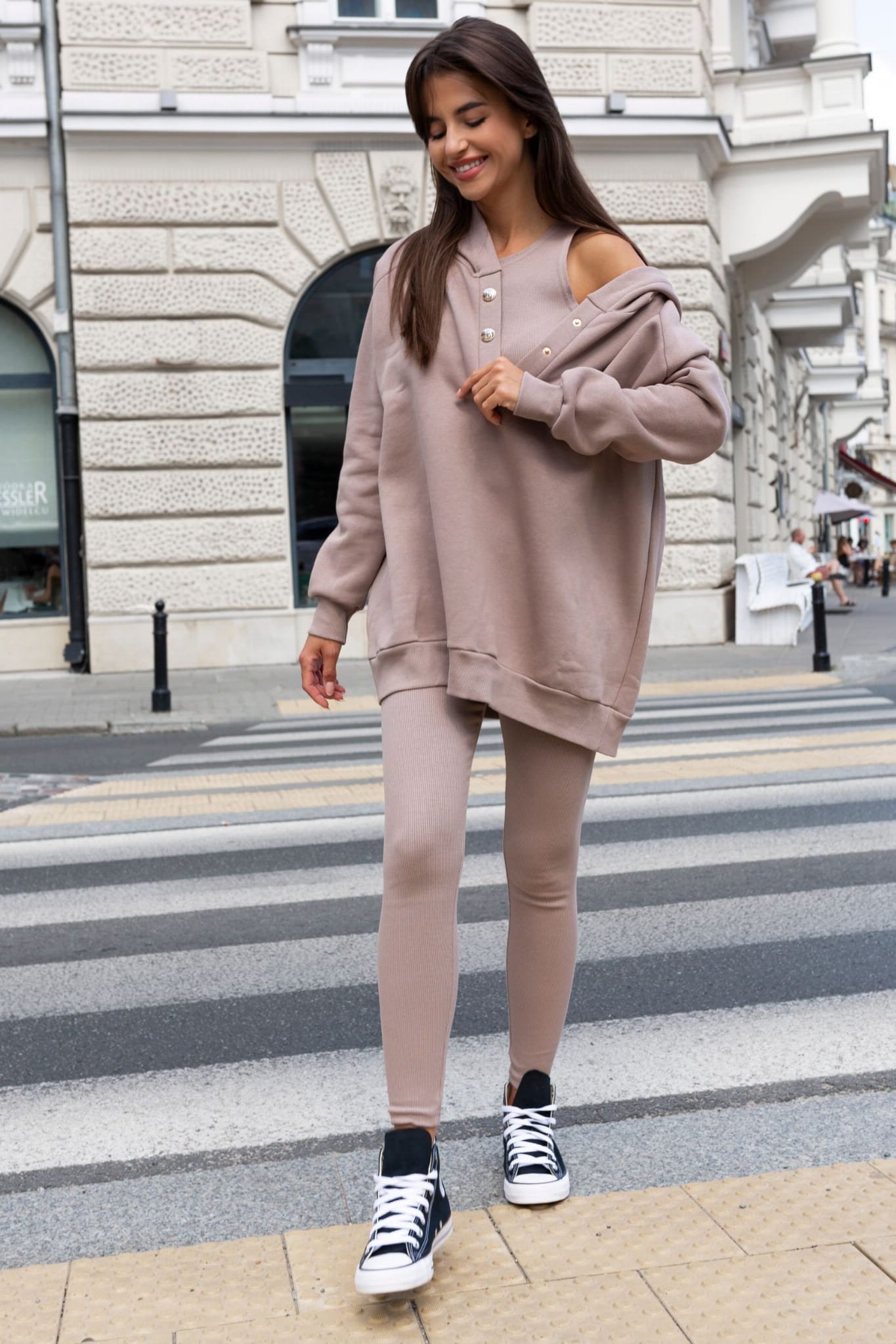 Beżowy komplet 3-częściowy bluza legginsy bokserka LaBalancia
