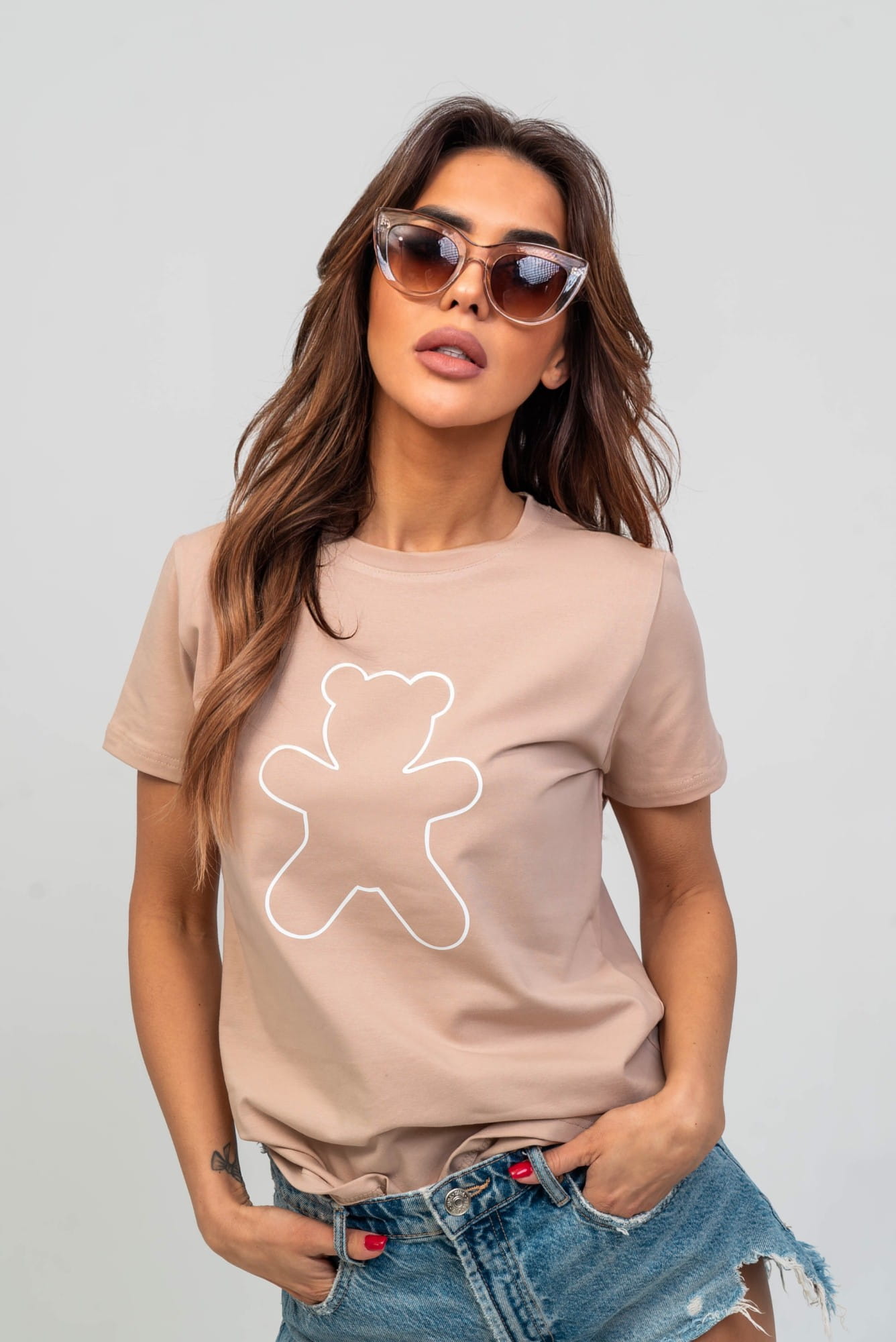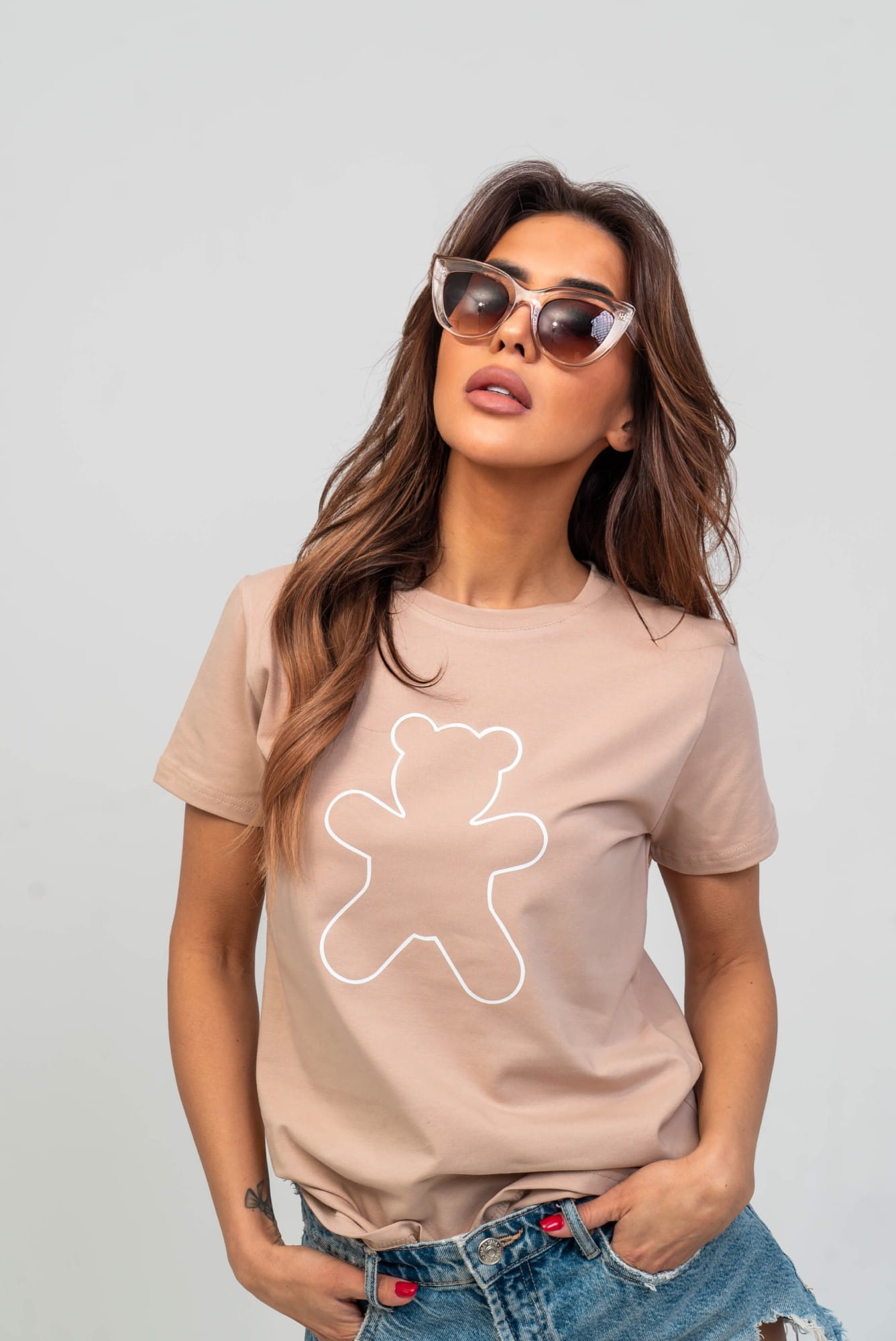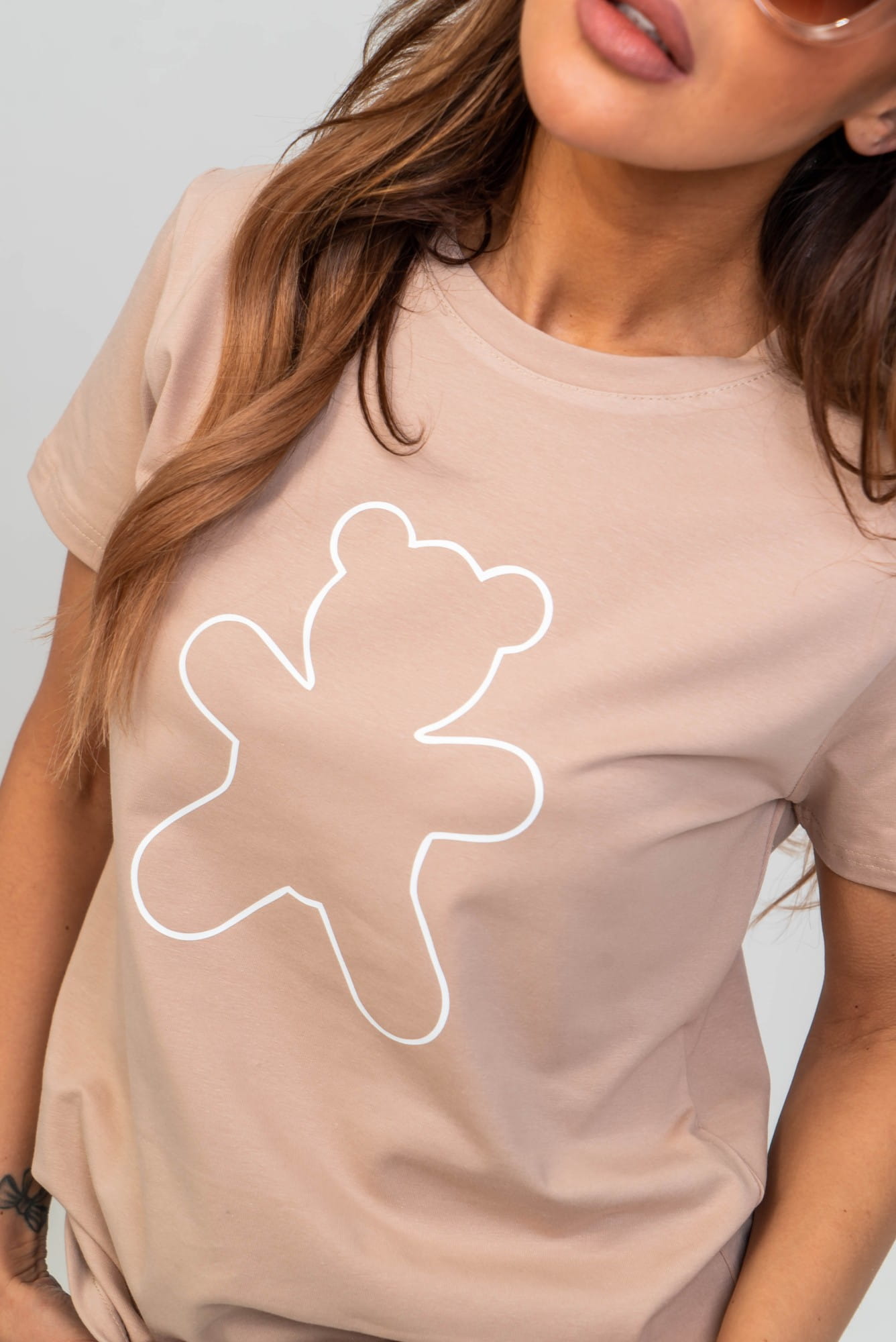 Beżowy t-shirt damski miś TMC Moda