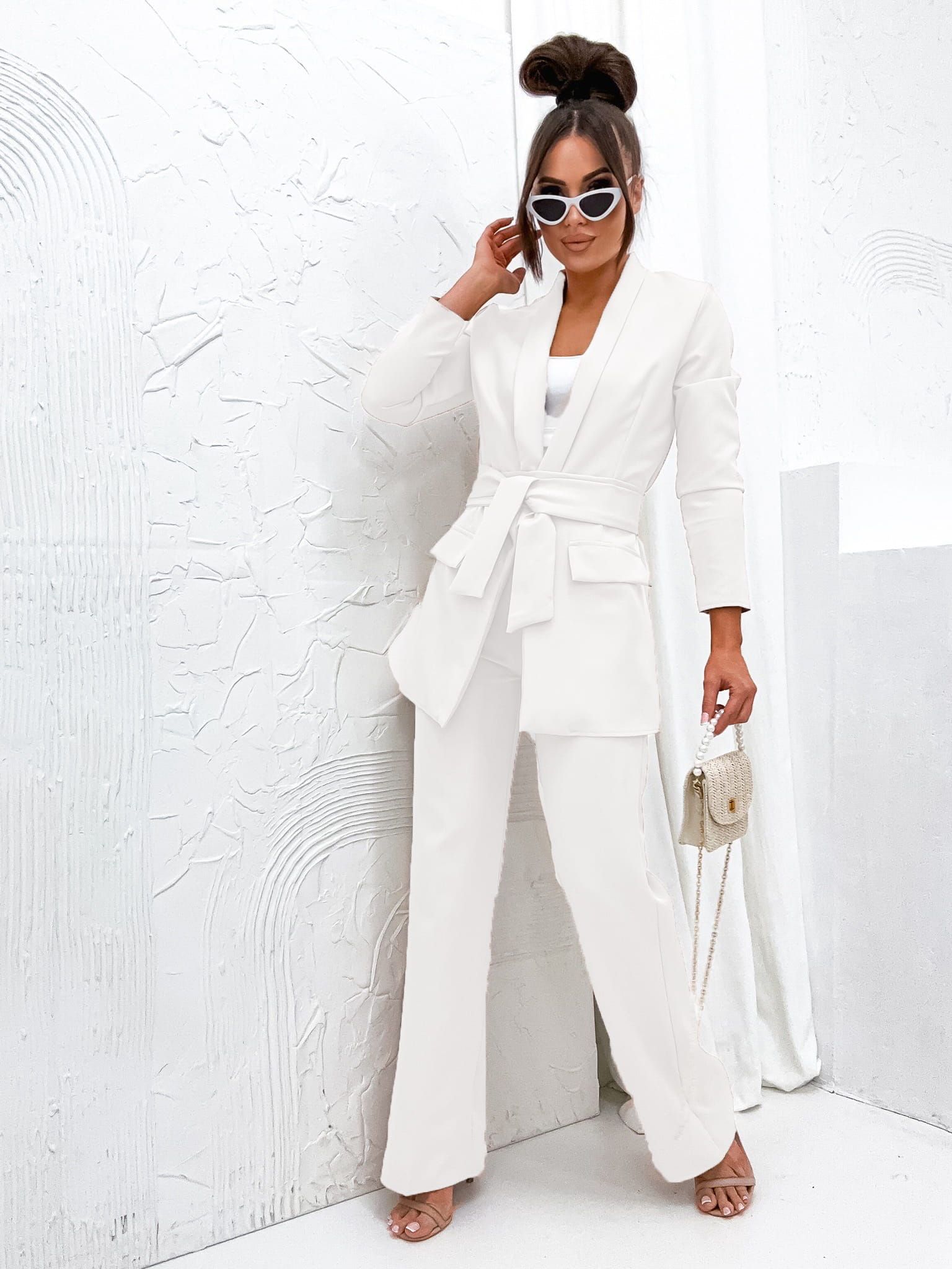 Biały garnitur komplet damski szerokie spodnie i długa marynarka Moon
