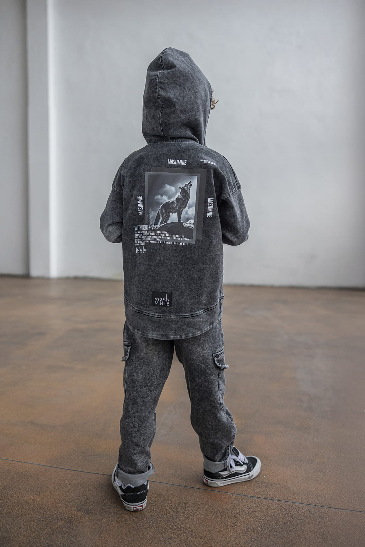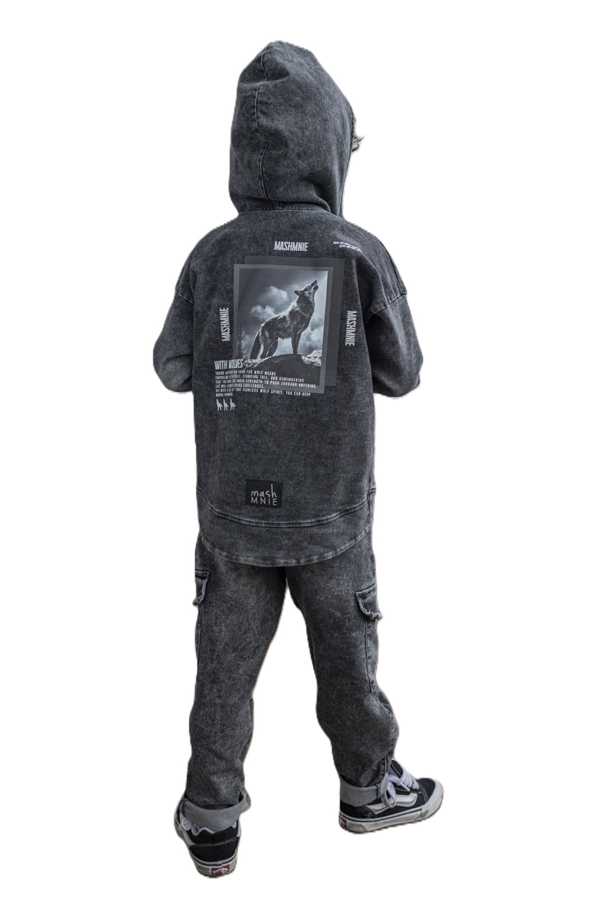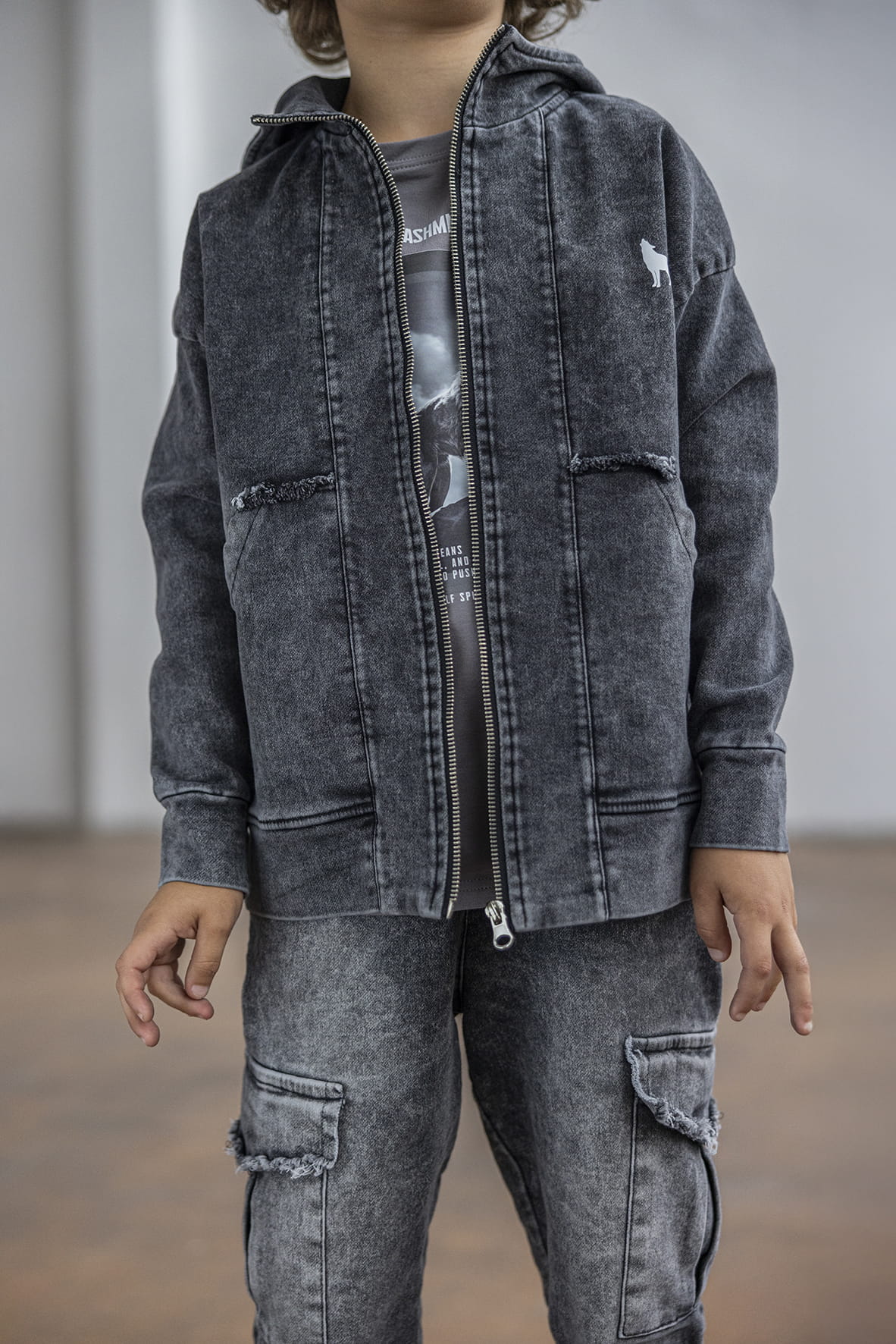 Bluza jeansowa z wilkiem kaptur zamek grafitowa Mash MNIE