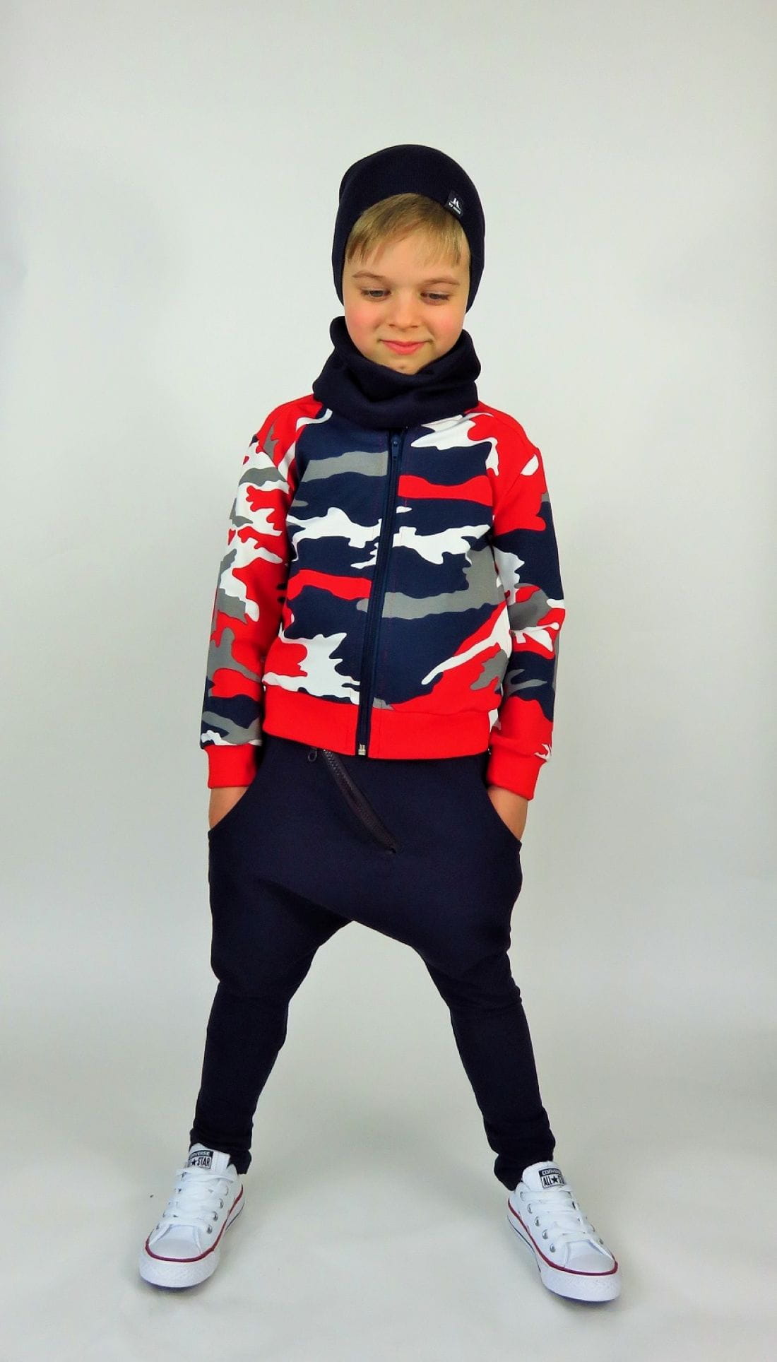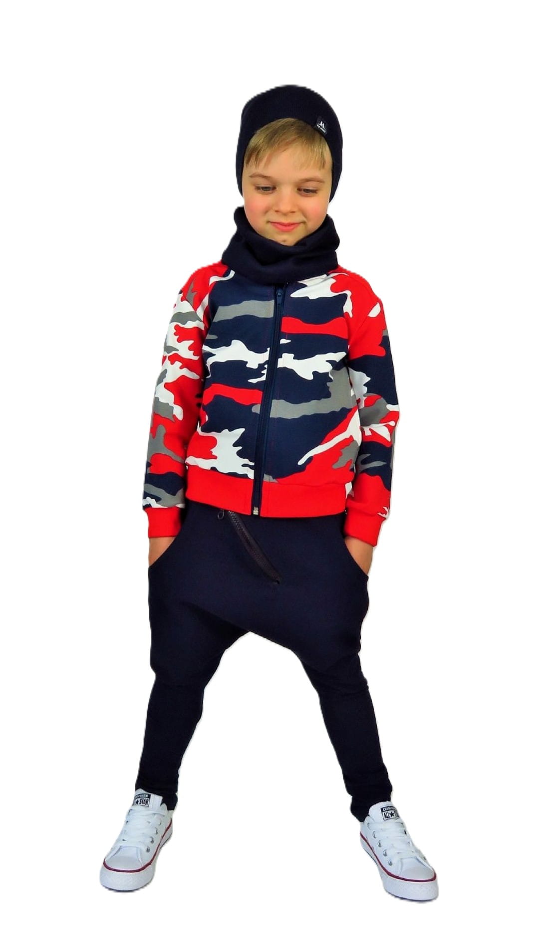 Kolorowa bluza bomberka powstała w Polsce przez markę Caramba Mamma z komfortowej w noszeniu dzianiny dresowej.