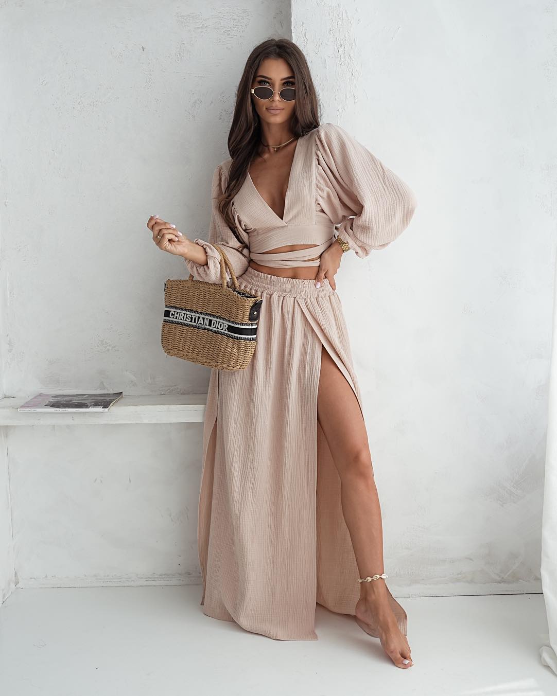 Bluzka z muślinu wiązana beżowa Me Gusta