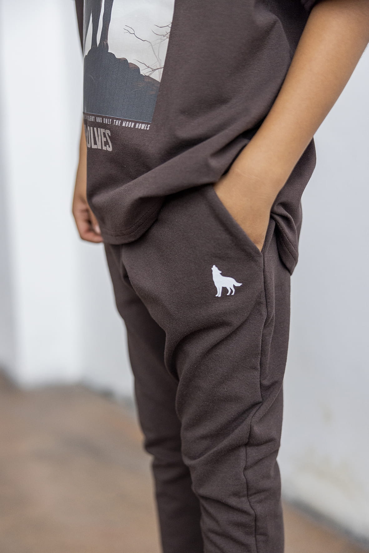 Brązowe spodnie wolf od polskiej marki Mash MNIE to modny i stylowy element w dziecięcej garderobie. Modne spodnie dziecięce wykonane zostały z wysokiej jakości, komfortowej w noszeniu dzianiny dresowej.