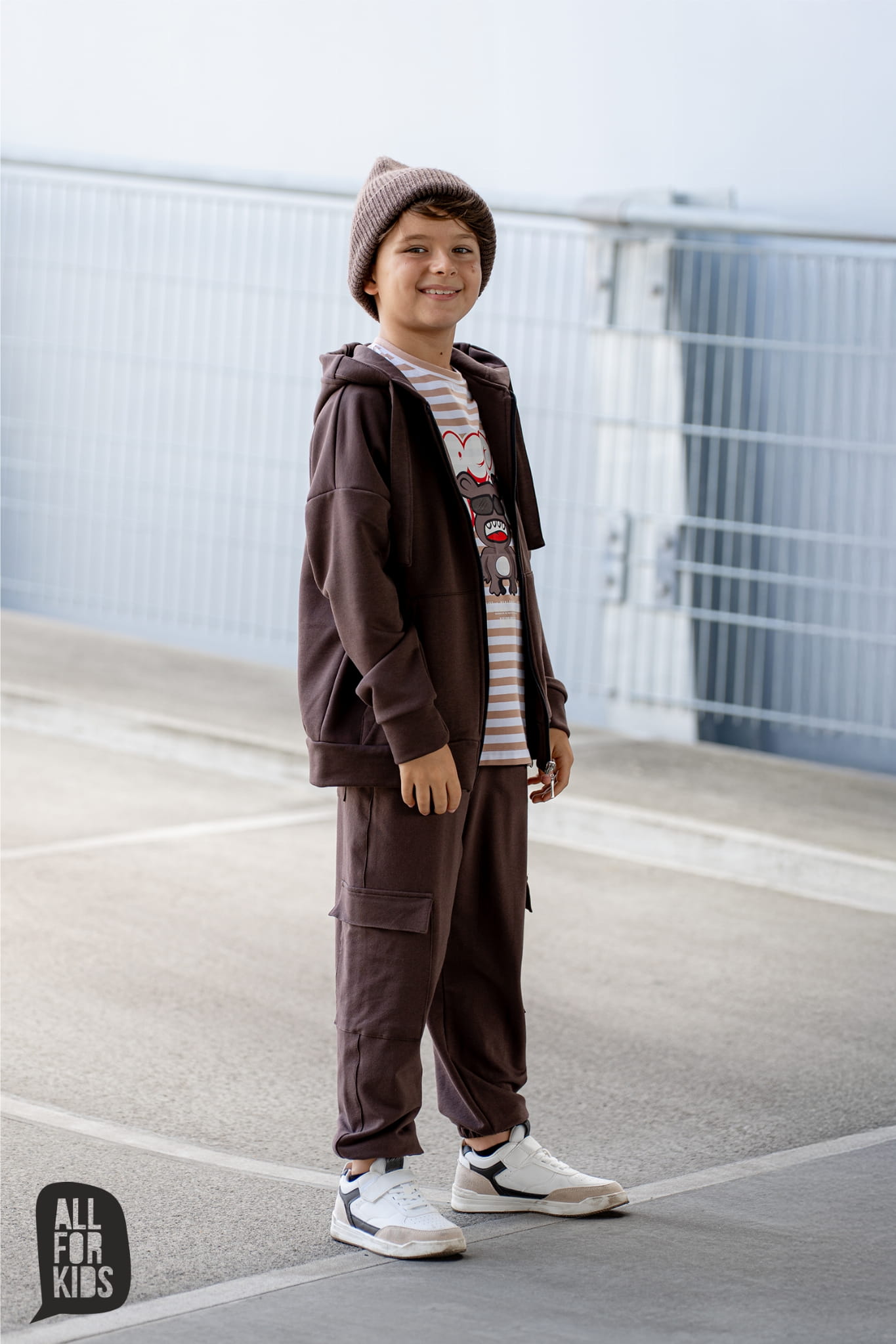 Brązowe spodnie dziecięce z kieszeniami i gumką na dole to połączenie wygody i stylu. Uszyte przez polską markę All For Kids z miękkiej dzianiny dresowej, zapewniają wygodę i modny wygląd.