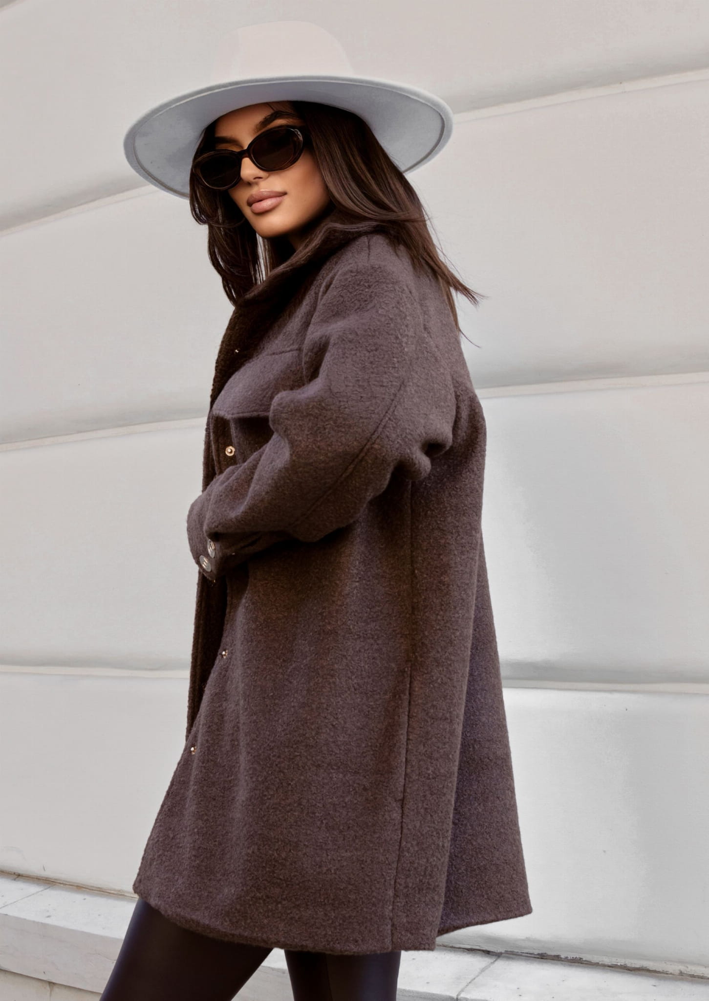 Dodaj ten niezwykły płaszcz do swojej garderoby. Dzięki swojej uniwersalności i modnemu designowi, płaszcz BOUCLE w kolorze czekolady stanie się nieodłącznym elementem Twojej jesiennej i jesienno-zimowej stylizacji.