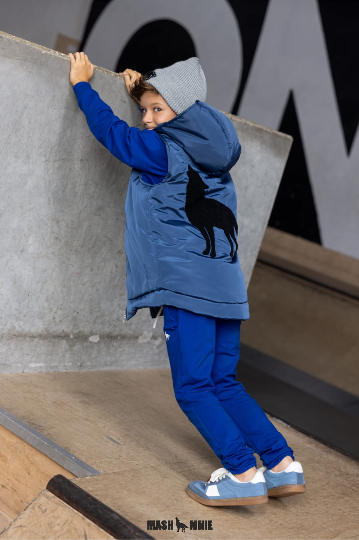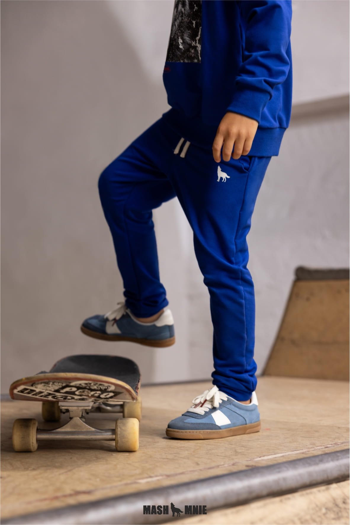 Chabrowe spodnie wolf od polskiej marki Mash MNIE to modny i stylowy element w dziecięcej garderobie. Modne spodnie dziecięce wykonane zostały z wysokiej jakości, komfortowej w noszeniu dzianiny dresowej.