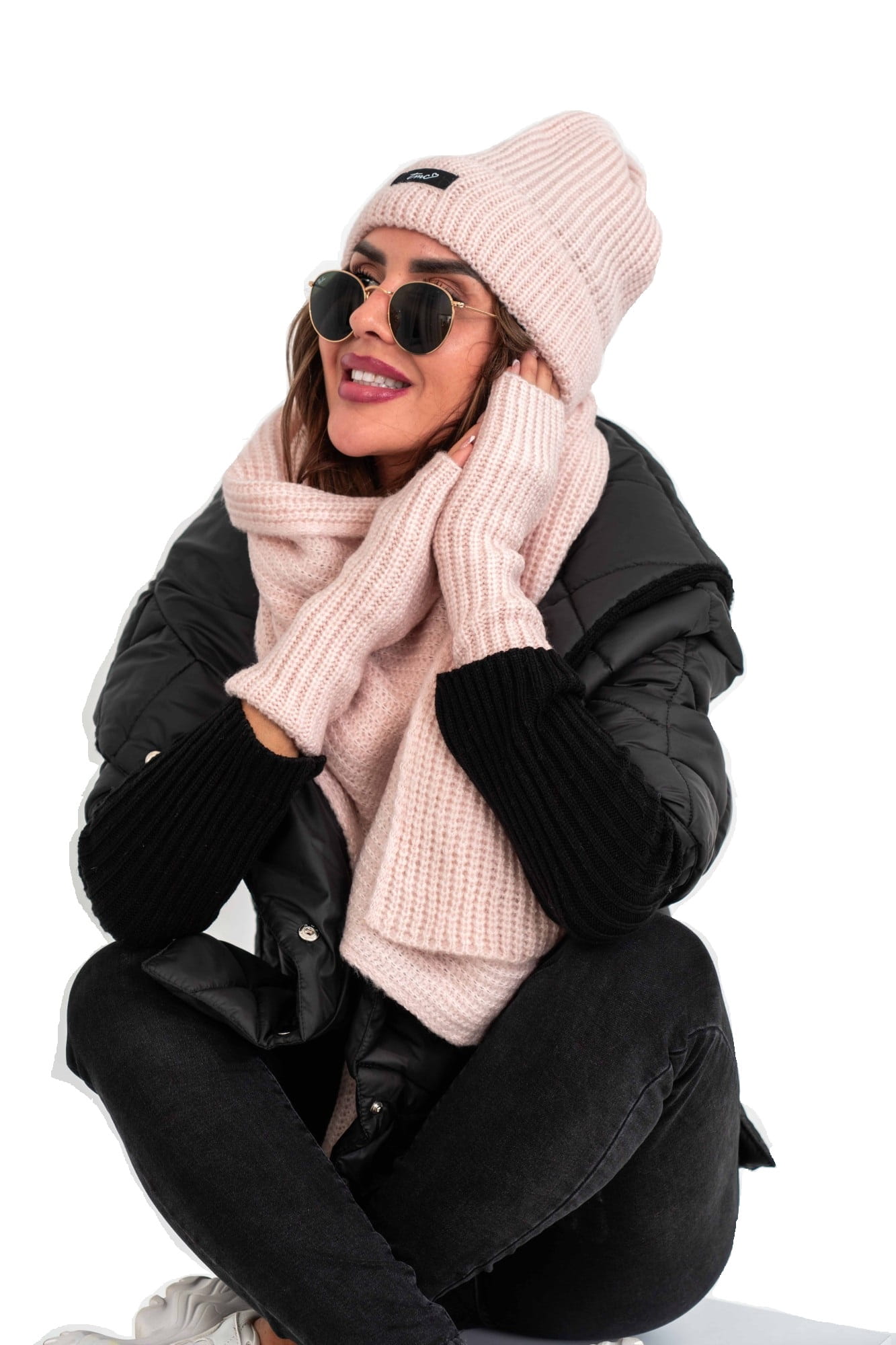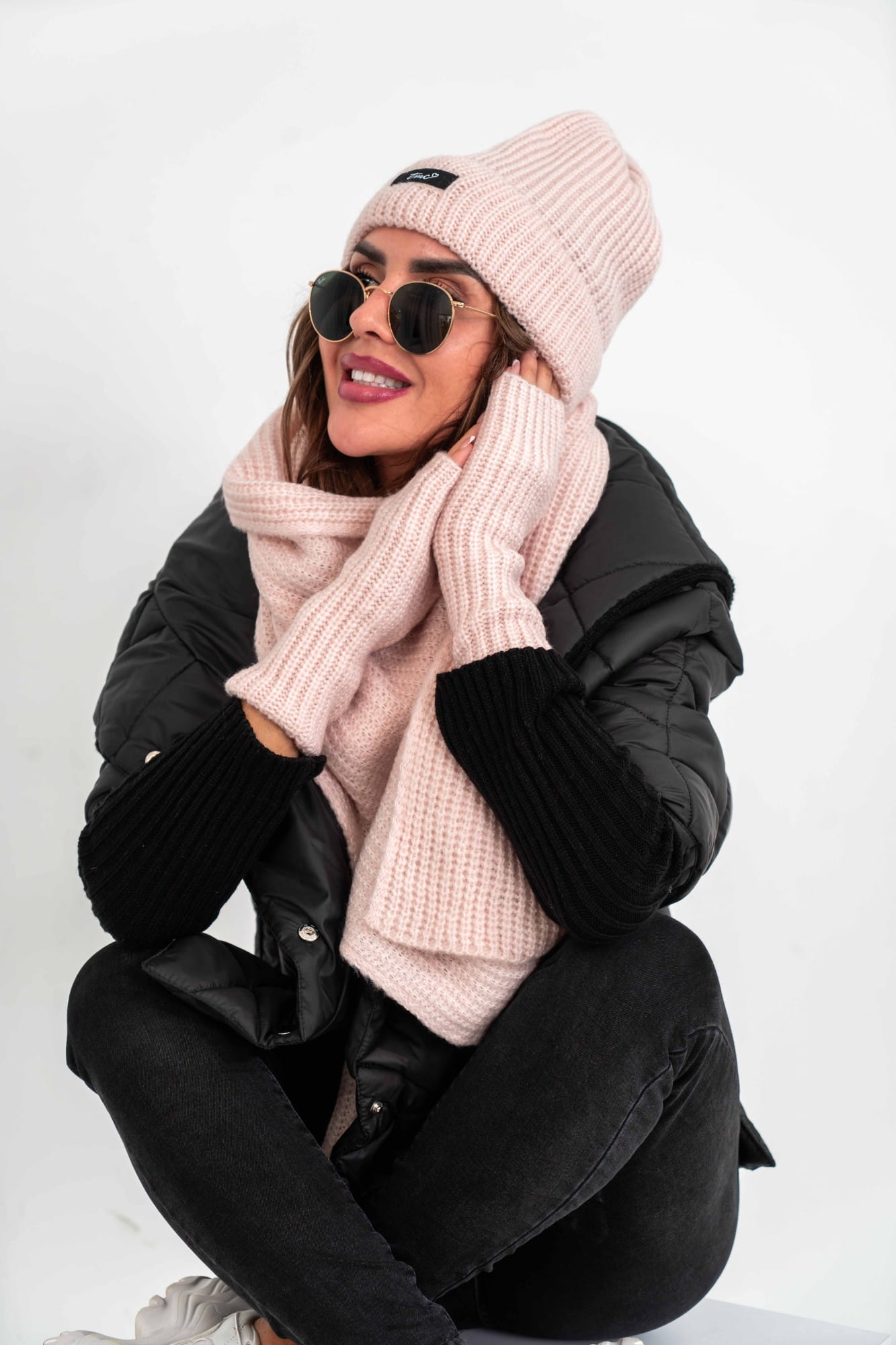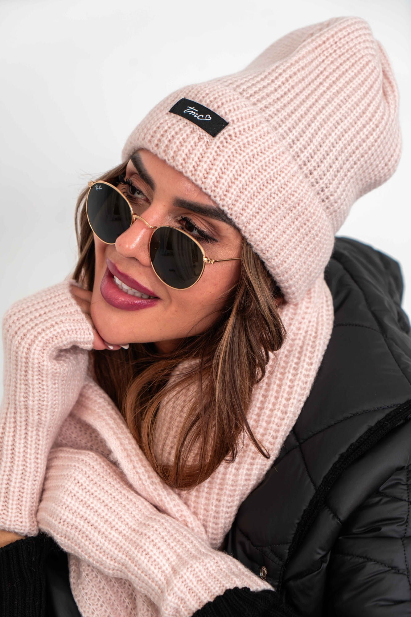 Czapka szalik rękawiczki komplet różowy Tmc Moda
