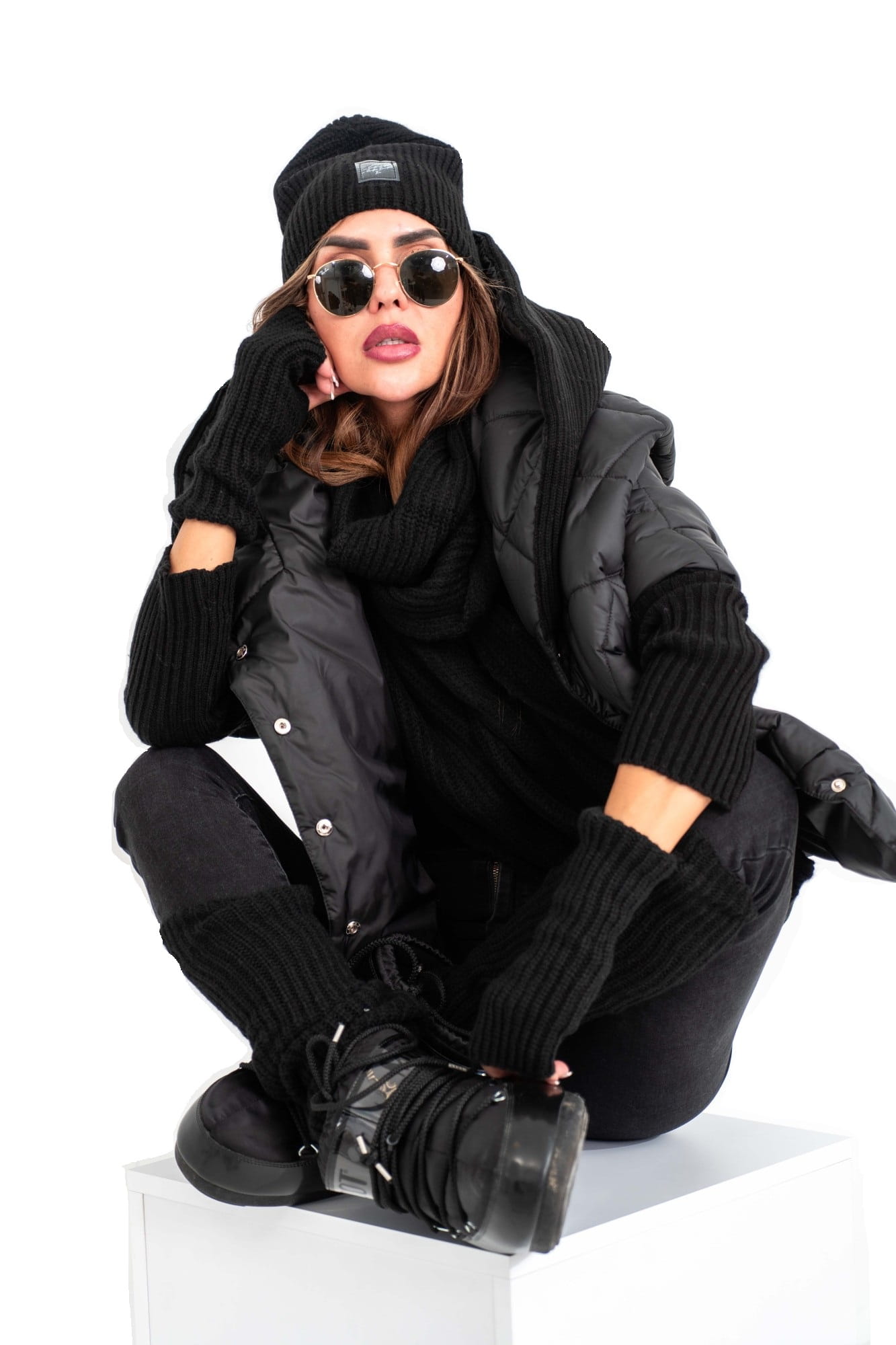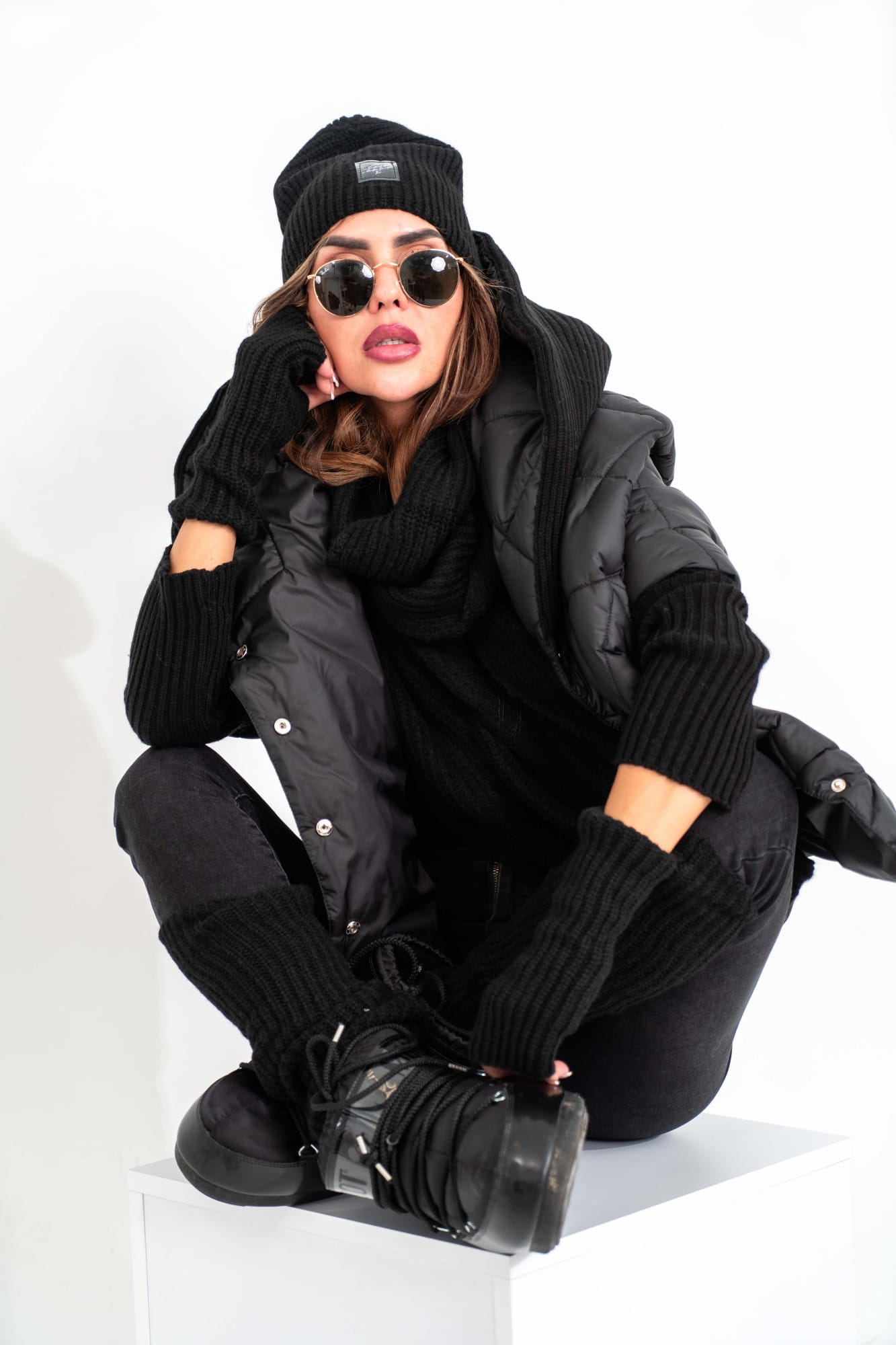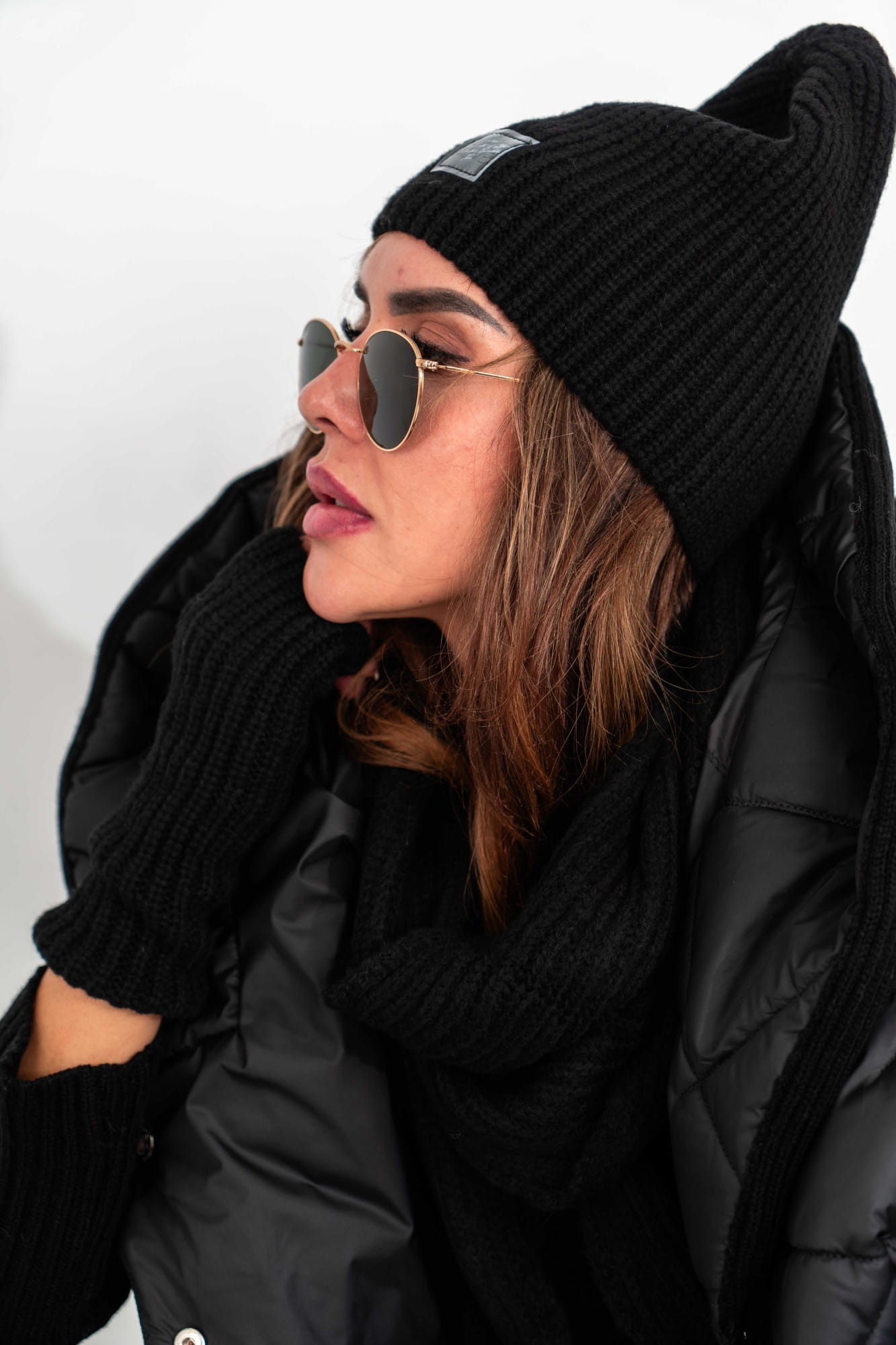 Czapka szalik rękawiczki ocieplacze komplet czarny Tmc Moda