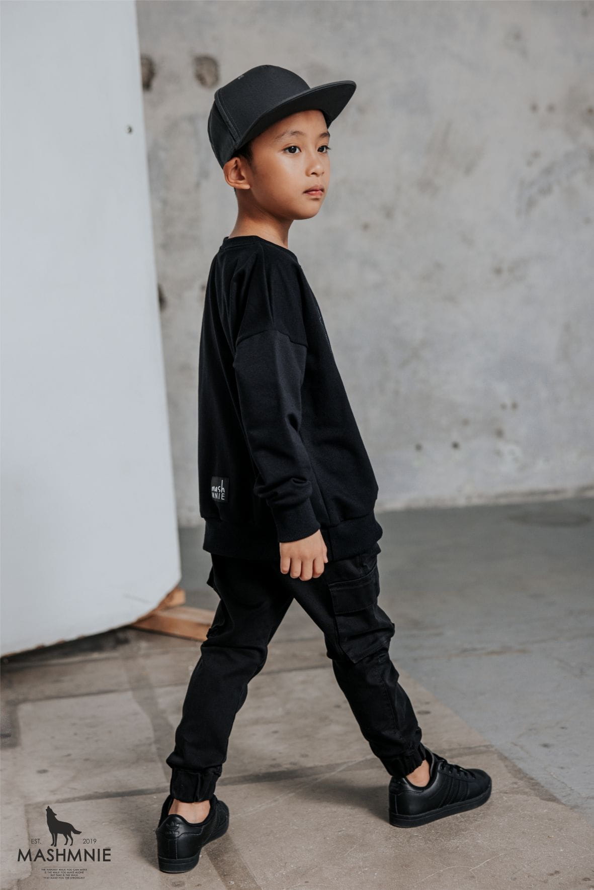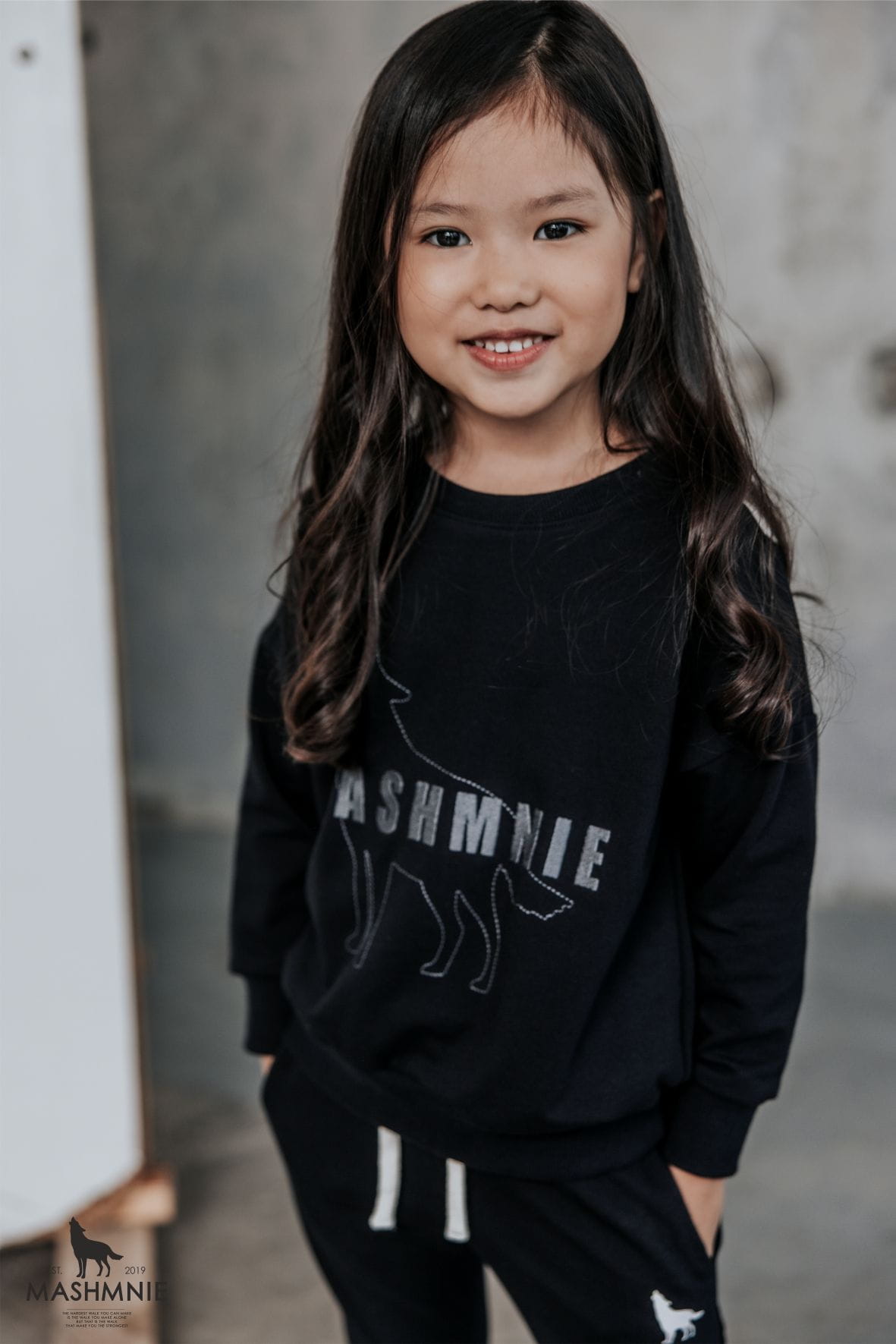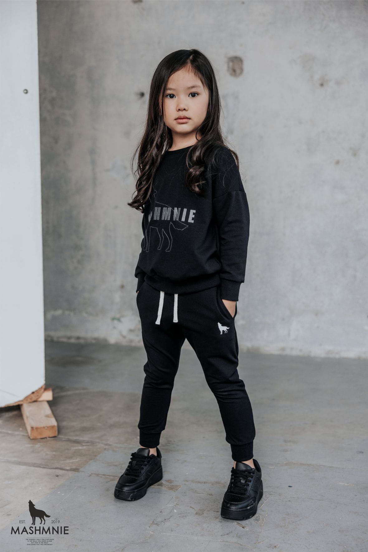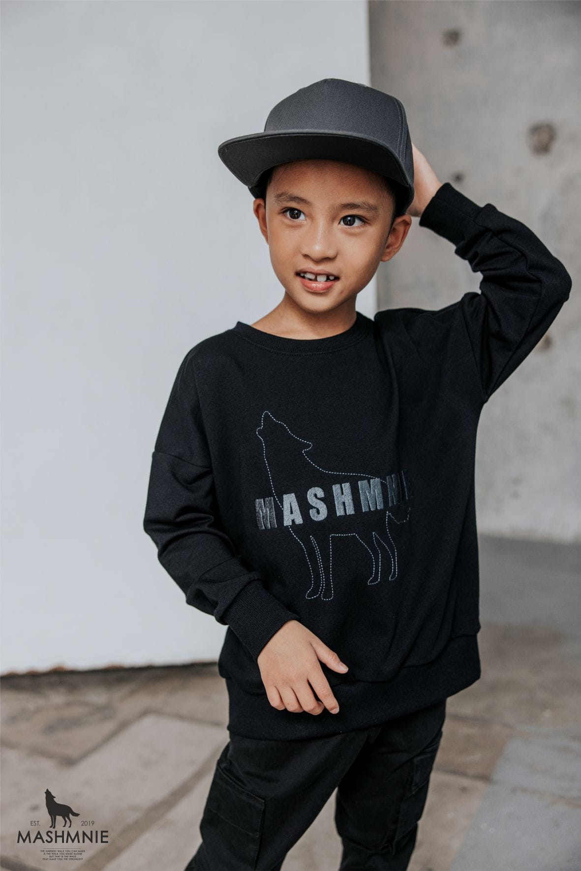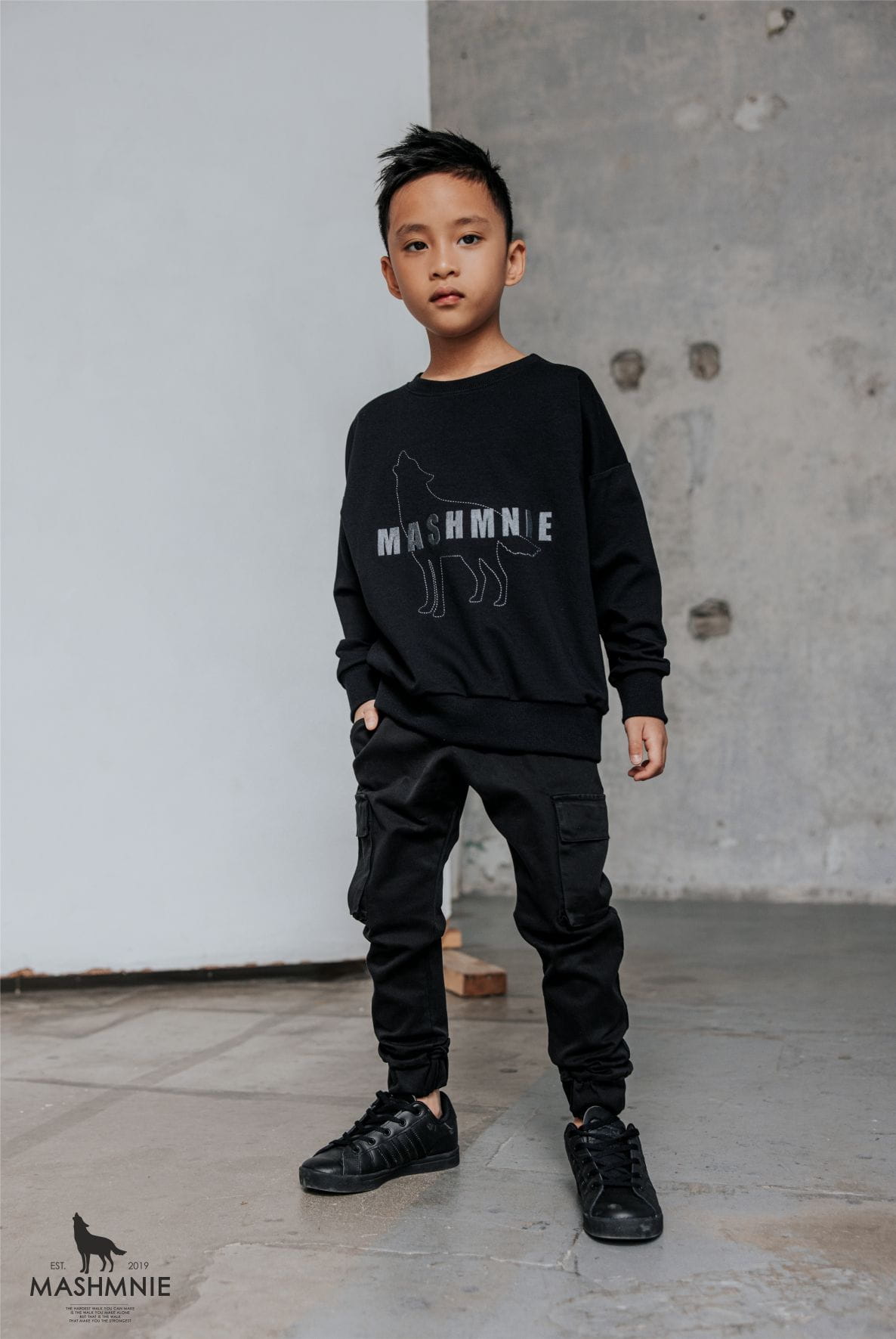 Czarna bluza z haftowanym wilkiem i napisem MASHMNIE to stylowy i modny dodatek do dziecięcej garderoby od polskiej marki Masz MNIE z kolekcji WOLF NATURE.