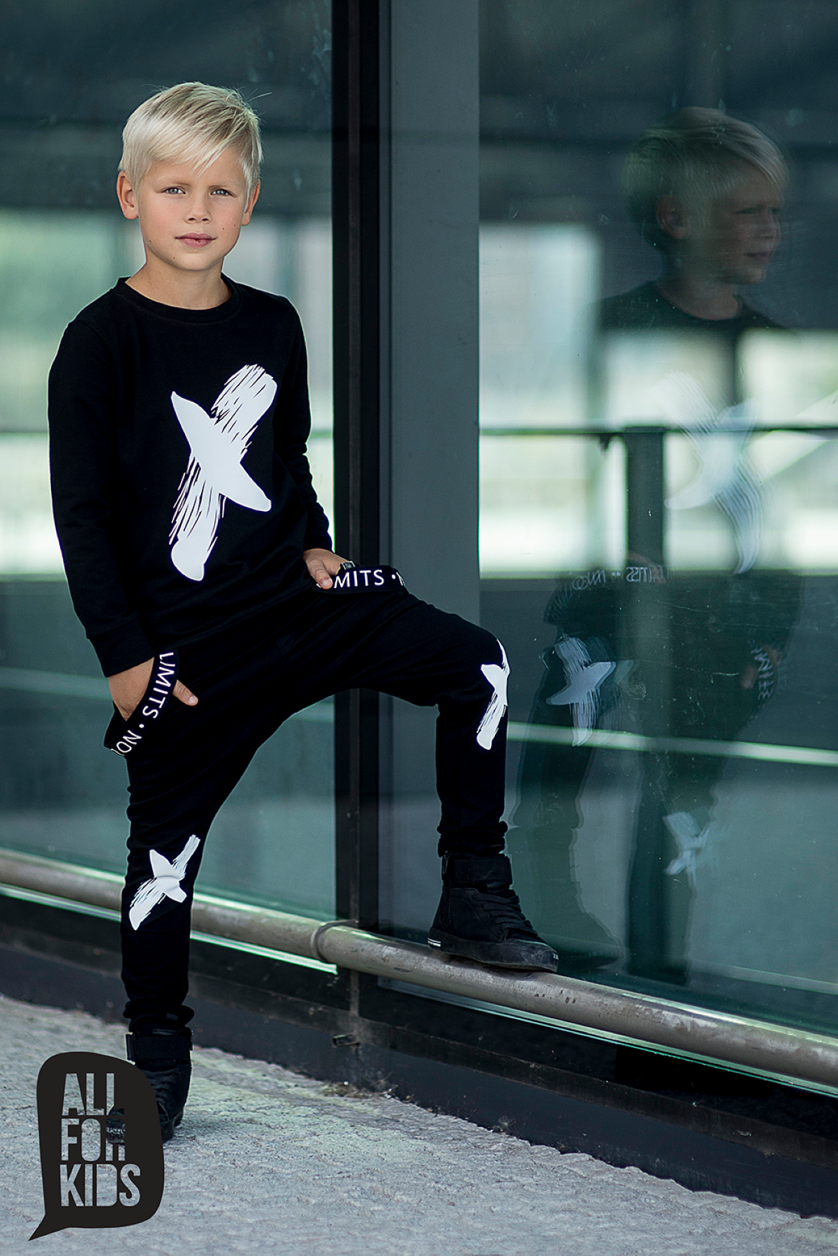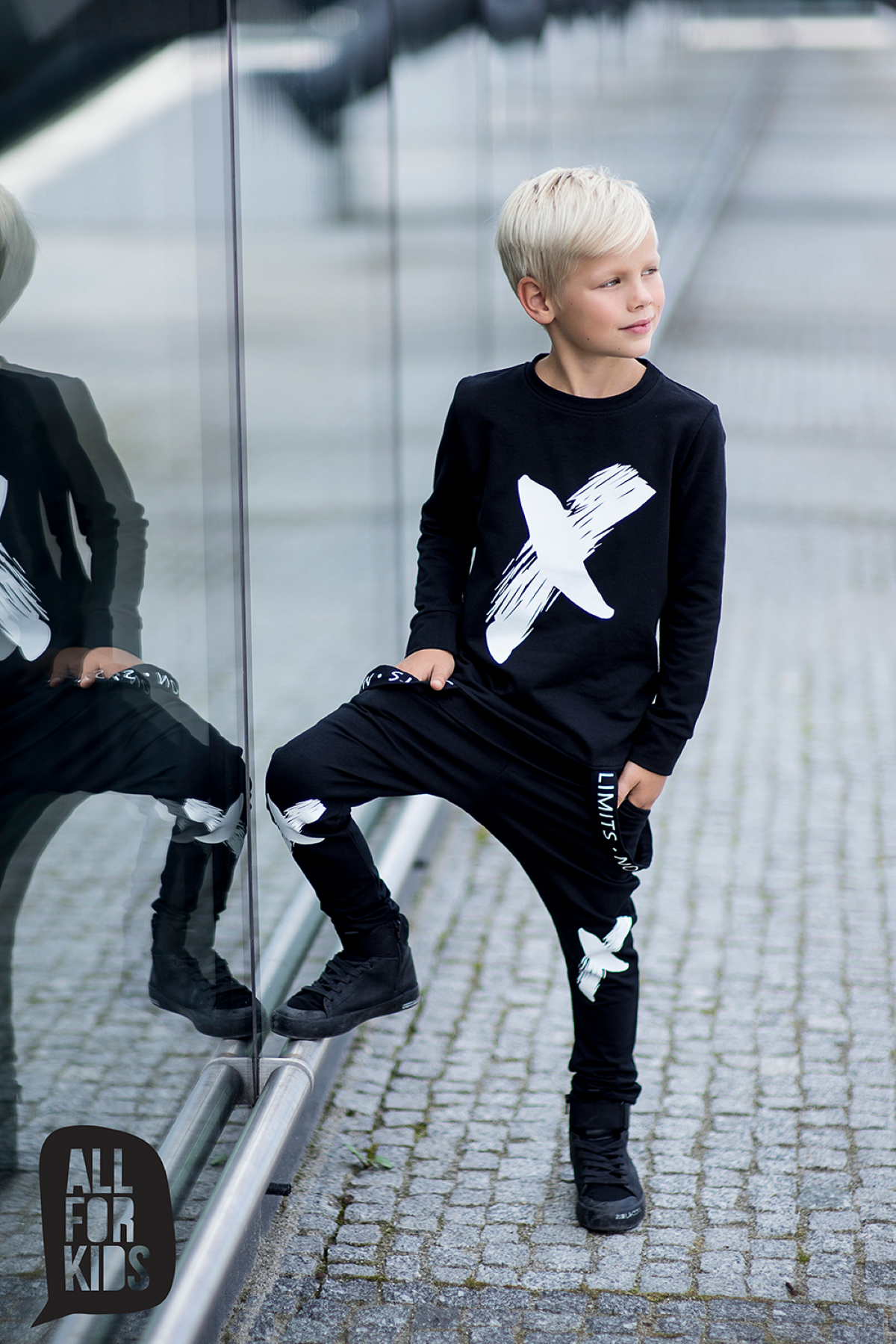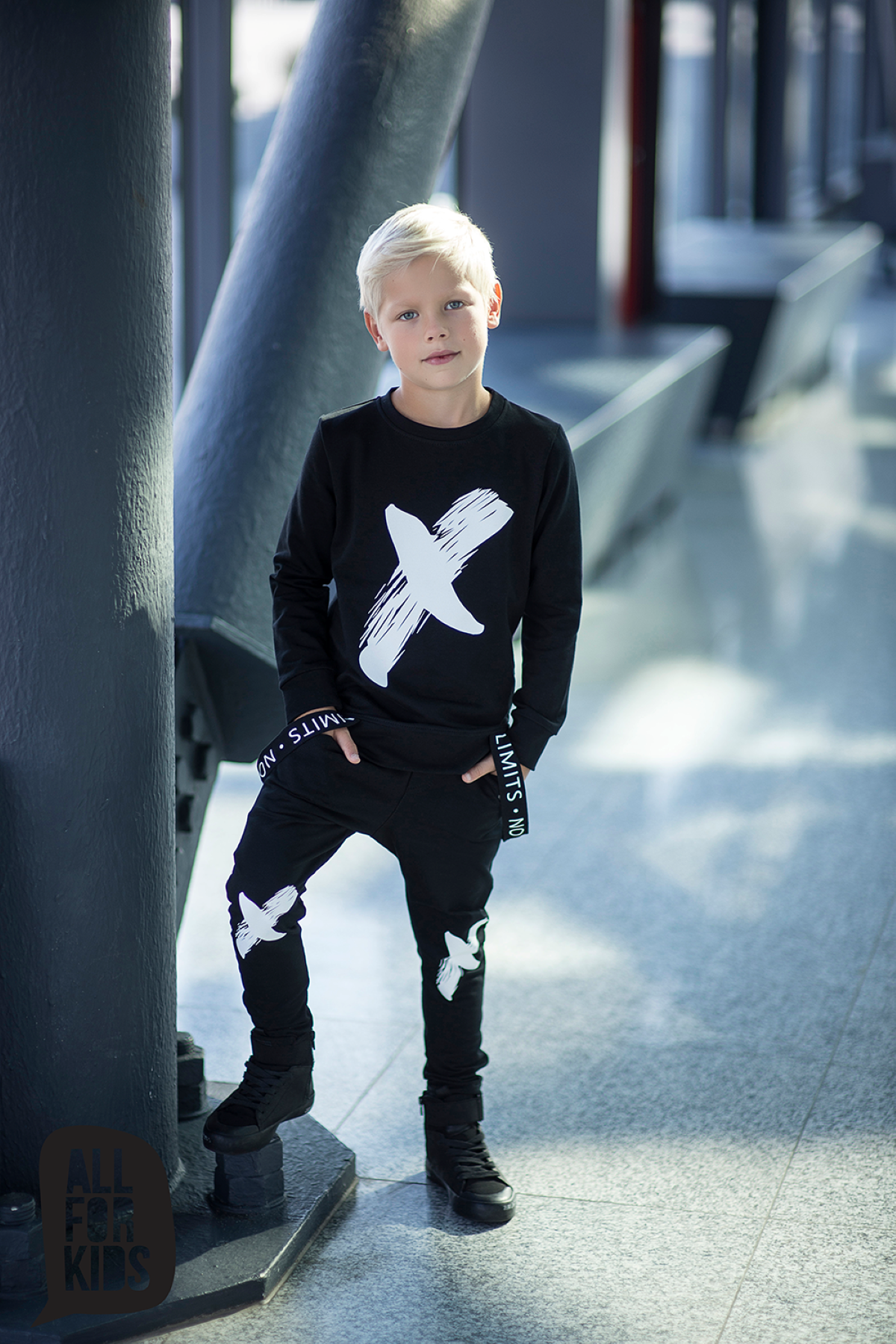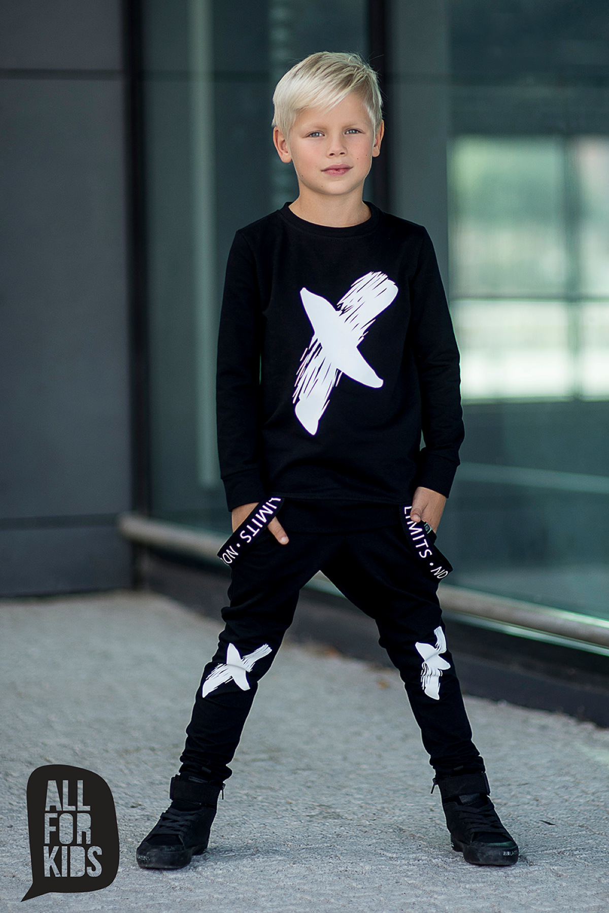 Zjawiskowa bluza z taśmami i nadrukiem od polskiego producenta All For Kids. Czarna bluza dziecięca wykonana z wysokiej jakości, komfortowej w noszeniu dzianinyy dresowej.
