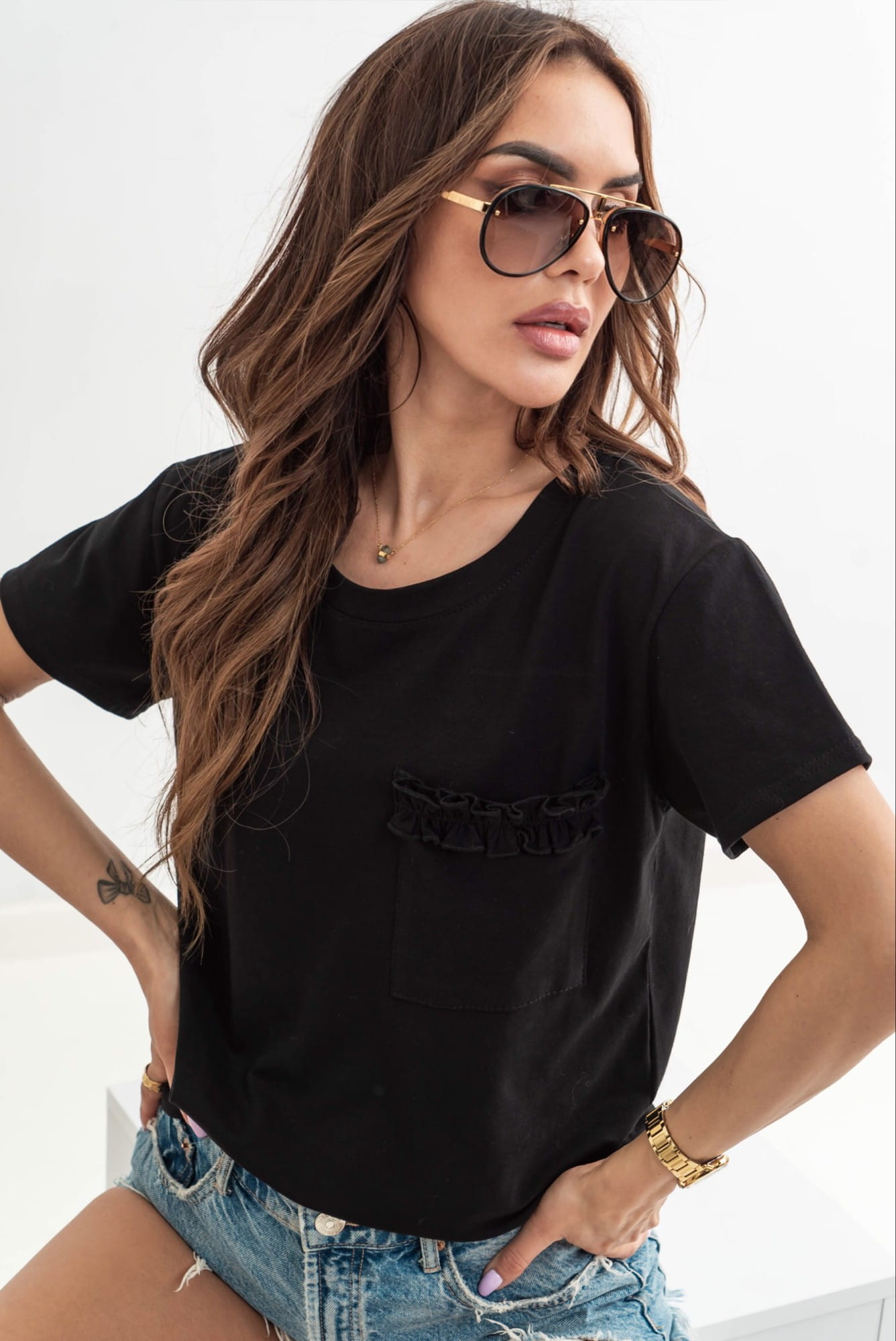 Czarna bluzka t-shirt z kieszonką TMC Moda