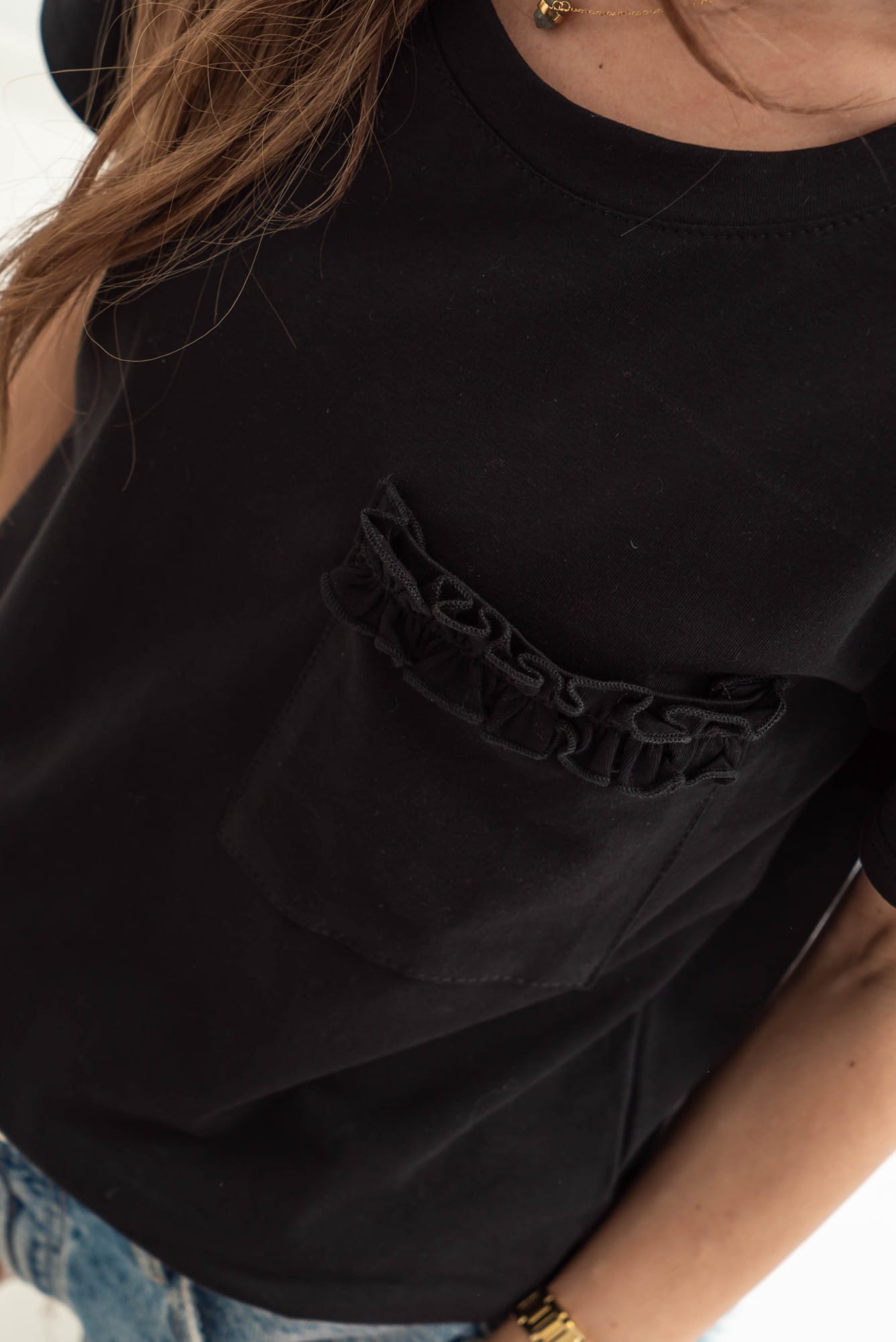 Czarny t-shirt z kieszonką nada charakteru każdej stylizacji...