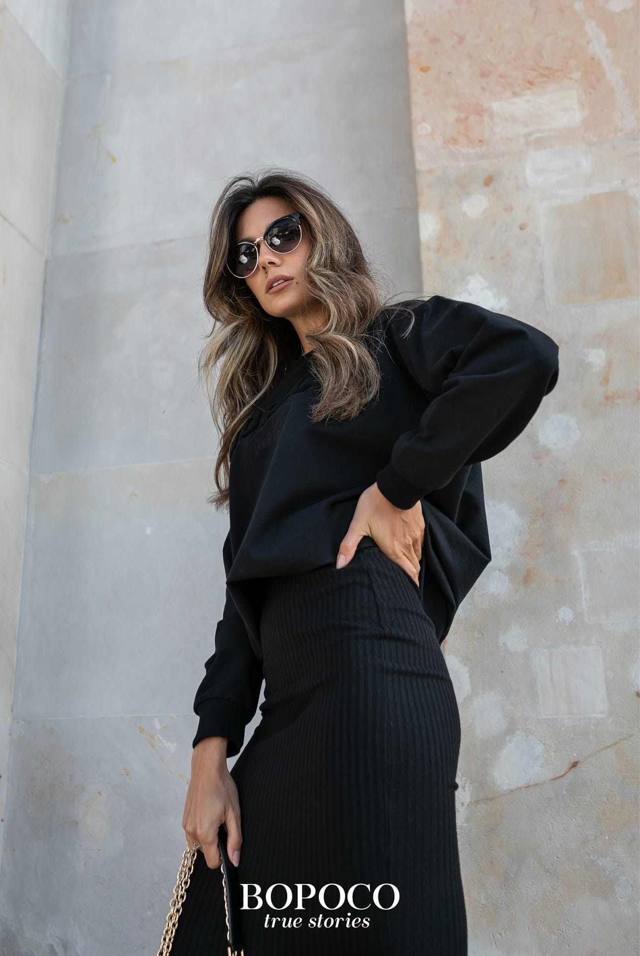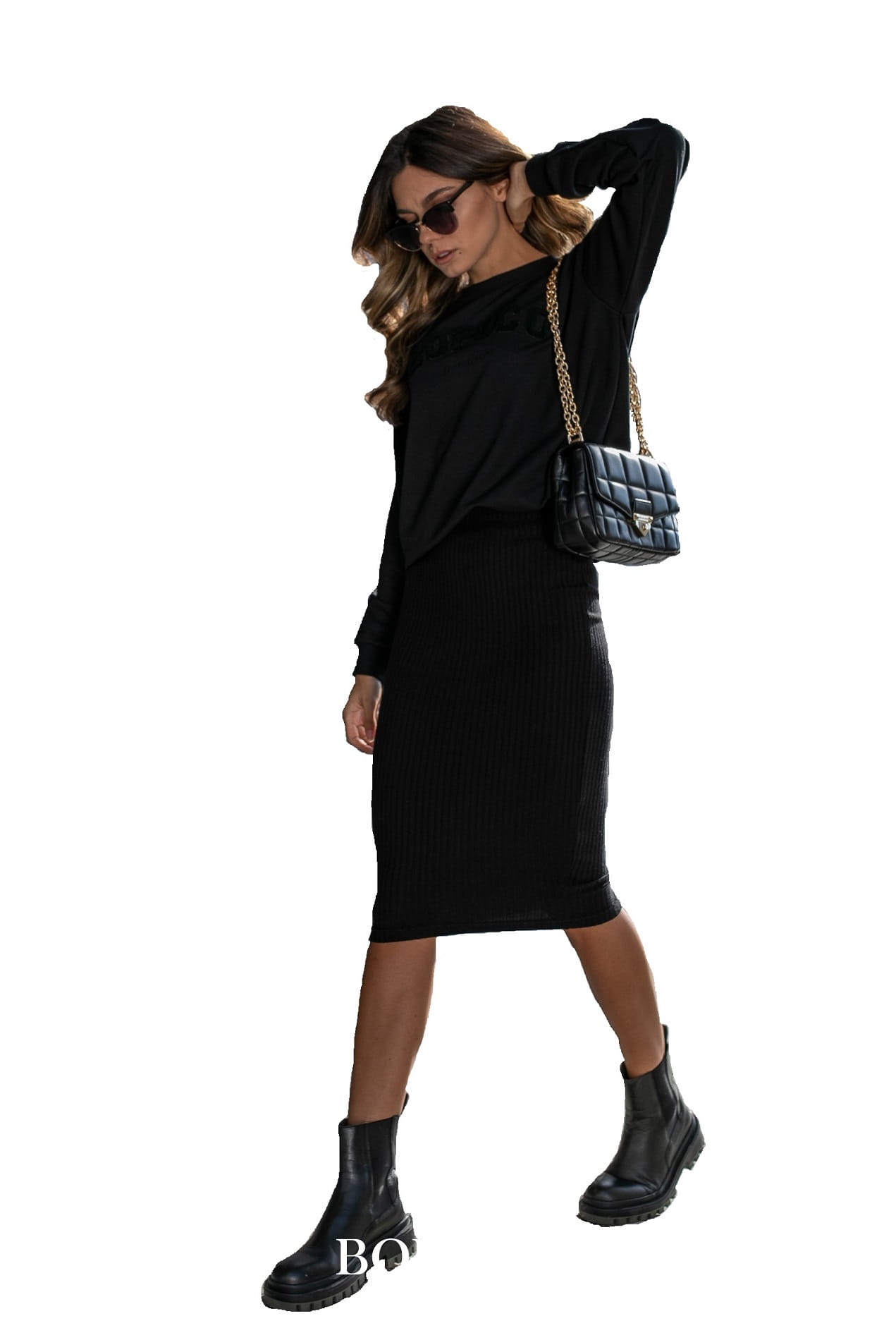 Czarna spódnica ołówkowa wykonana w Polsce przez markę Bopoco true stories. Modna spódnica damska wykonana z dzianiny prążkowanej, dzięki której z łatwością dopasuje się do figury.