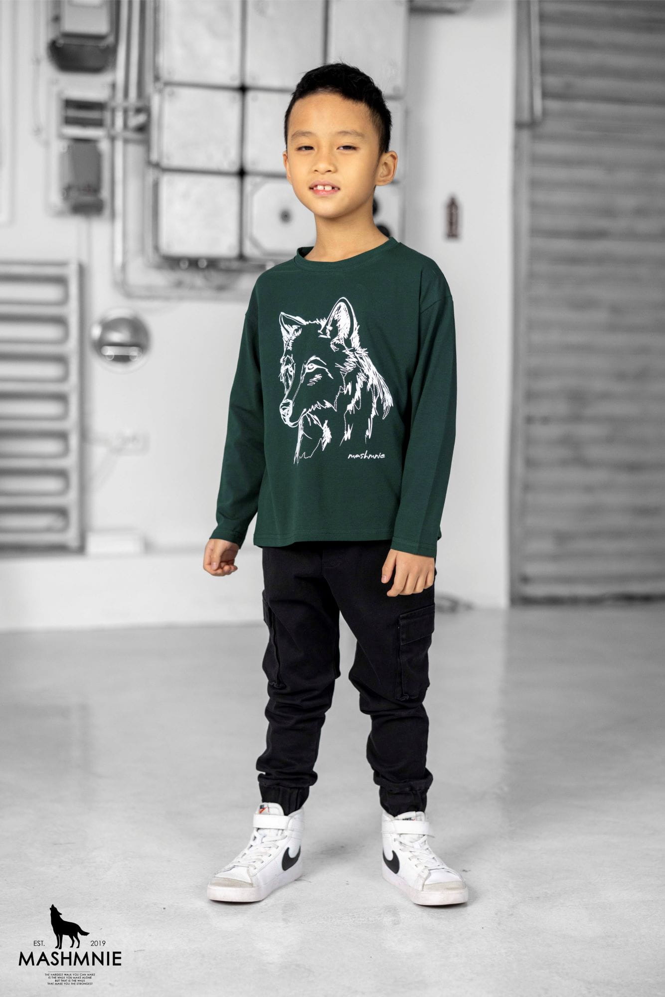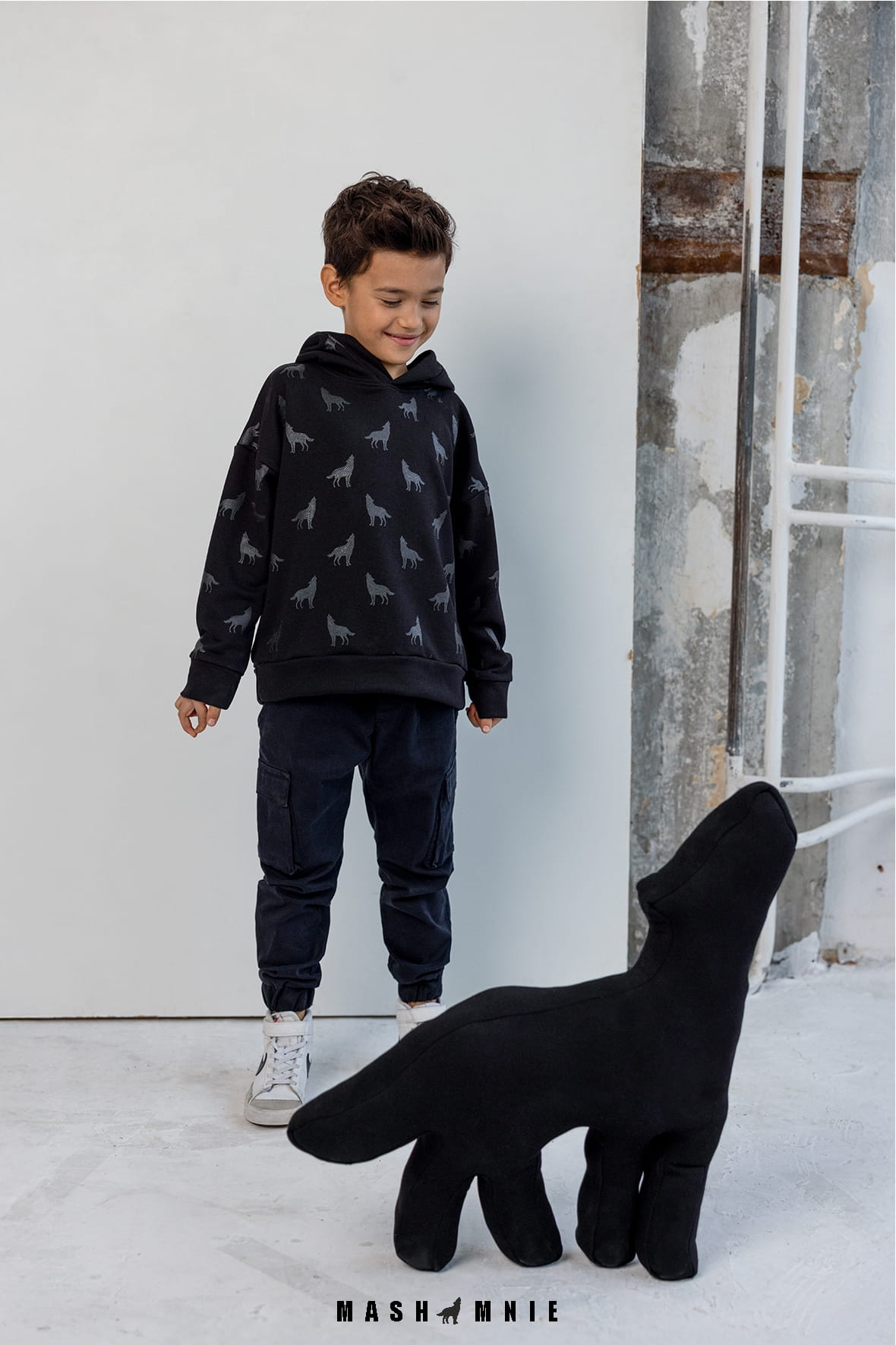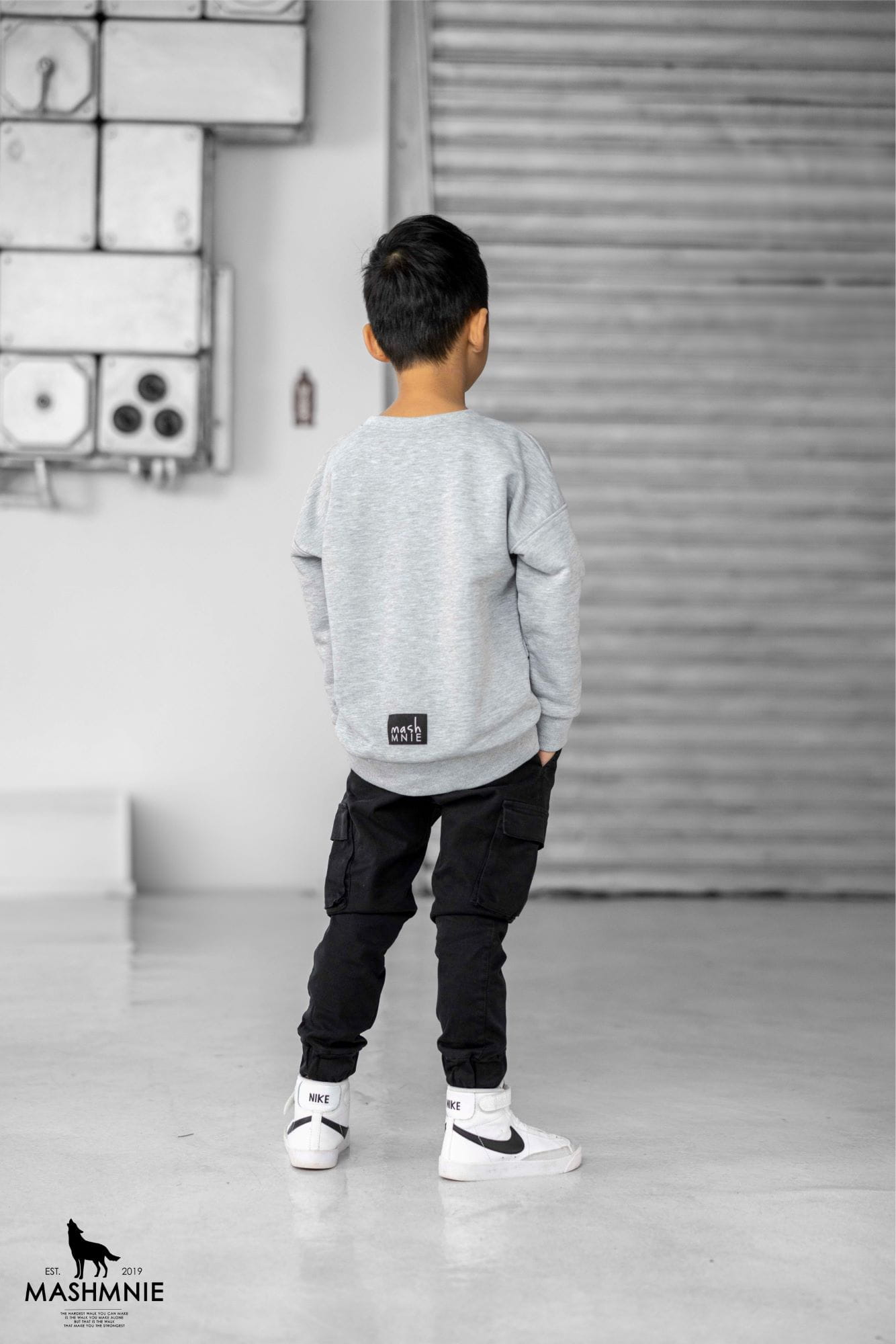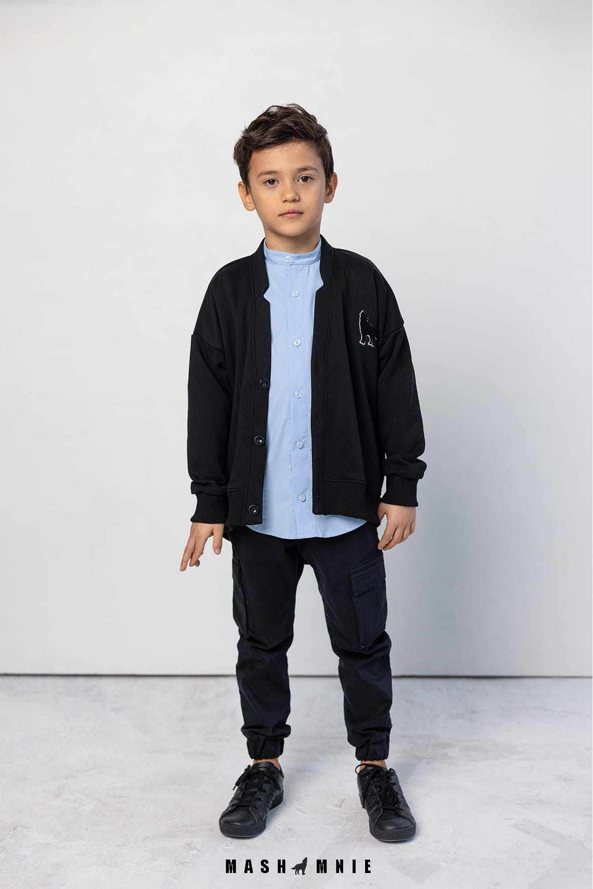 Czarne spodnie bojówki to modny i stylowy element dziecięcej garderoby. Powstały przez polską markę Mash MNIE z komfortowej w noszeniu tkaniny.