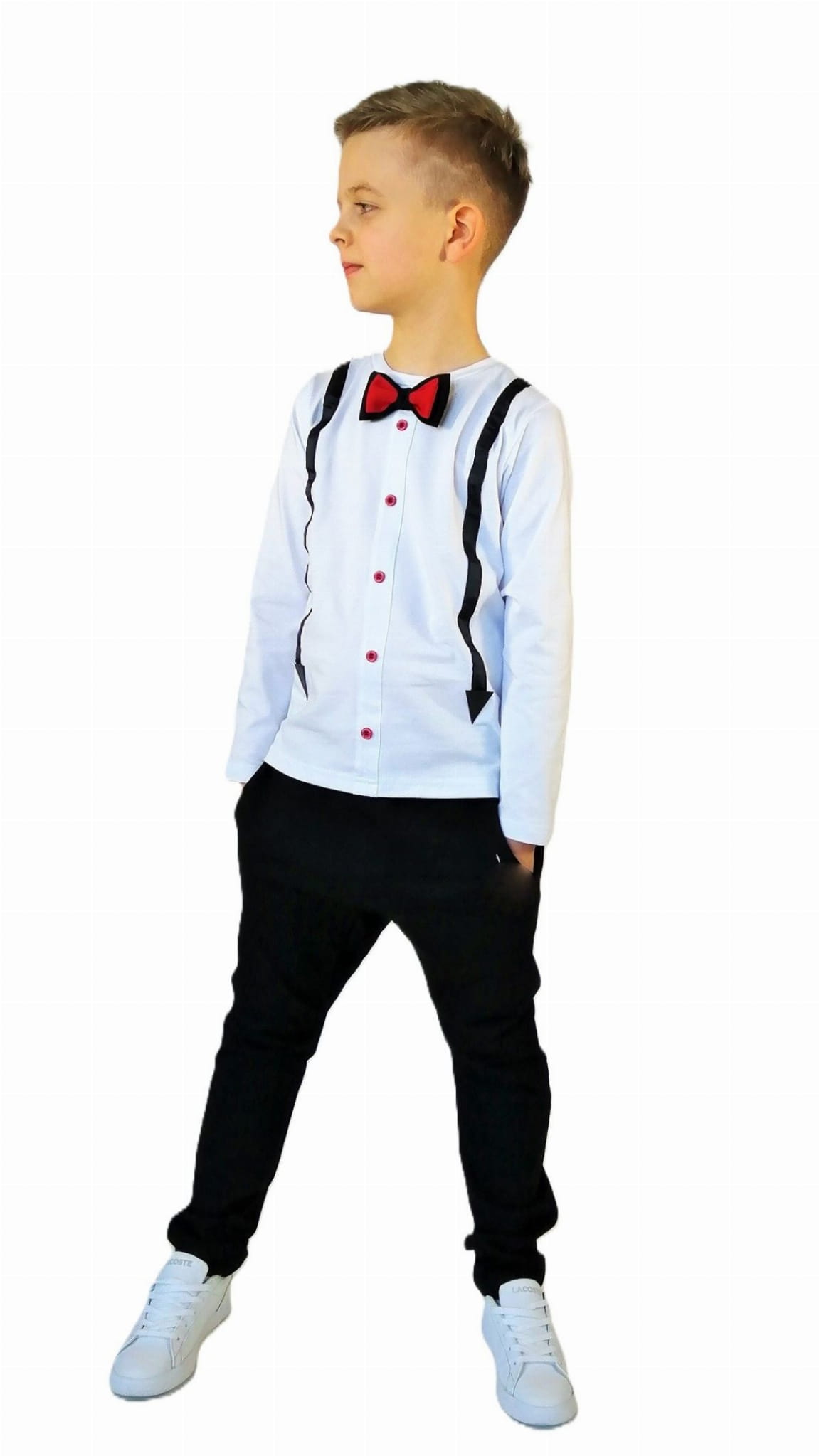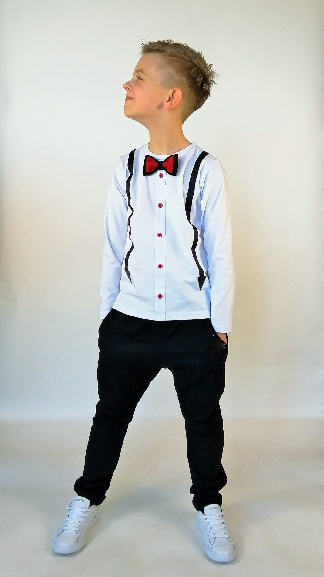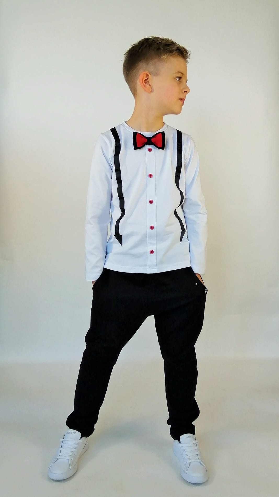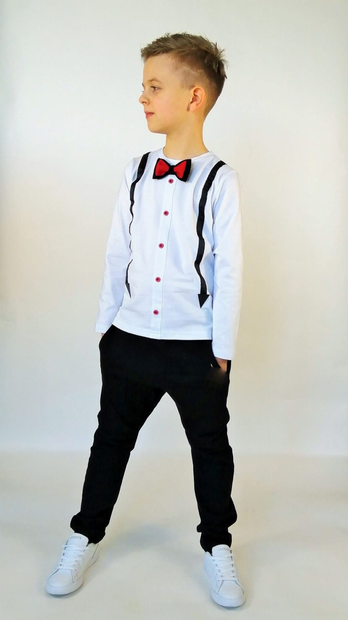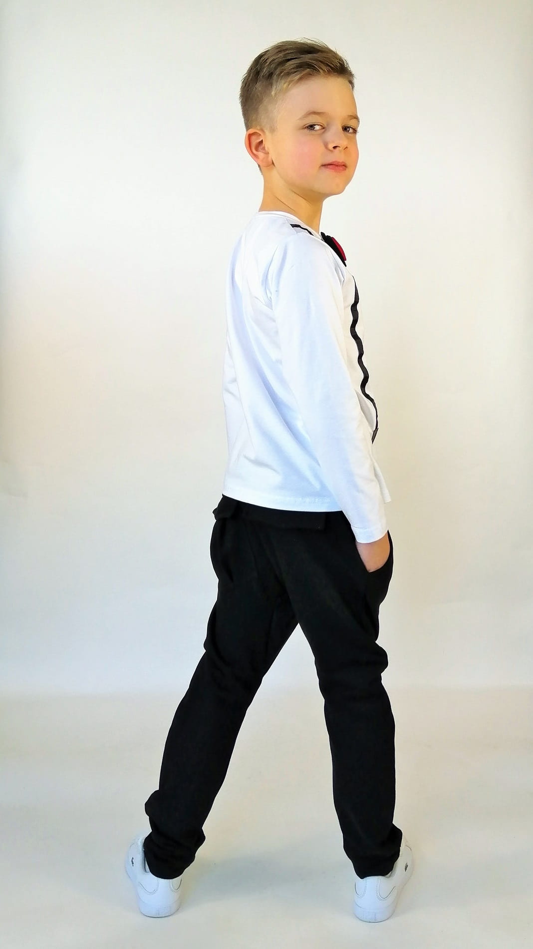 Klasyczne spodnie z kieszeniami zaprojektowane zostały zarówno dla dziewczynki jak i chłopca.