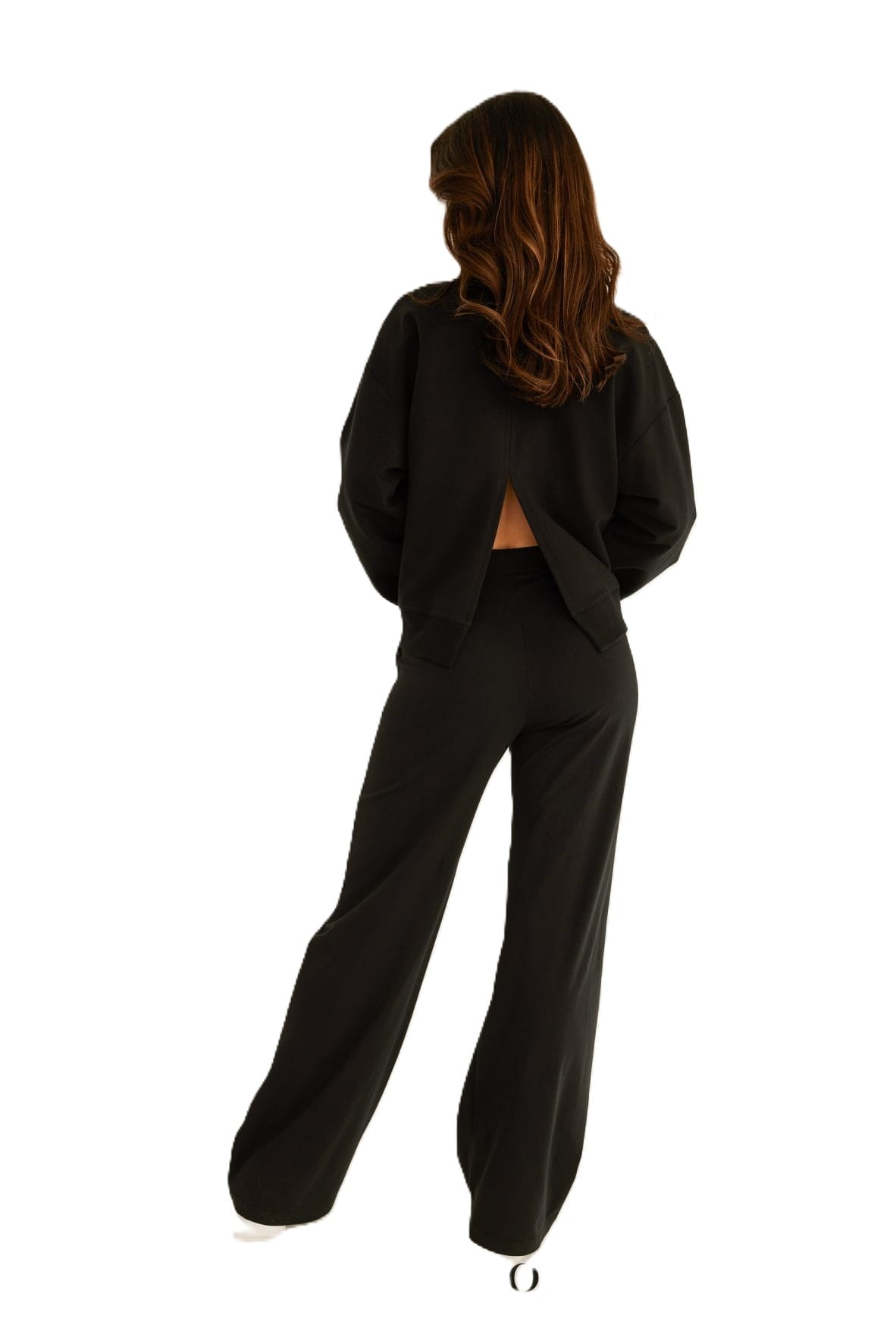 Czarne spodnie dresowe z szeroką nogawką powstały w Polsce przez markę BOPOCO true stories z komfortowej w noszeniu dzianiny (delikatna pętelka od spodu).