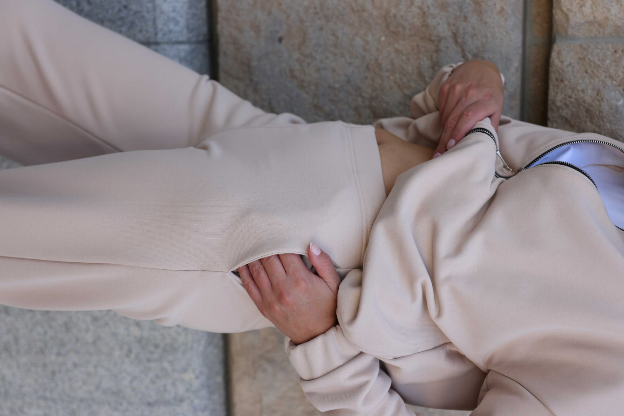 Beżowe spodnie z zakładkami dla fanek sportowej elegancji od polskiej marki BOPOCO true stories. Modne spodnie damskie wykonane z wysokiej jakości, komfortowej w noszeniu dzianiny dresowej.