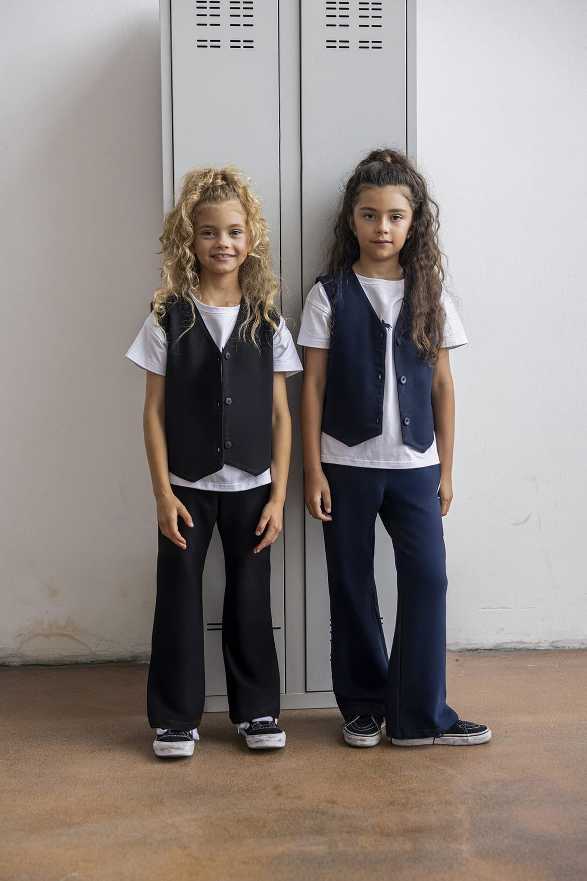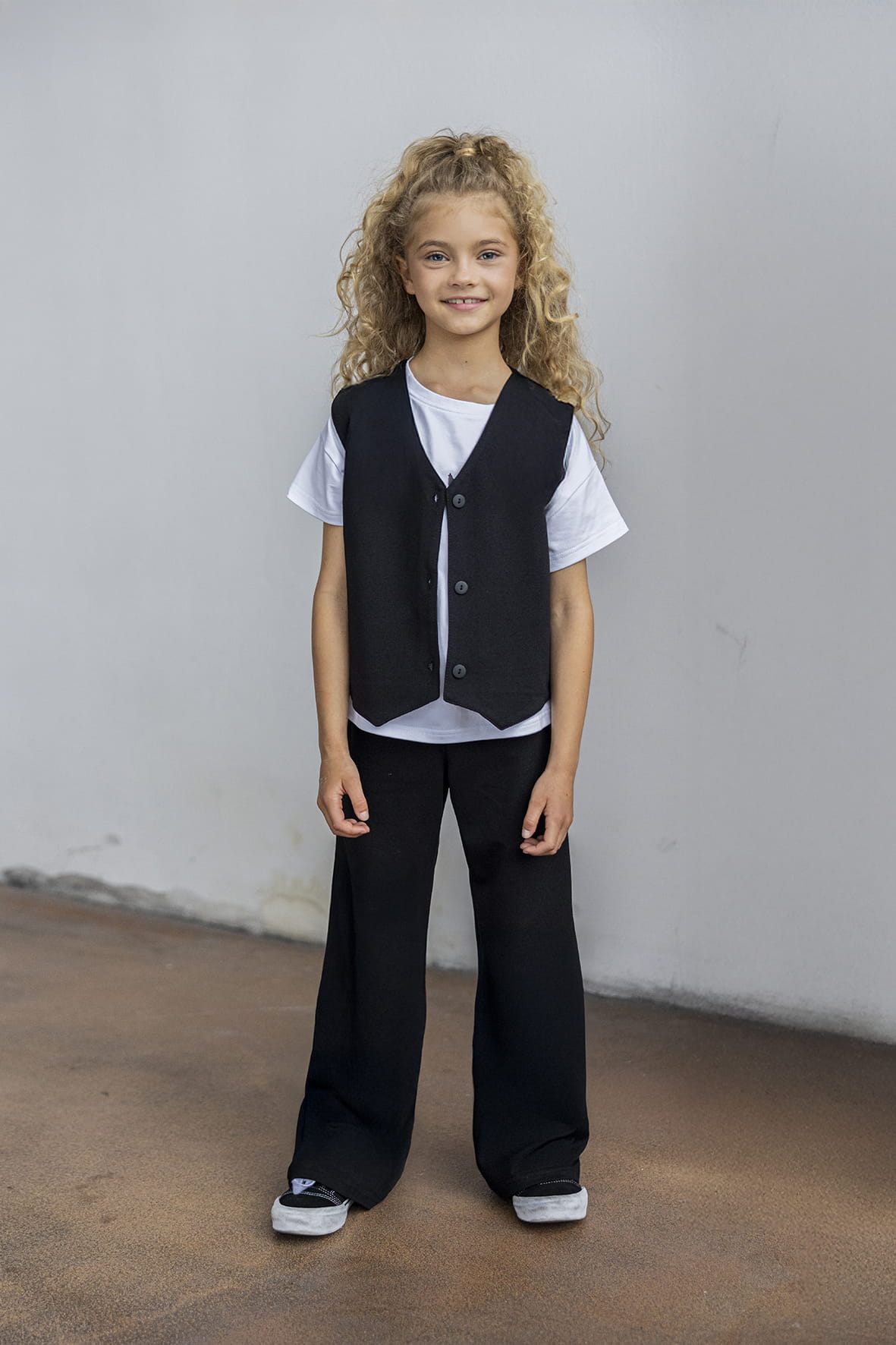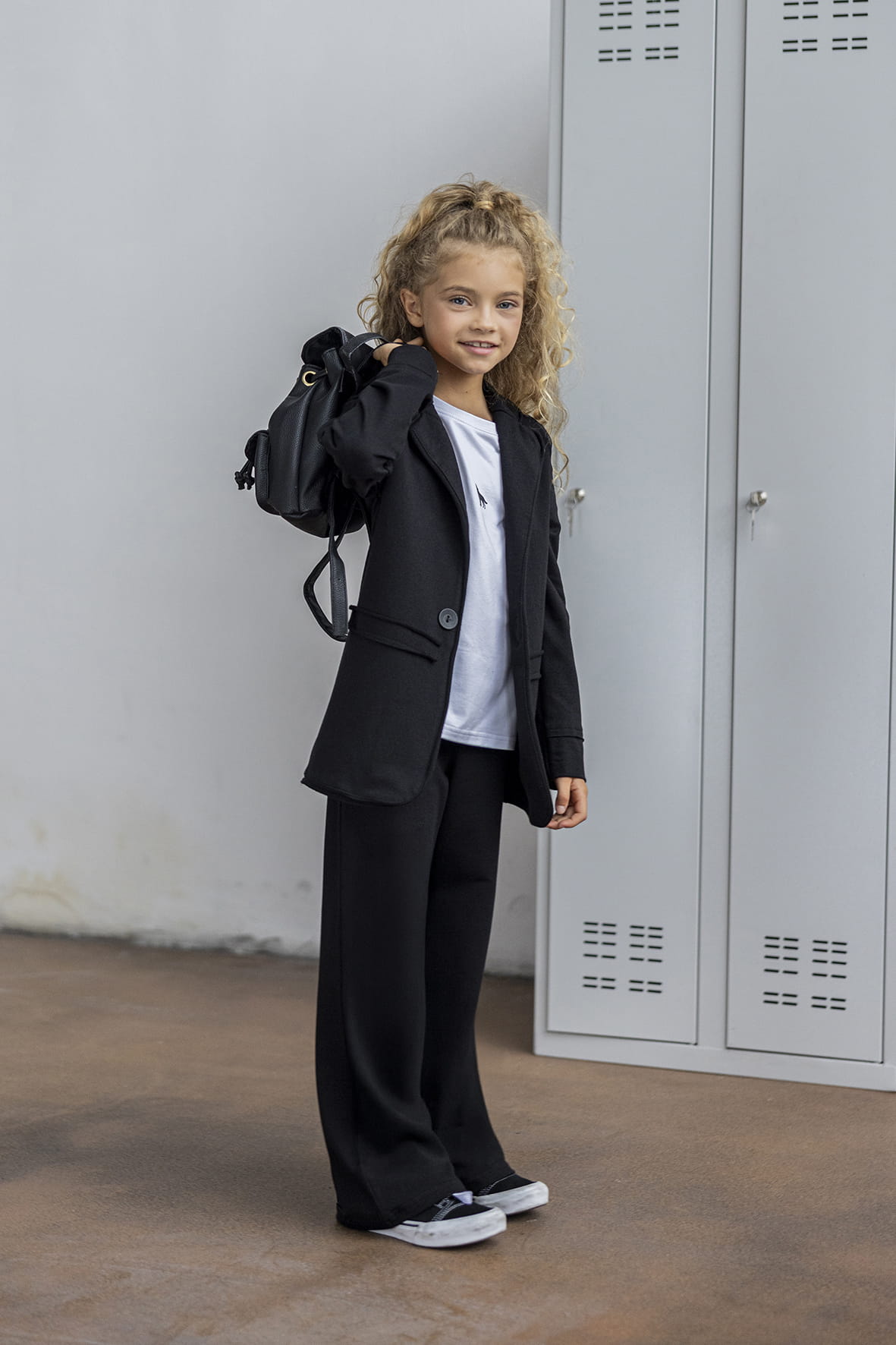 Te czarne spodnie z szerokimi nogawkami świetnie sprawdzą się do szkoły, na uroczystości rodzinne szkolne i niezastąpione na co dzień.