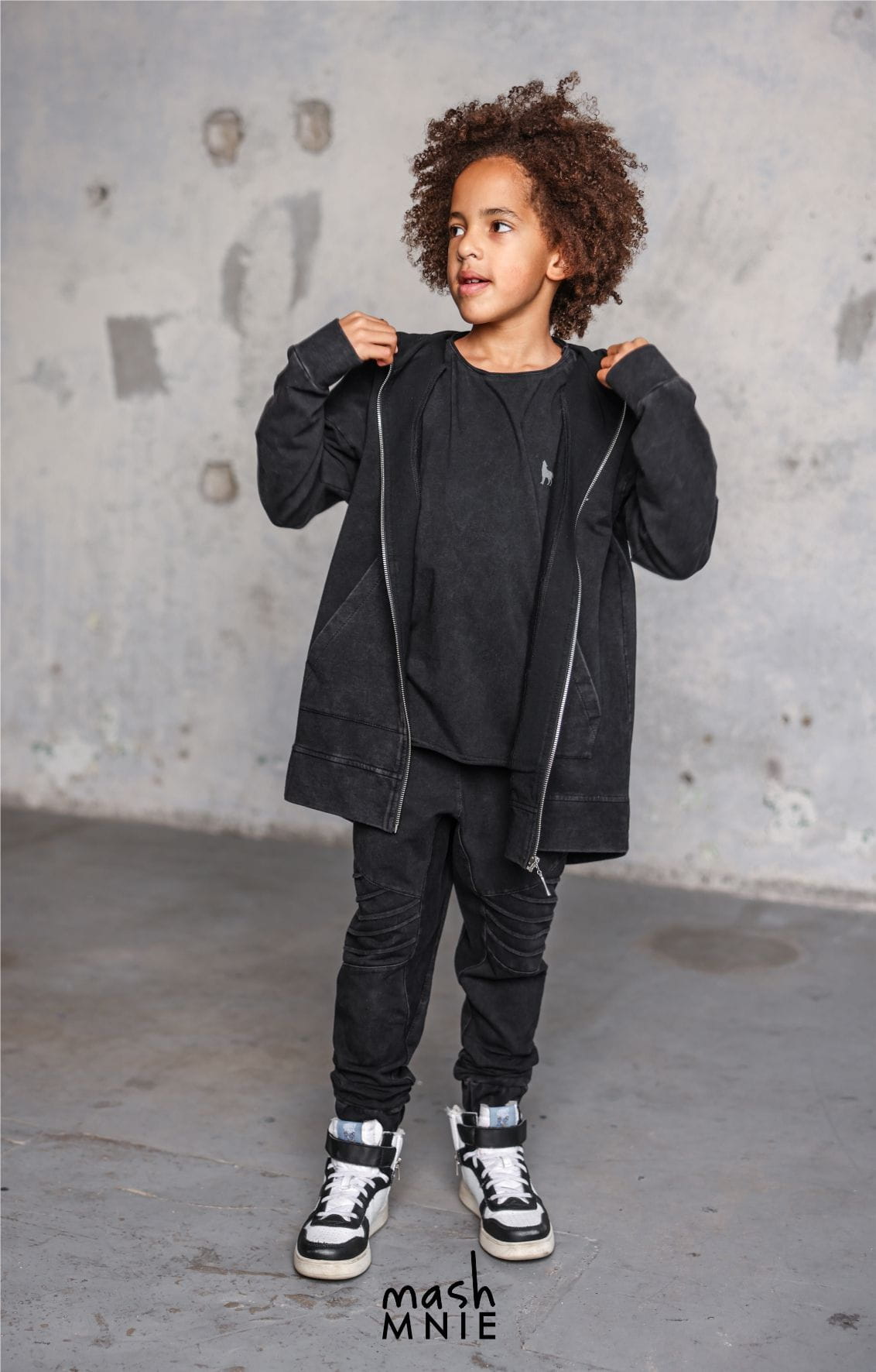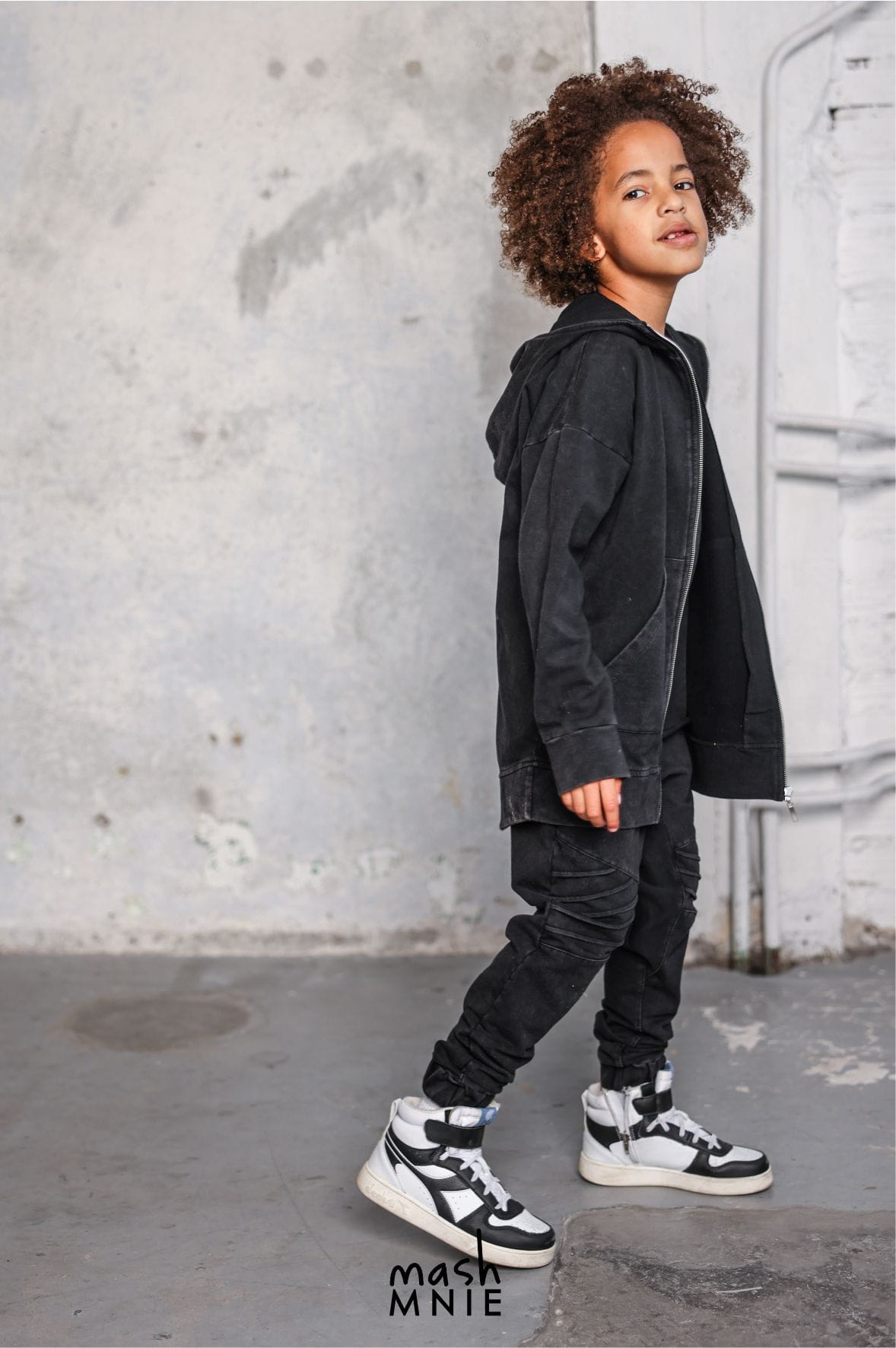 Czarne spodnie z zakładkami vintage powstały w Polsce przez markę Mash MNIE z dzianiny dresowej, dzięki czemu są miękkie i komfortowe w noszeniu.