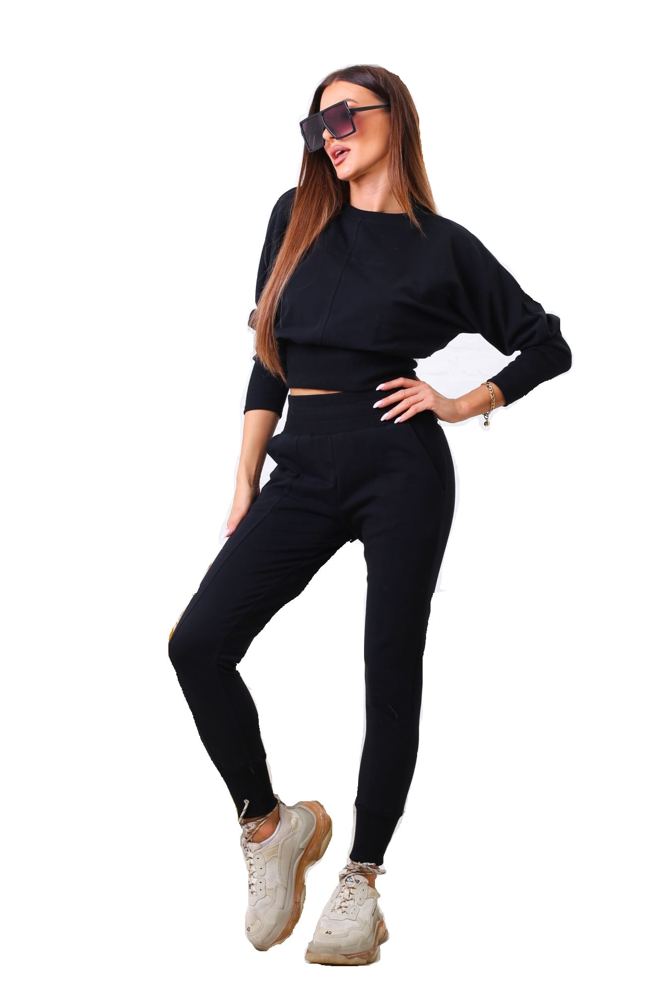 Czarny dres komplet spodnie bluza Tmc Moda