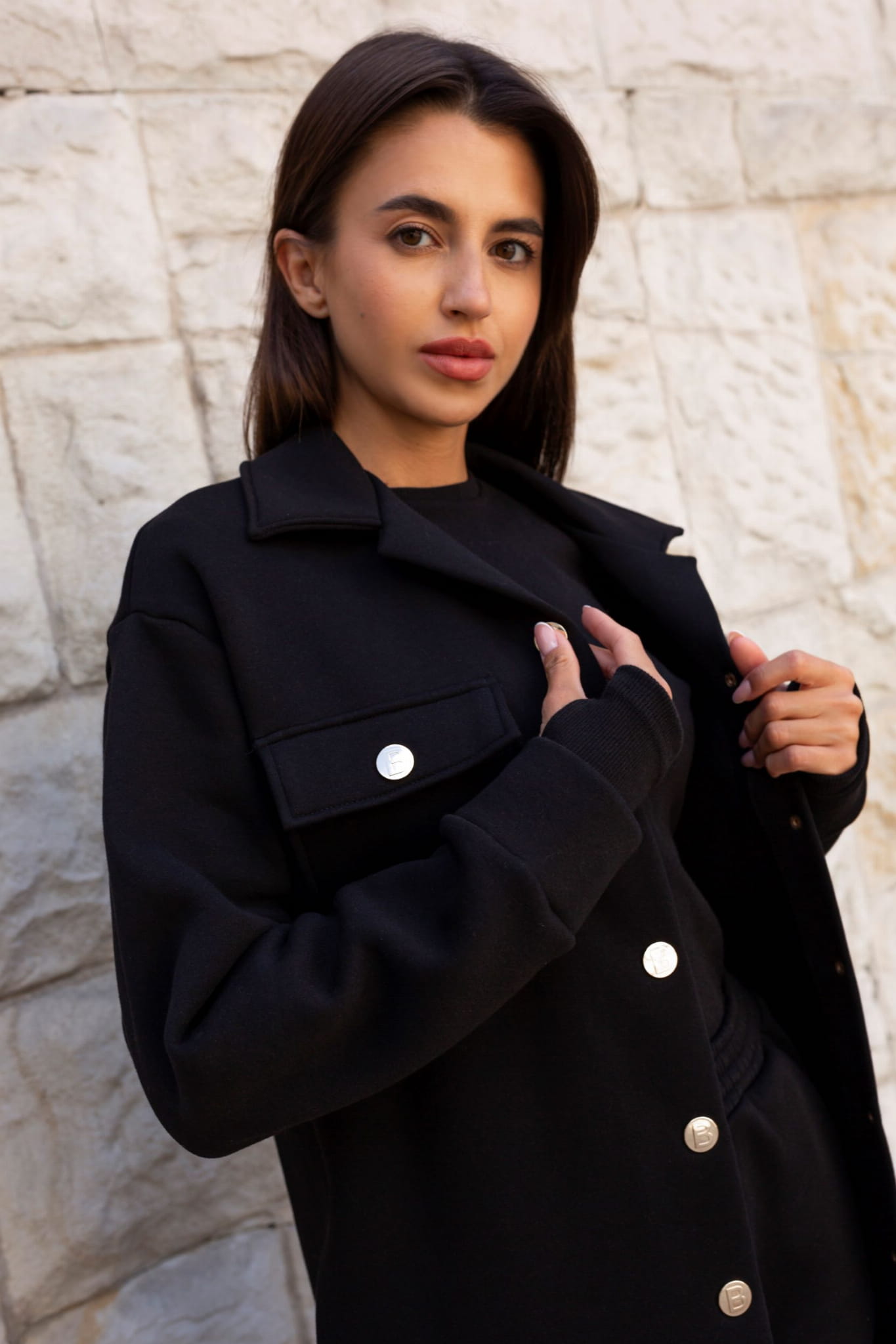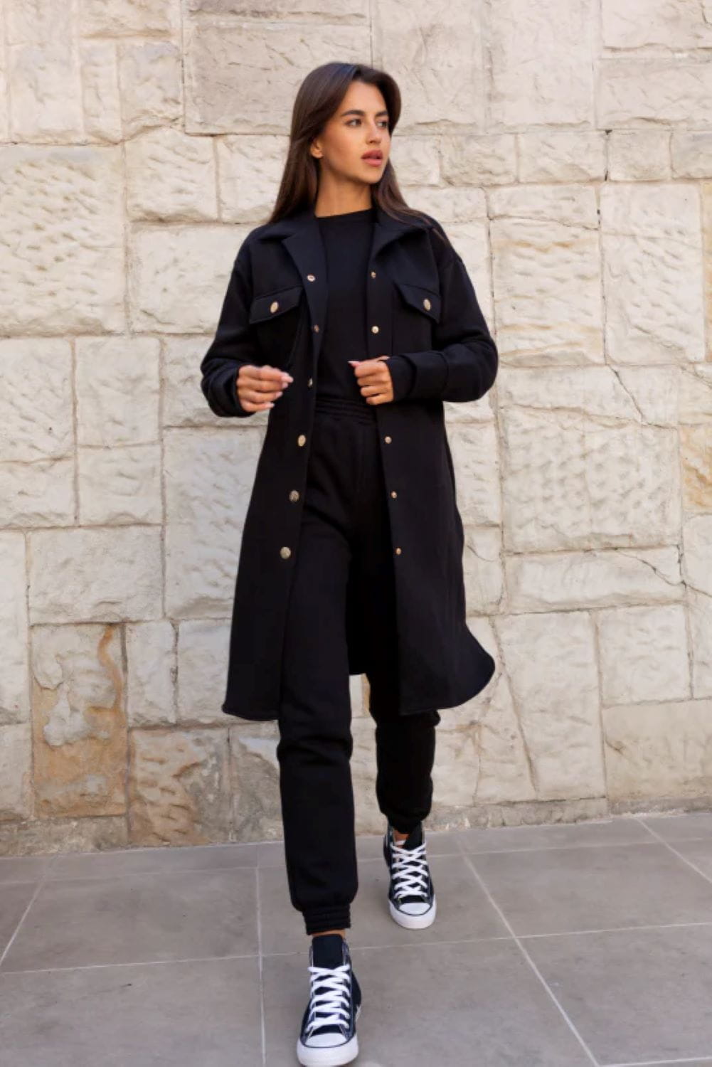 Długa bluza katana to prawdziwy hit – jej zapięcie na logowanej napy, elegancki kołnierz oraz liczne kieszenie, w tym boczne i z klapami, sprawiają, że jest nie tylko stylowa, ale i praktyczna.
