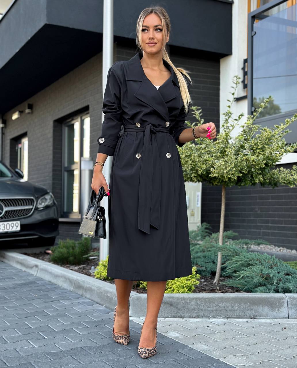 Czarny płaszcz trencz prochowiec Marina
