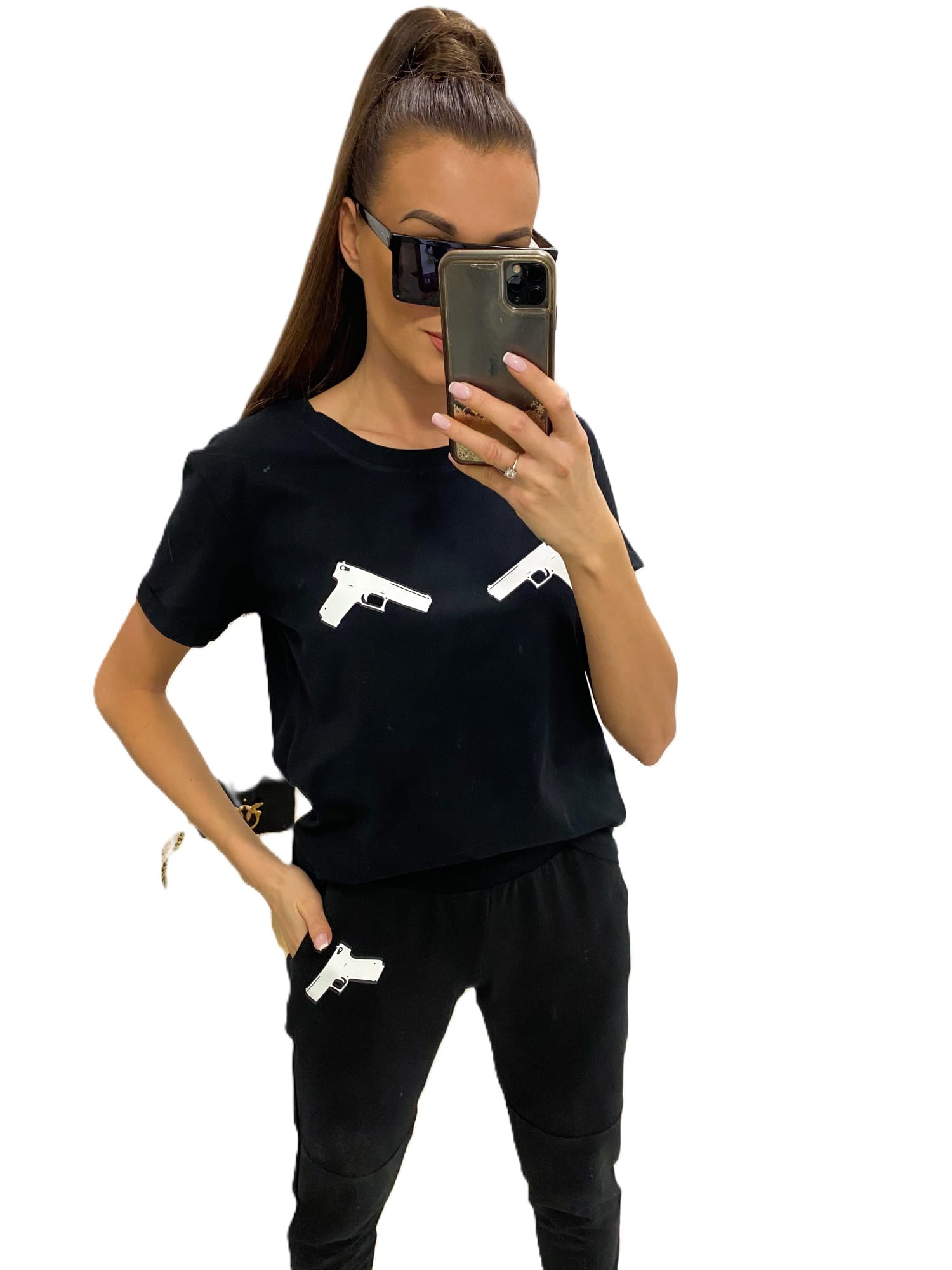 Czarny t-shirt Gun to doskonała propozycja dla odważnych kobiet, które lubią wyróżniać się z tłumu.