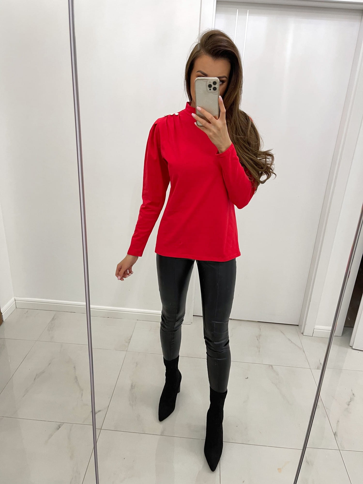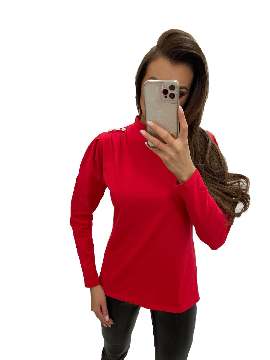 Modna bluzka typu półgolf od polskiej marki Top Moda Collection. Czerwona bluzka damska wykonana z komfortowej w noszeniu gładkiej bawełny z dodatkiem elastanu.