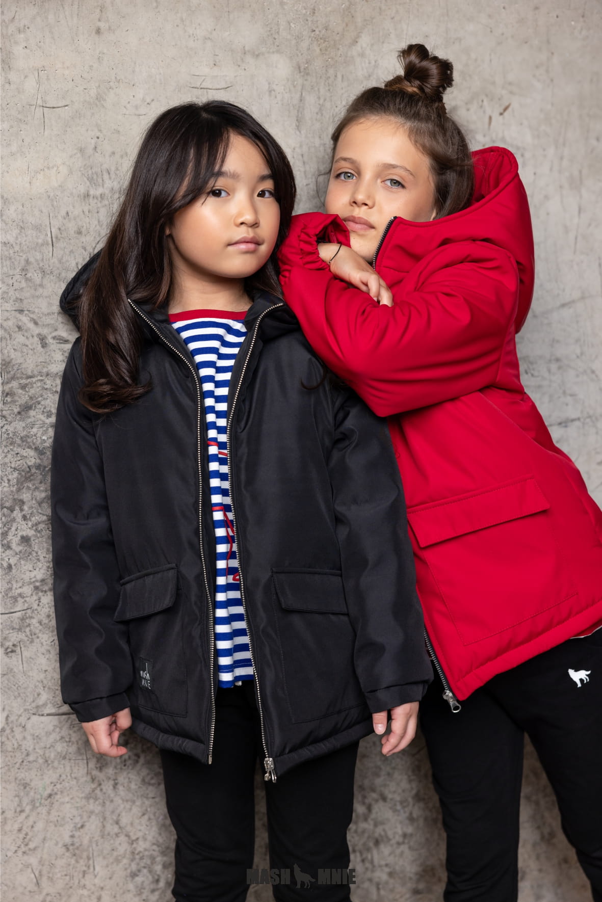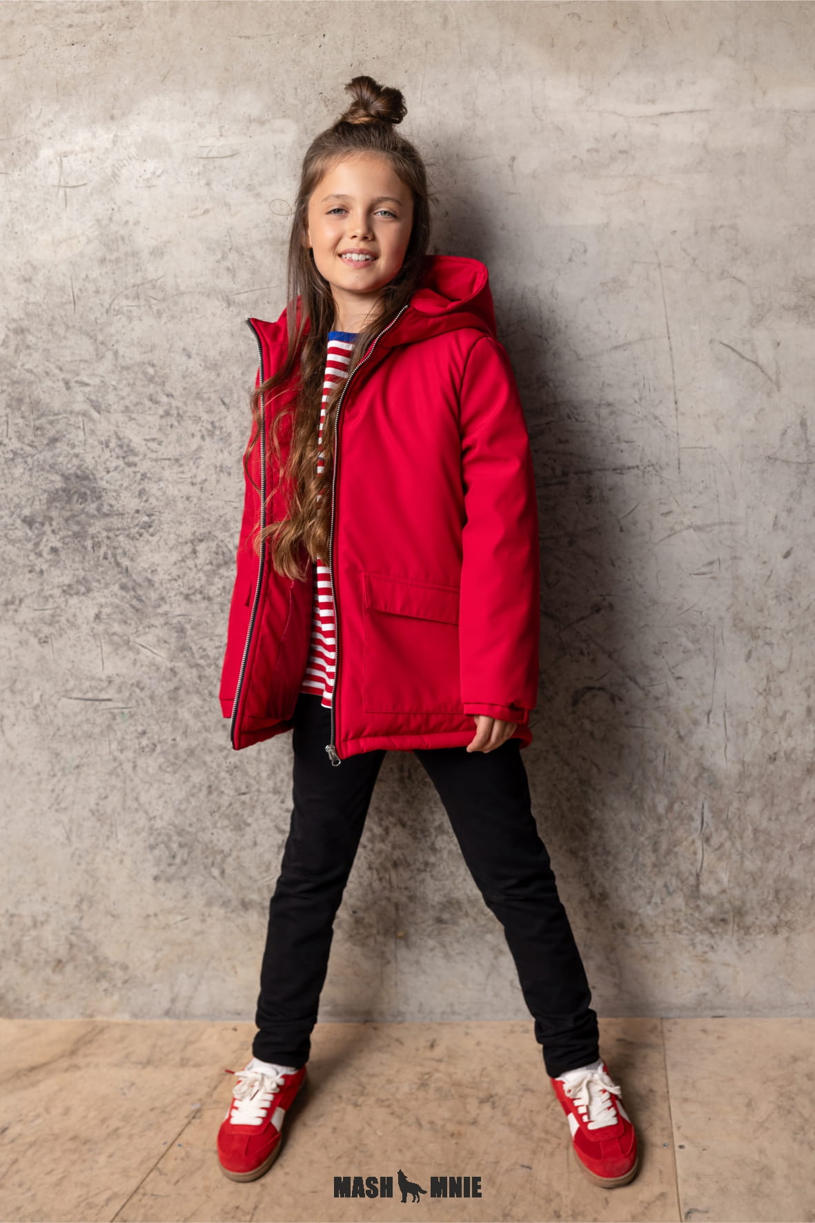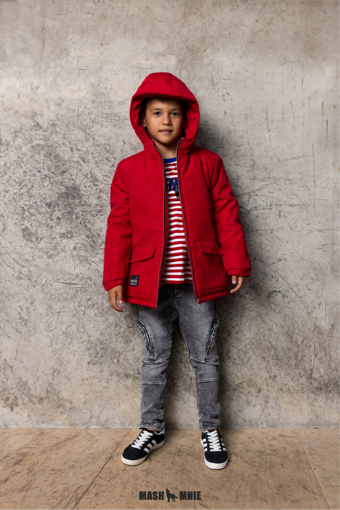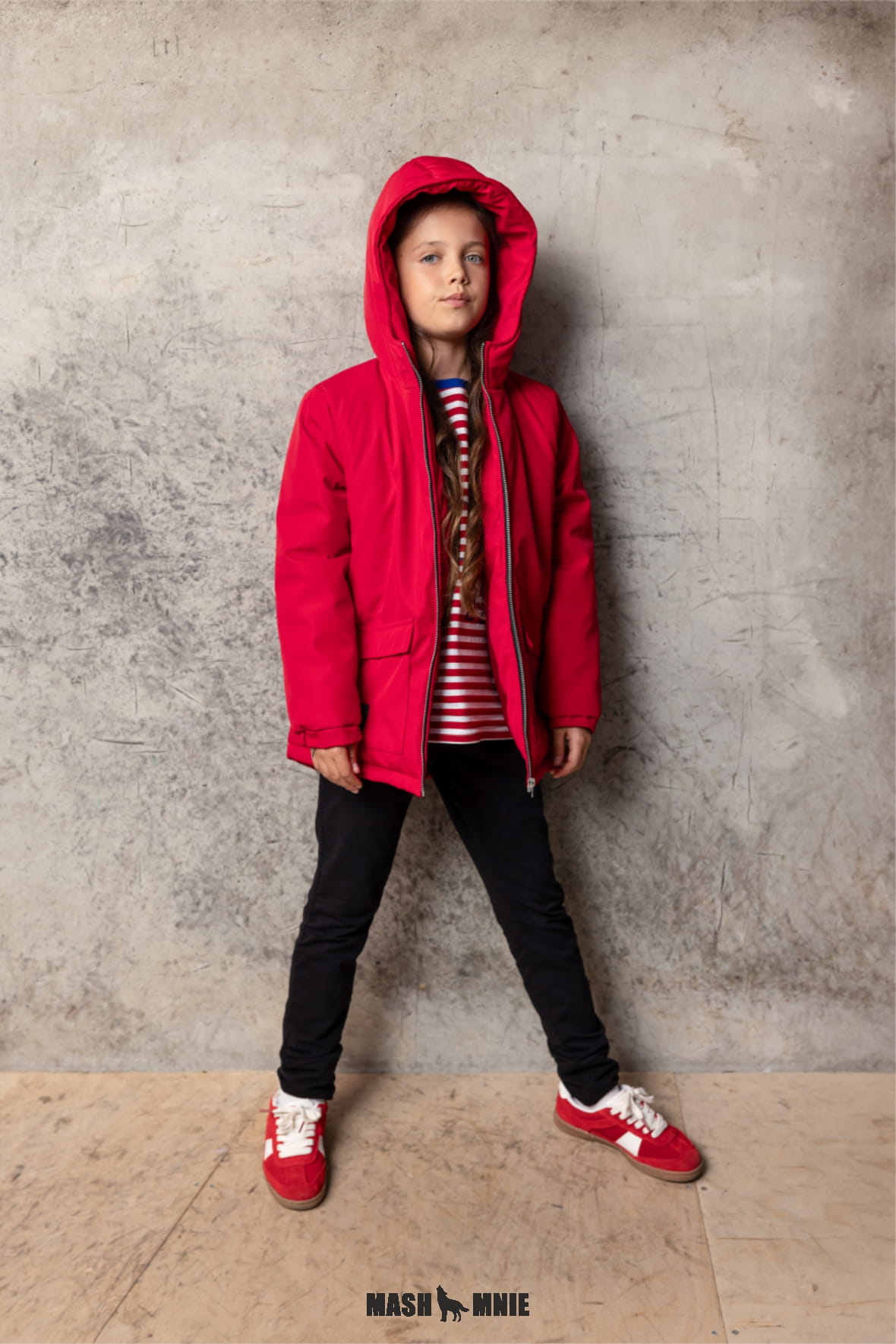 Czerwona kurtka MASHMNIE zaprojektowana została dla dziewczynki i dla chłopca.