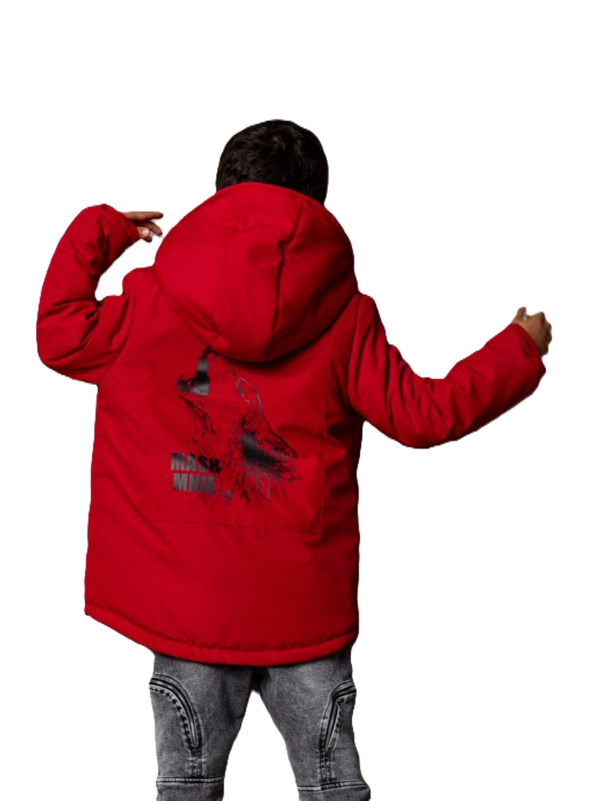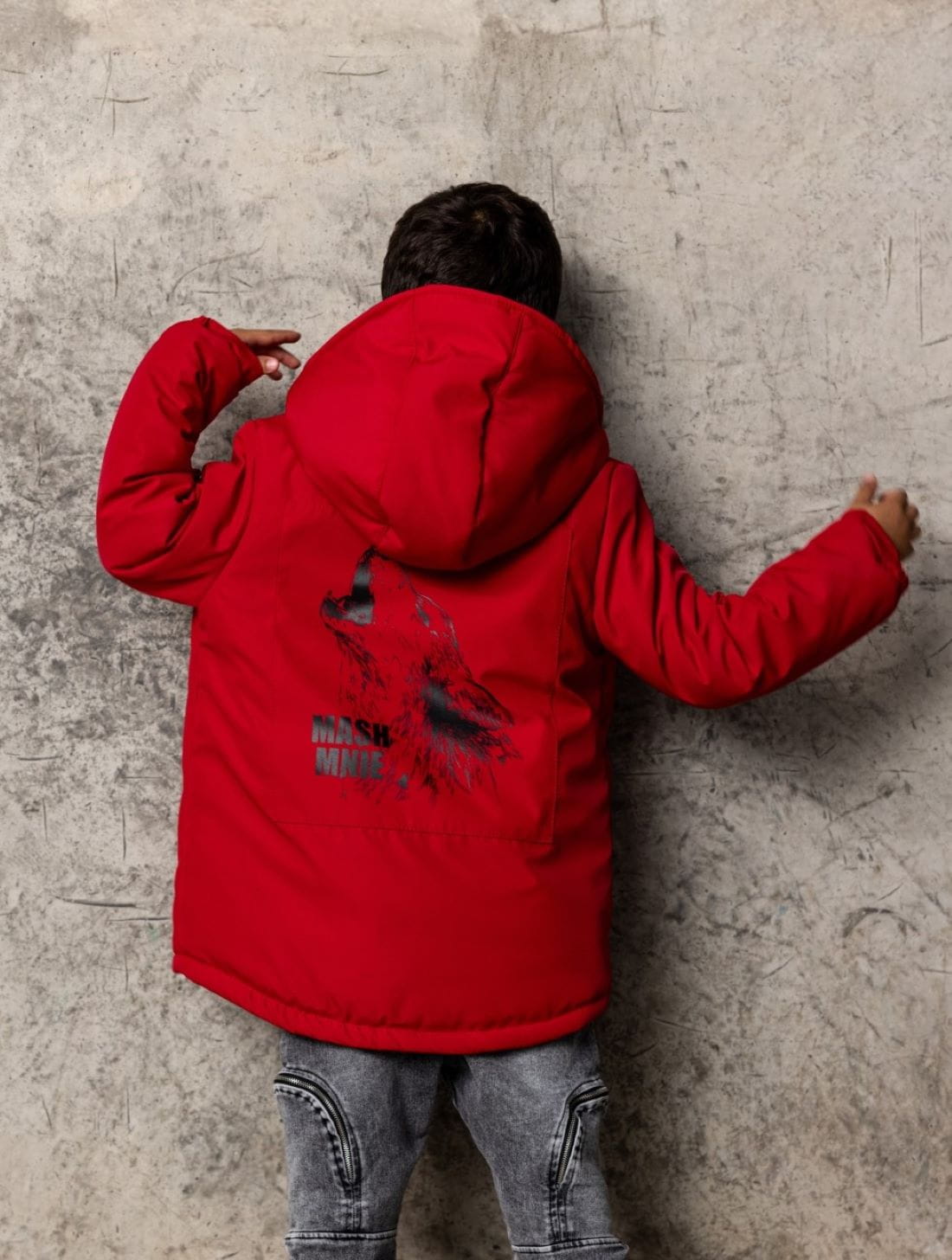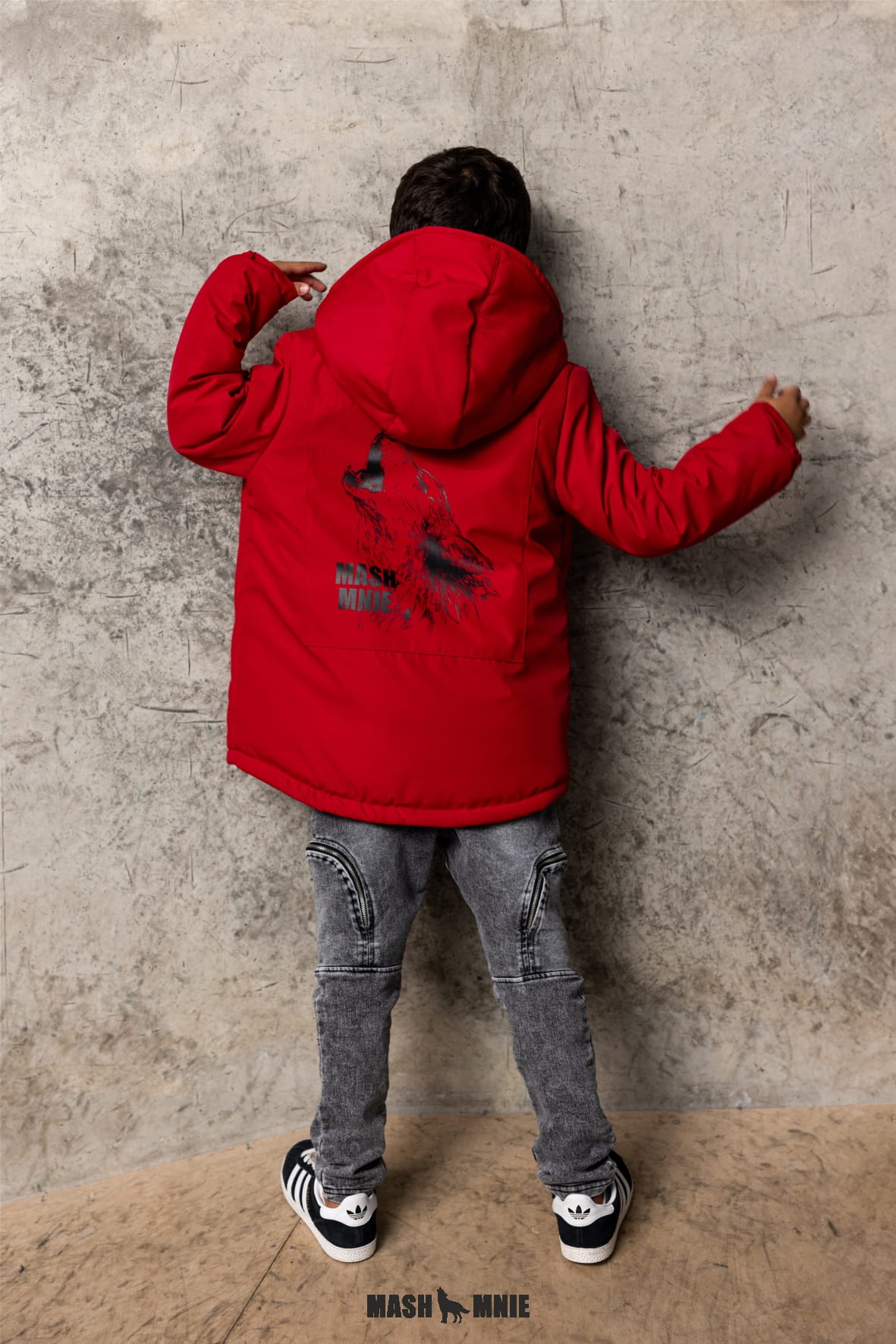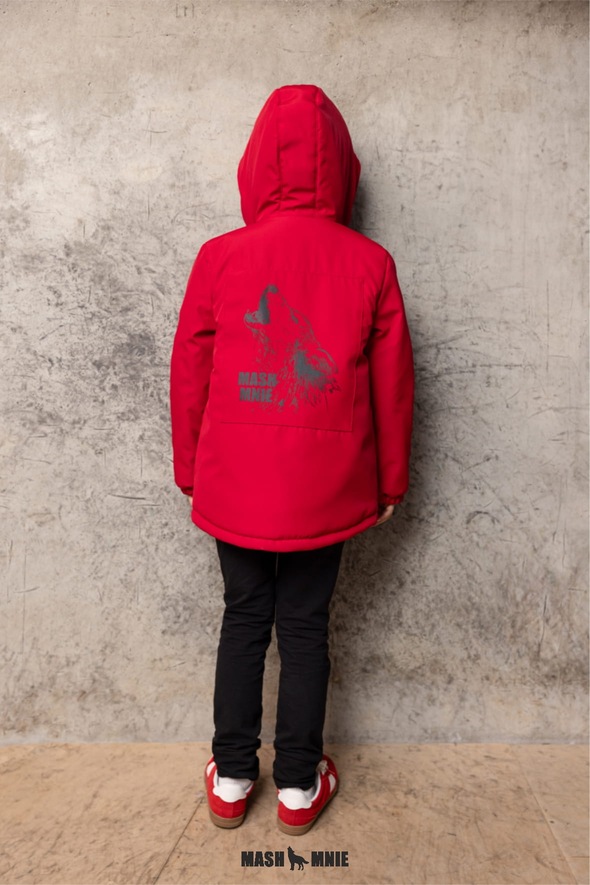 Czerwona kurtka zimowa z kapturem i wilkiem Mash MNIE