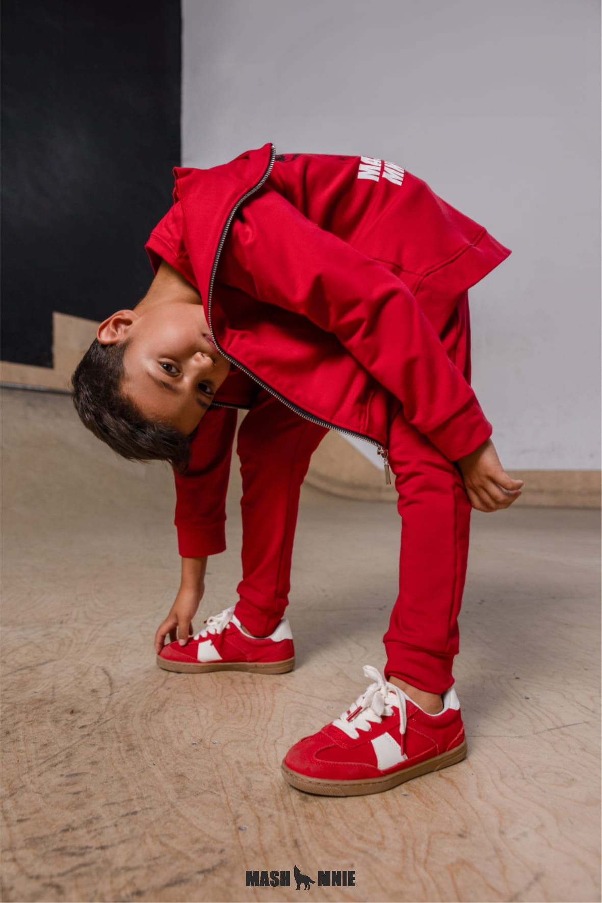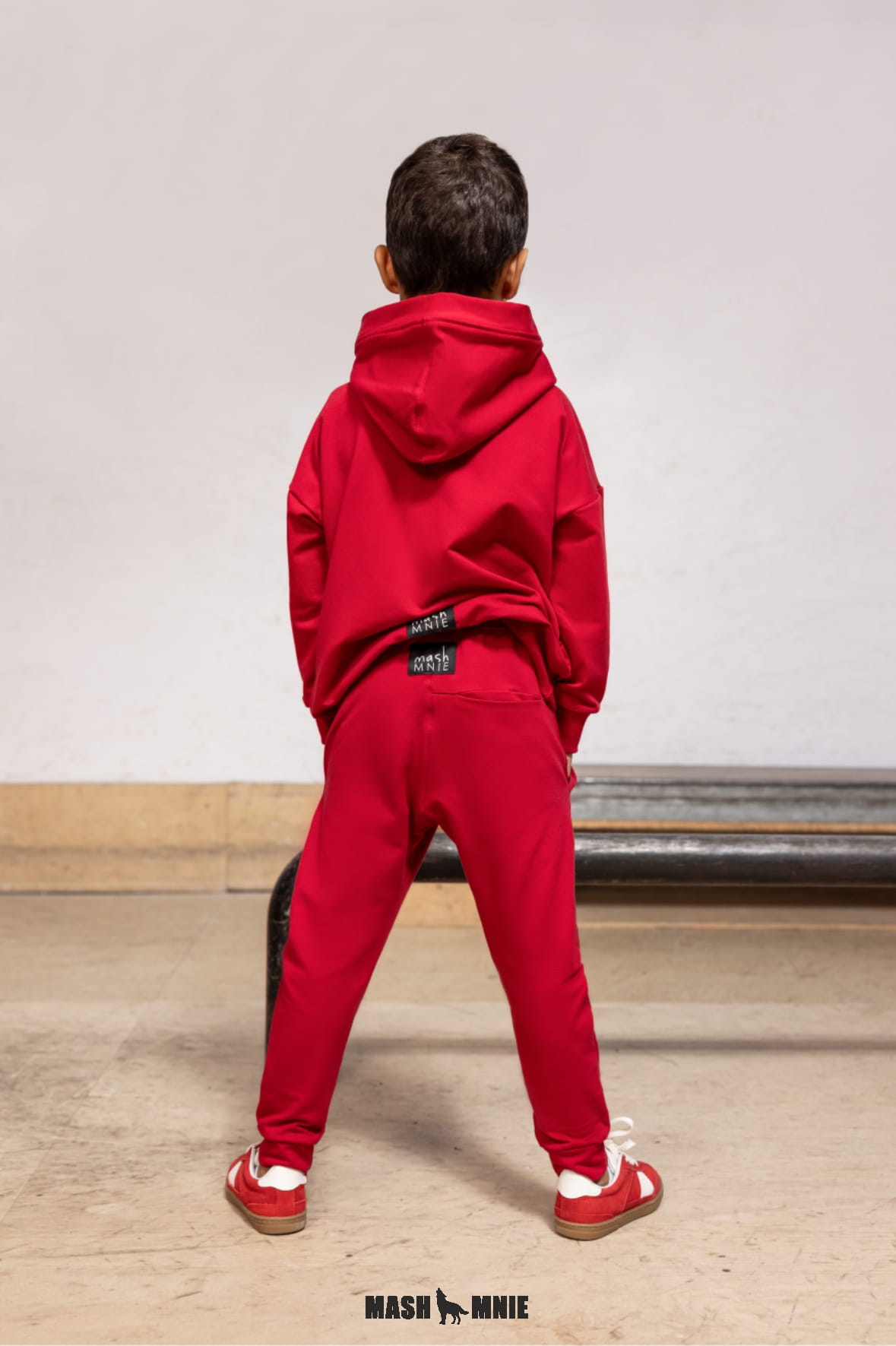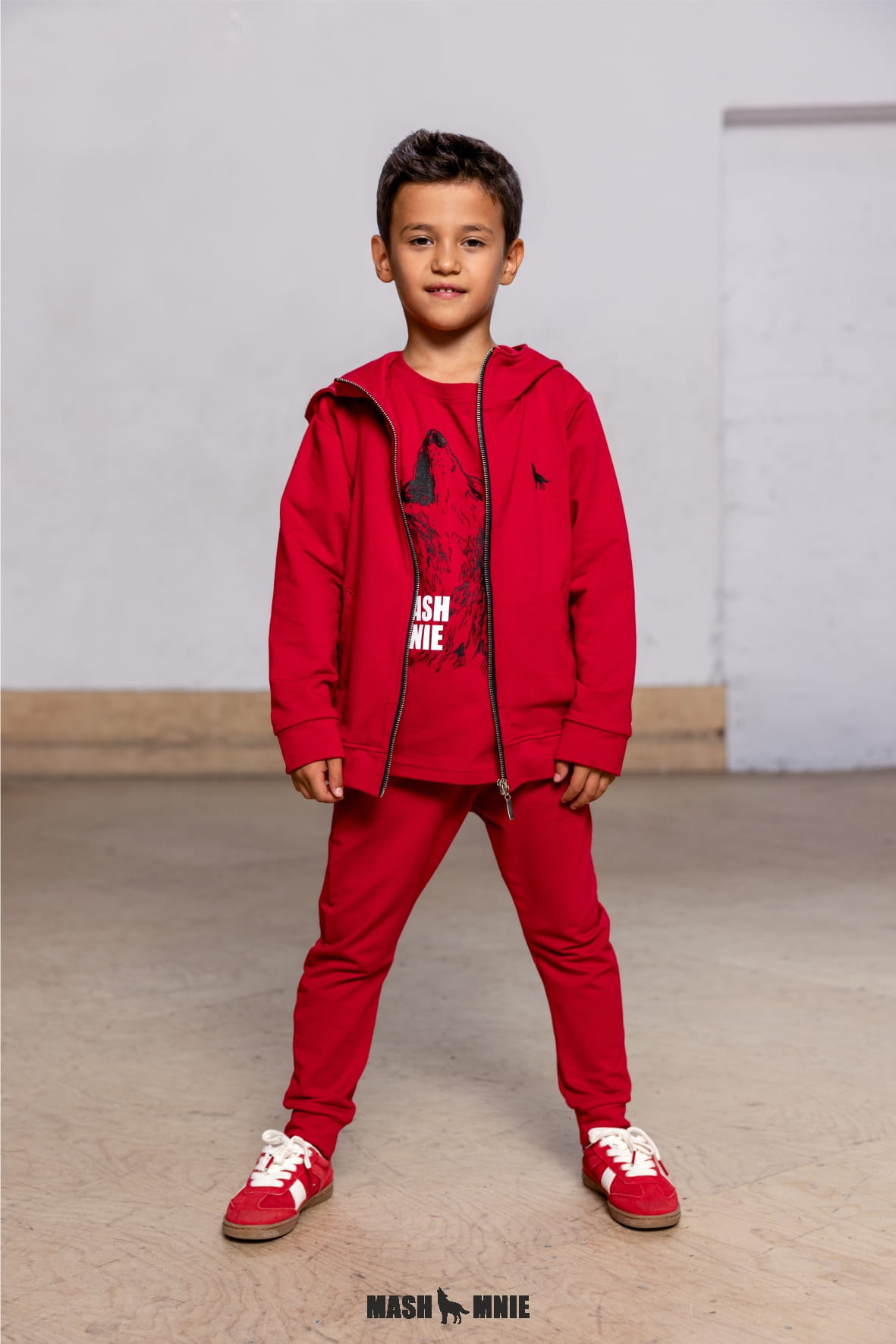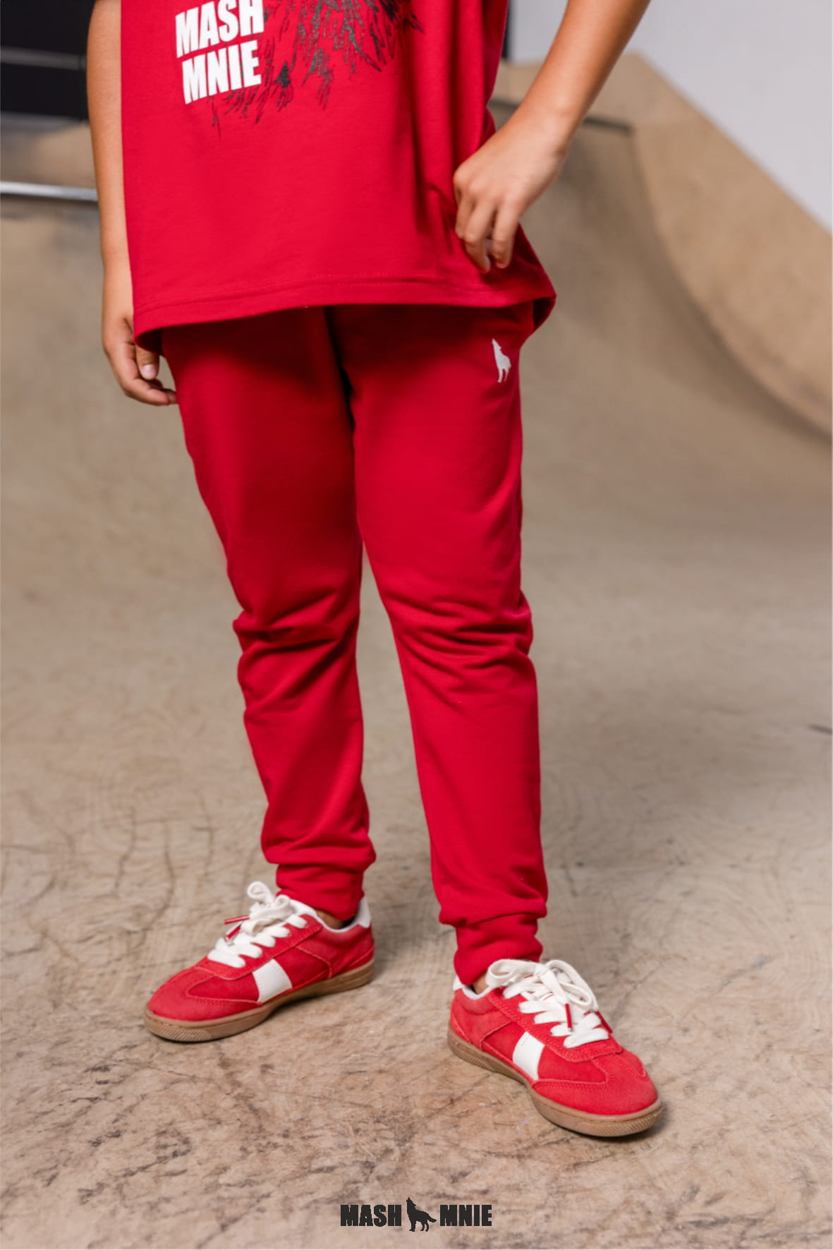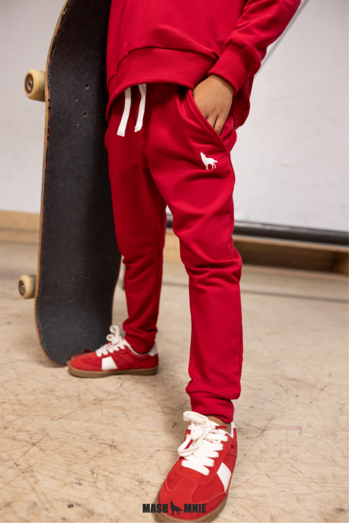Czerwone spodnie wolf od polskiej marki Mash MNIE to modny i stylowy element w dziecięcej garderobie. Modne spodnie dziecięce wykonane zostały z wysokiej jakości, komfortowej w noszeniu dzianiny dresowej.