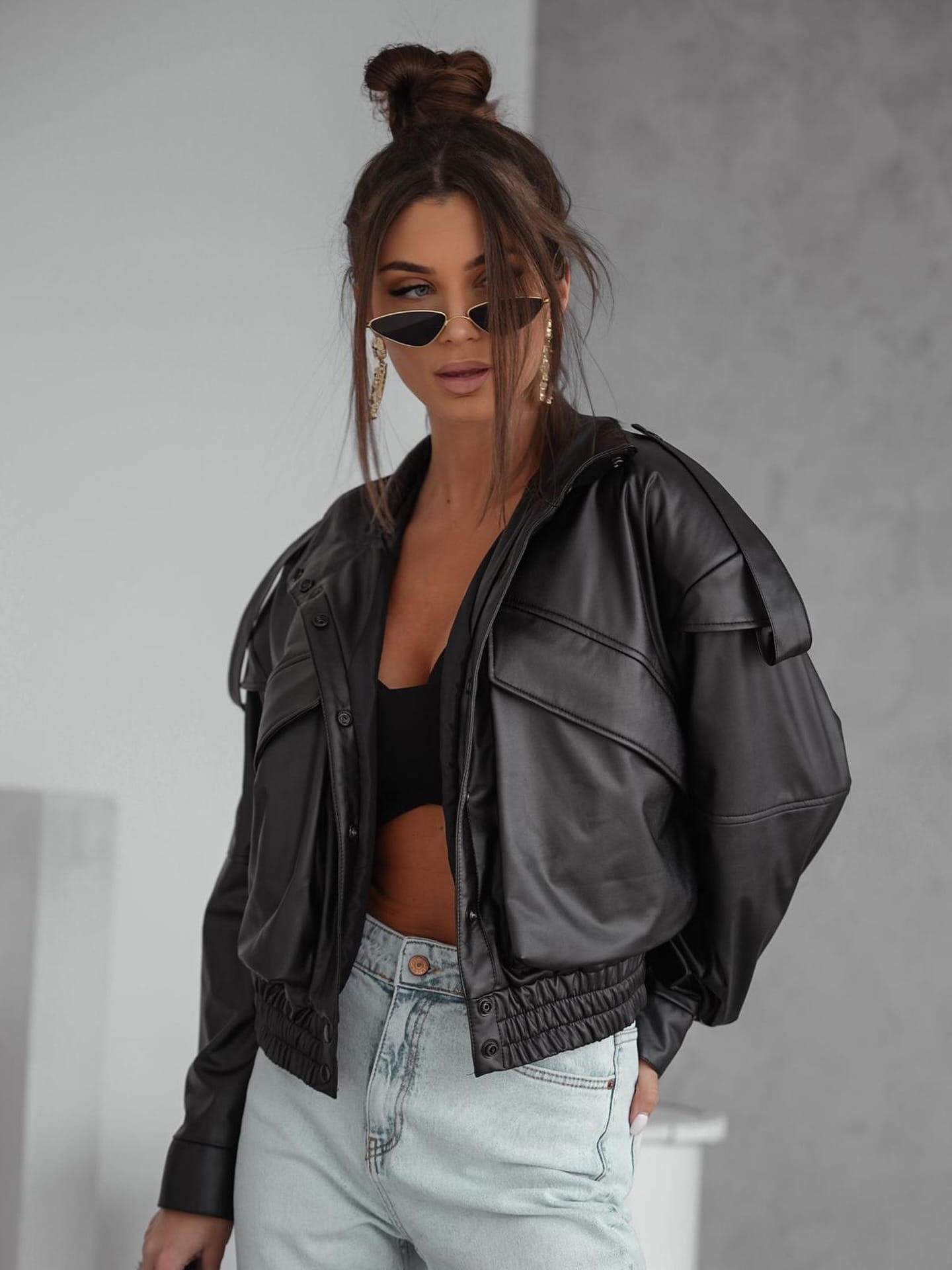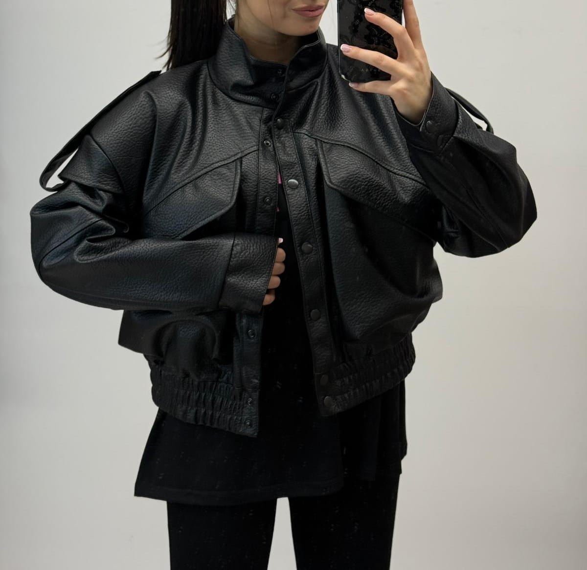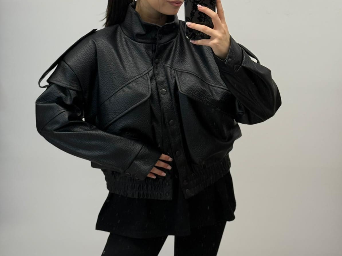 Stylowa i nowoczesna kurtka bomberka z eko skóry to must-have w każdej kobiecej garderobie! Ta przejściowa kurtka typu bomber to idealny wybór na wiosnę i jesień - zarówno do codziennych stylizacji, jak i wieczornych wyjść. Wykonana z modnej eko skóry, zapewnia komfort i modny wygląd. Detale takie jak poduszki w ramionach, pagony i przedłużona linia ramion dodaje jej charakteru inspirowanego militarnym stylem.