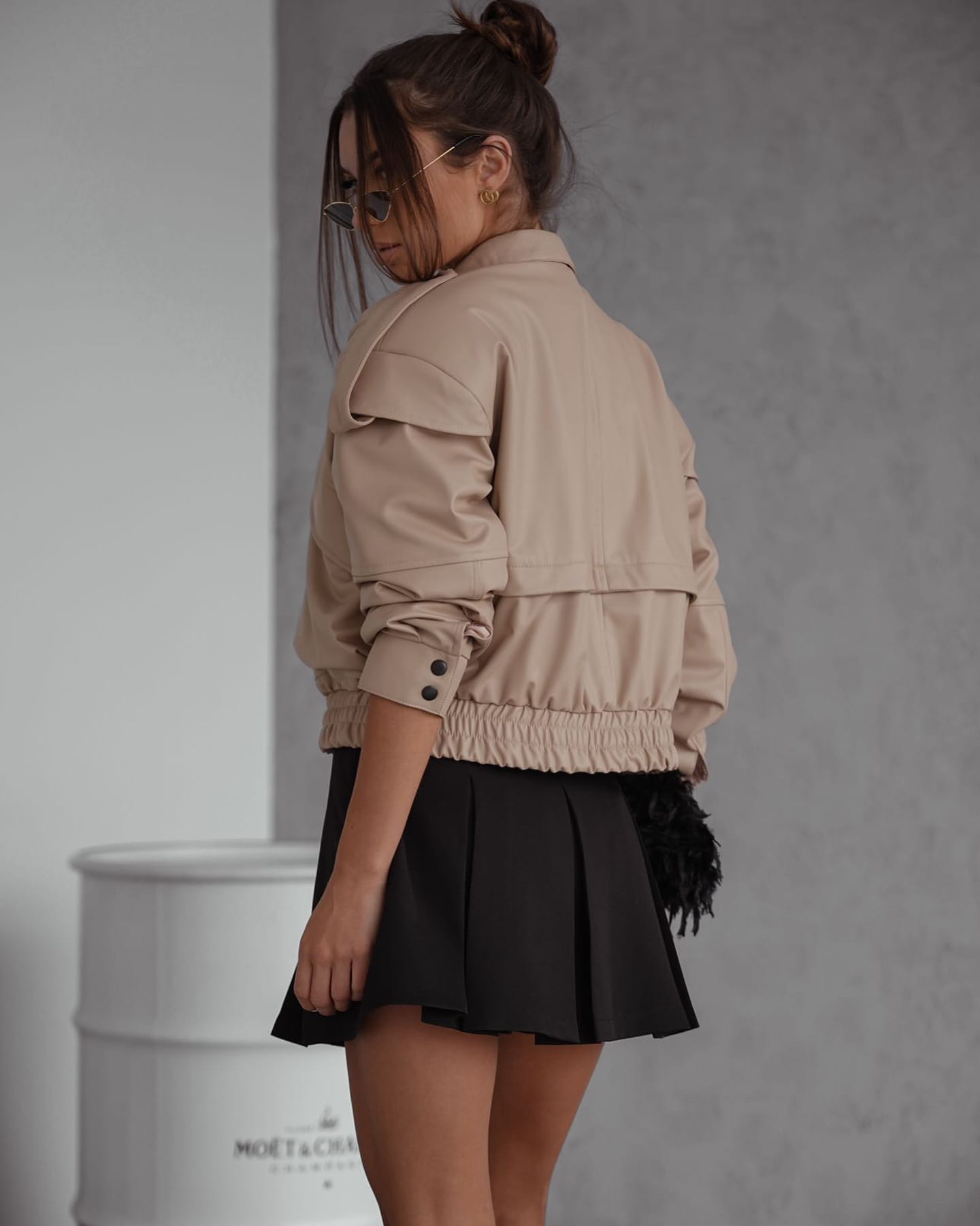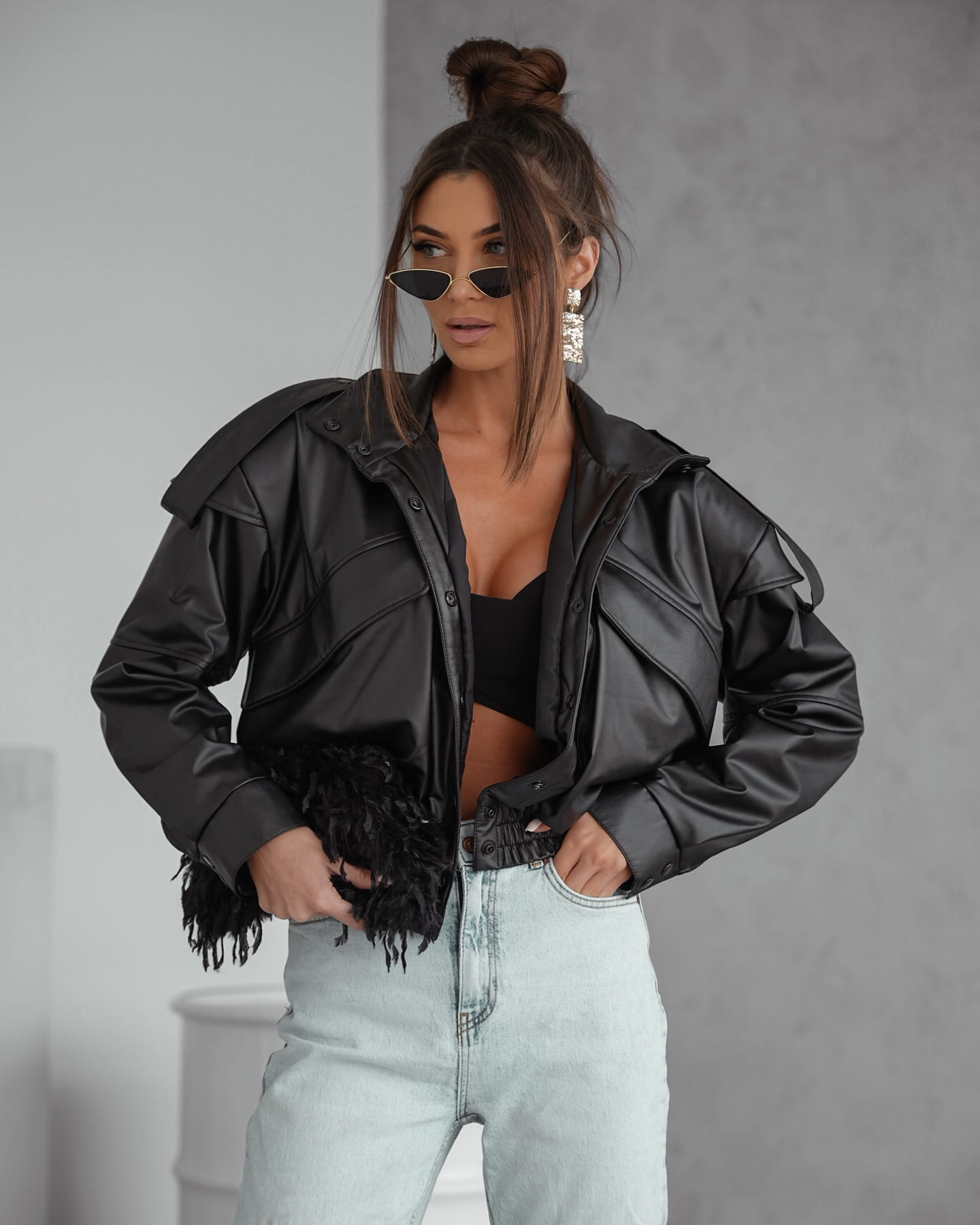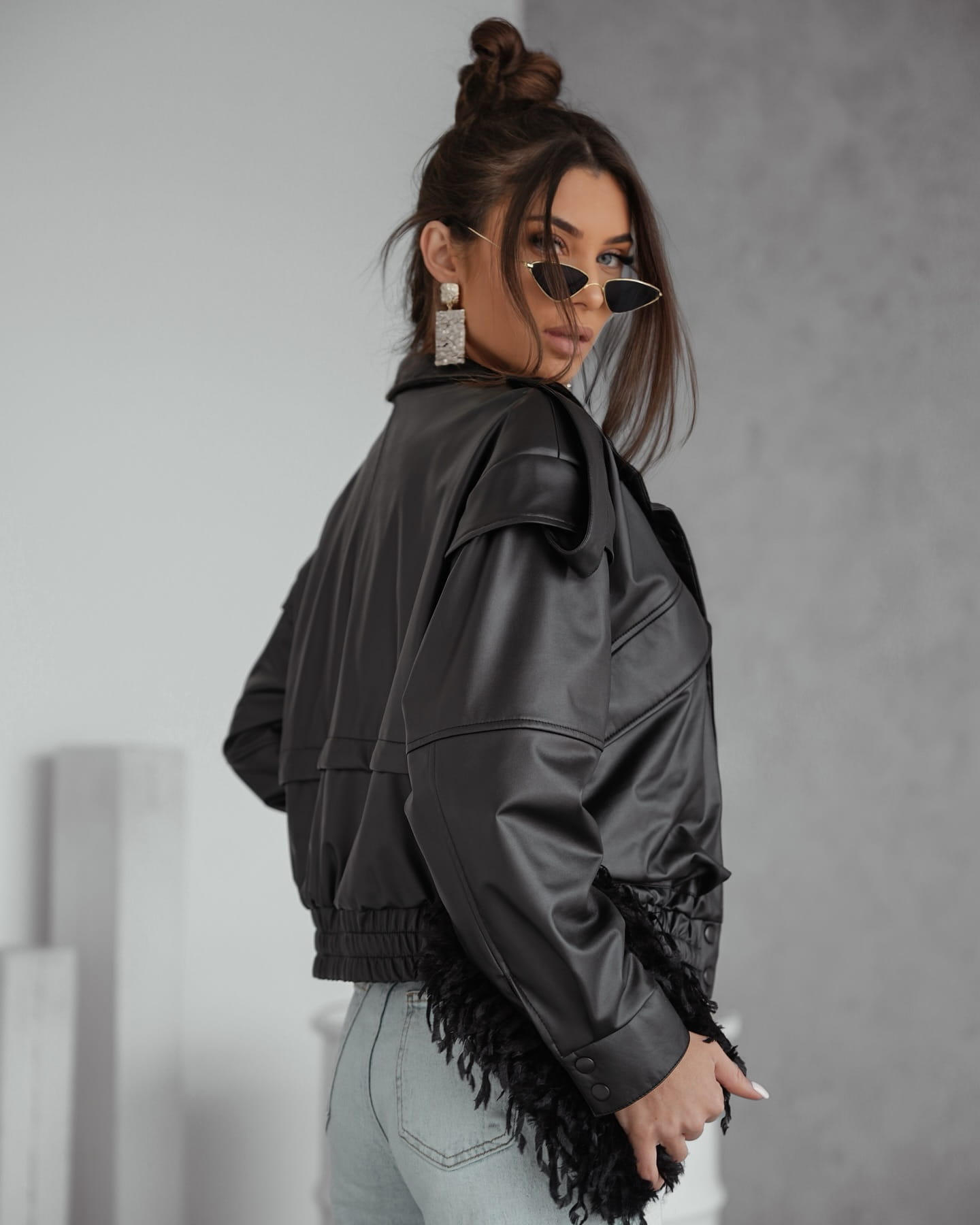 Stylowa i nowoczesna kurtka bomberka z eko skóry to must-have w każdej kobiecej garderobie! Ta przejściowa kurtka typu bomber to idealny wybór na wiosnę i jesień - zarówno do codziennych stylizacji, jak i wieczornych wyjść. Wykonana z modnej eko skóry, zapewnia komfort i modny wygląd. Detale takie jak poduszki w ramionach, pagony i przedłużona linia ramion dodaje jej charakteru inspirowanego militarnym stylem.