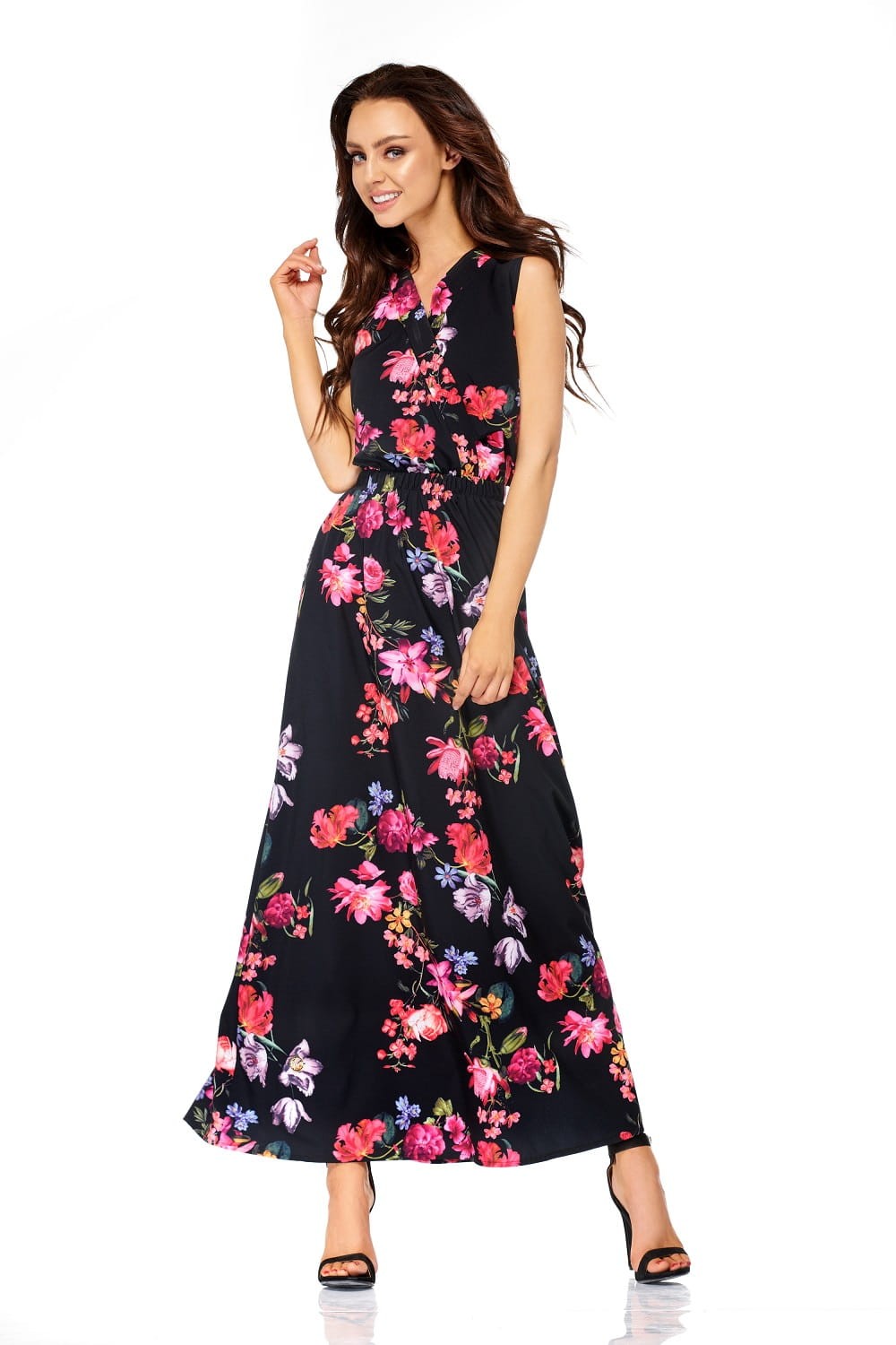 Długa sukienka maxi czarna w kwiaty Lemoniade