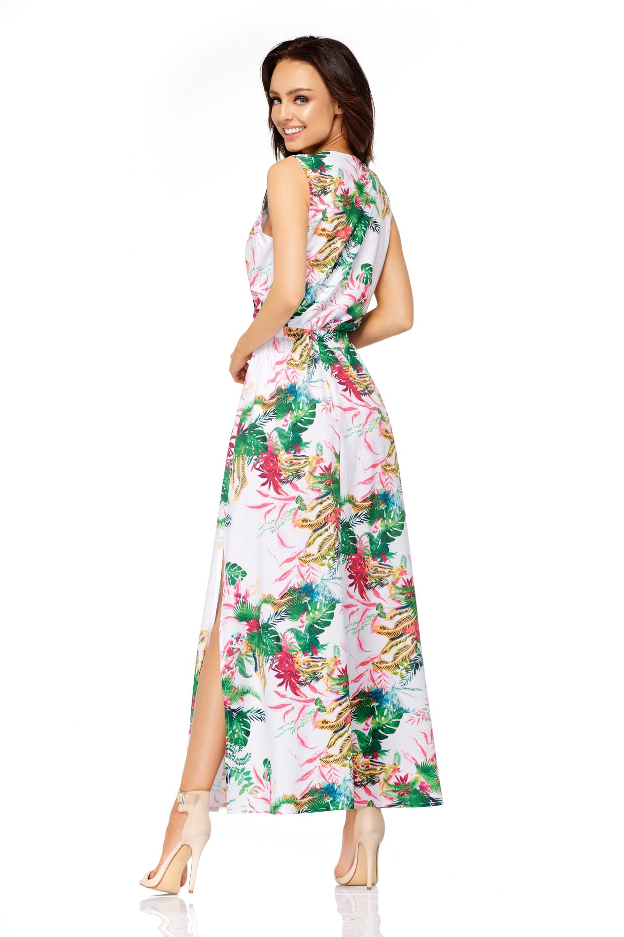 Biała sukienka w kolorowe liście będzie idealnie pasowała na codzienne wyjścia na plażę, spacer czy do pracy, jak i na wyjątkowe okazje.