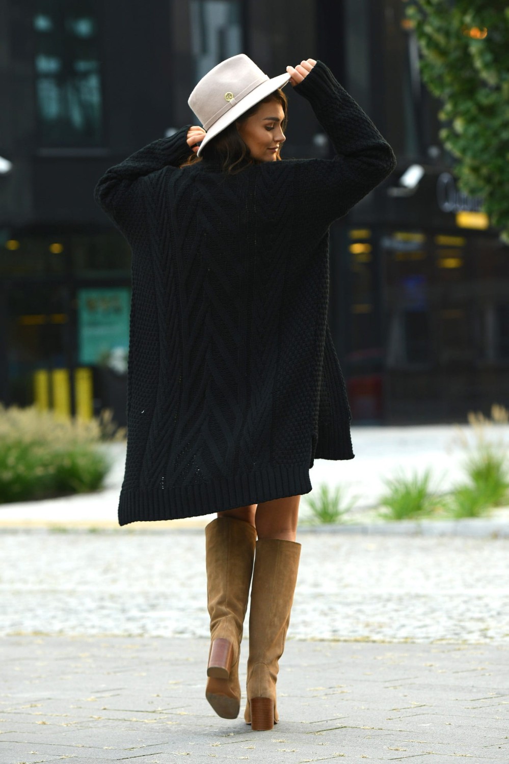 Czarny kardigan oversize to model, który przyciąga spojrzenia.