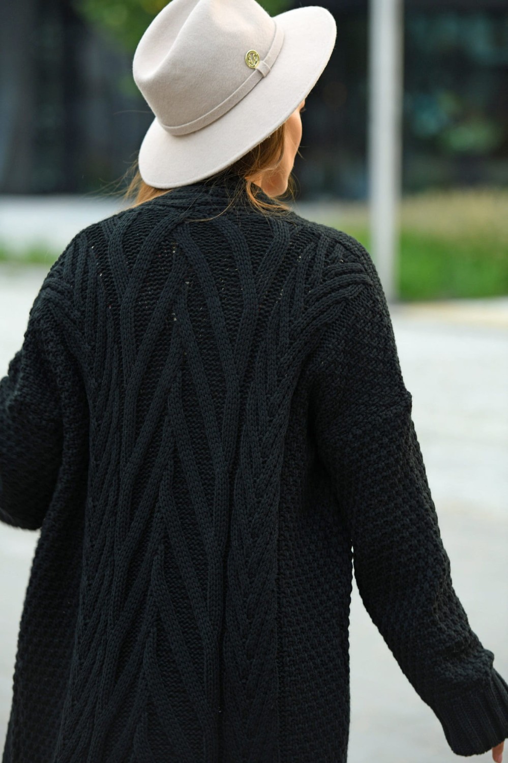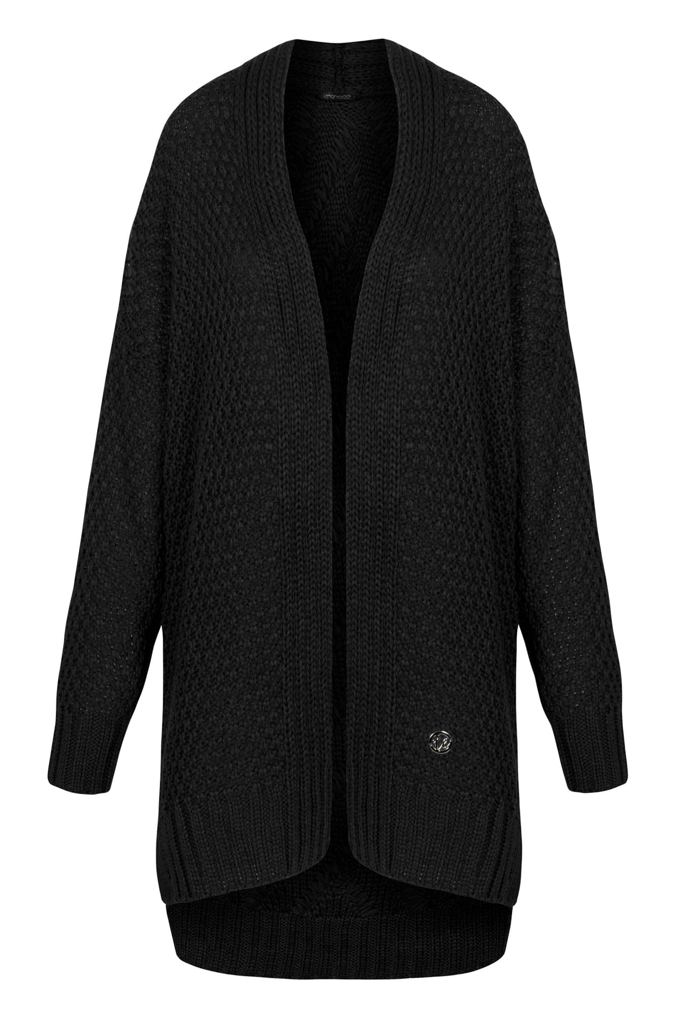 Długi kardigan oversize ze splotem czarny Lemoniade