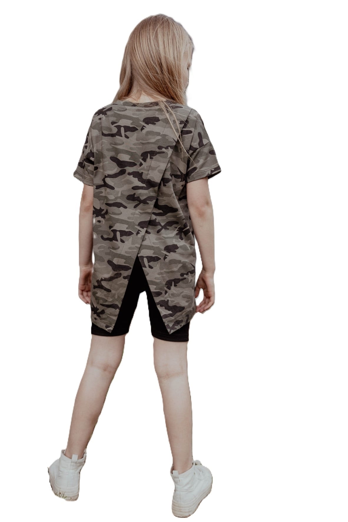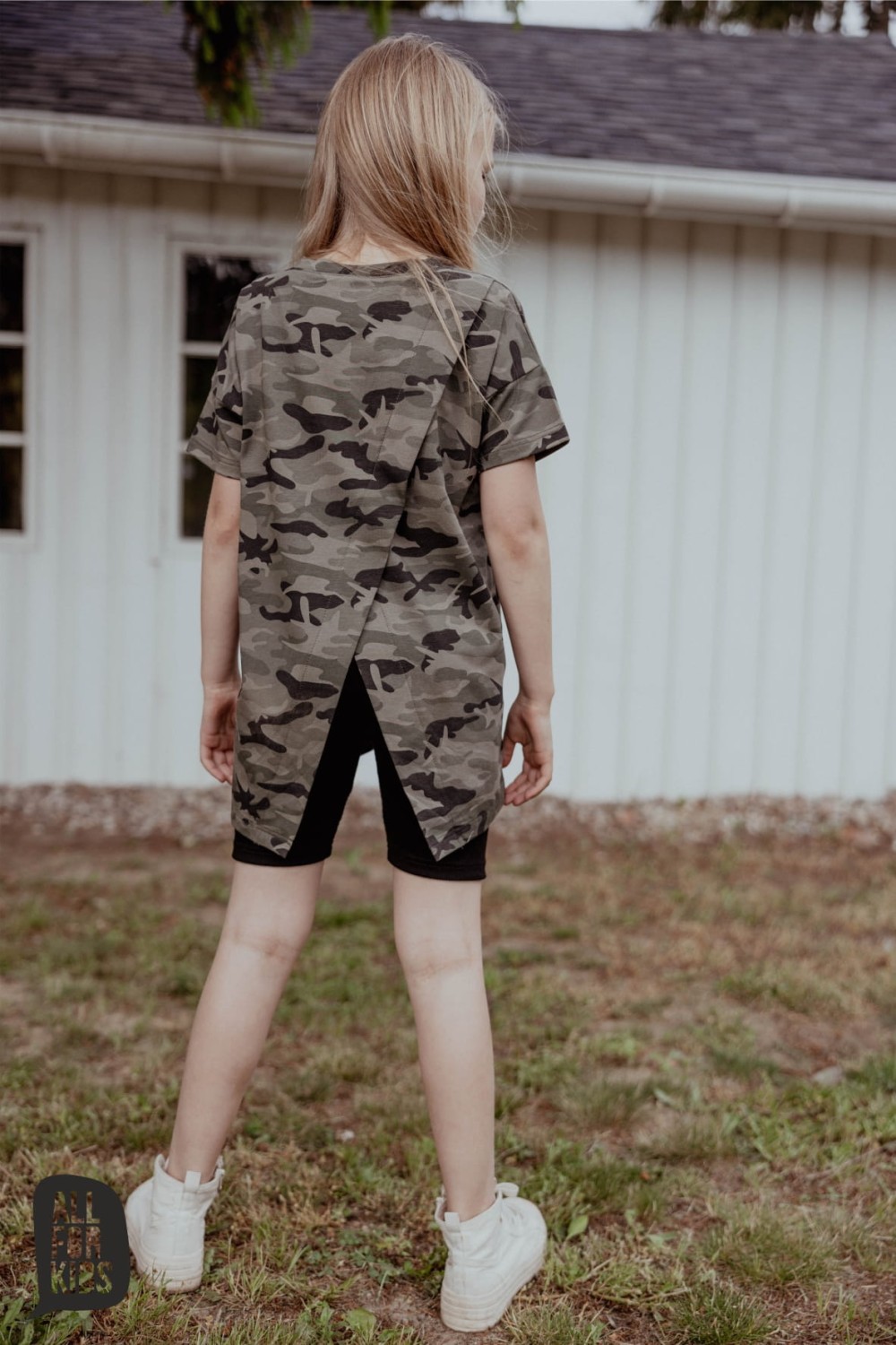 Tunika moro z asymetrycznym tyłem i grafiką na przodzie od polskiej marki All For Kids wykonana z wysokiej jakości, komfortowej w noszeniu gładkiej dzianiny.