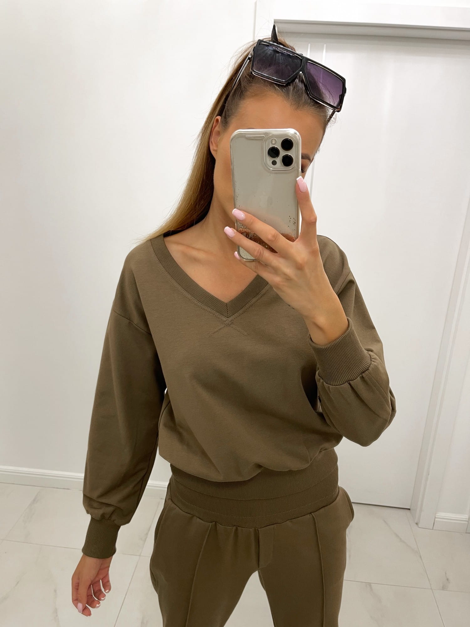 Brązowa bluza dresowa posiada: