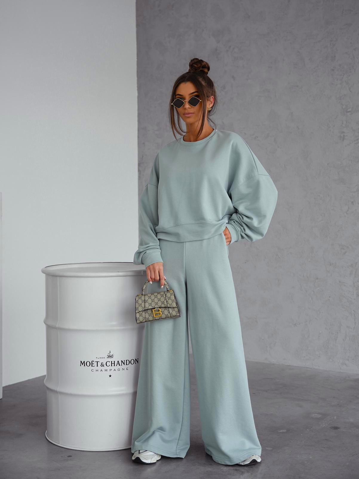 Dres damski komplet szerokie spodnie i bluza mięta Me Gusta