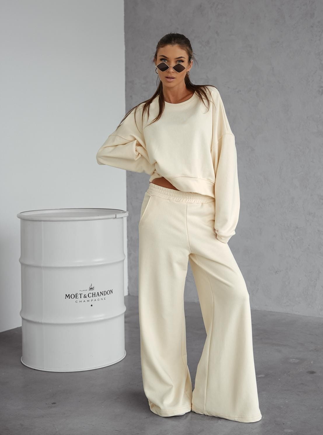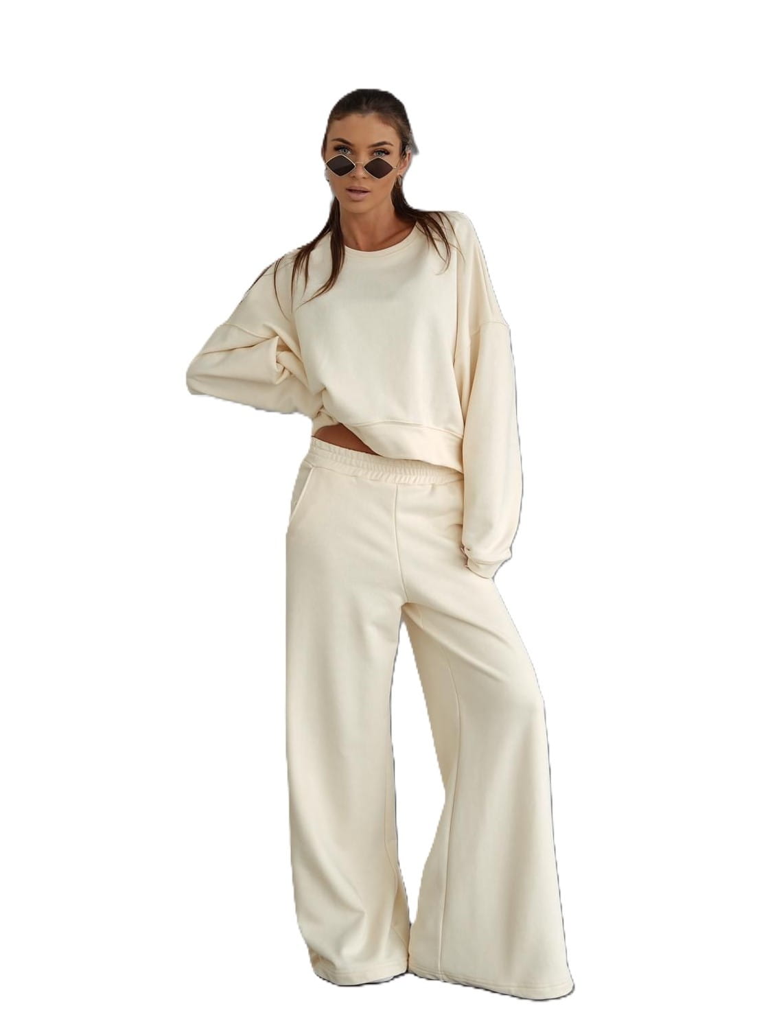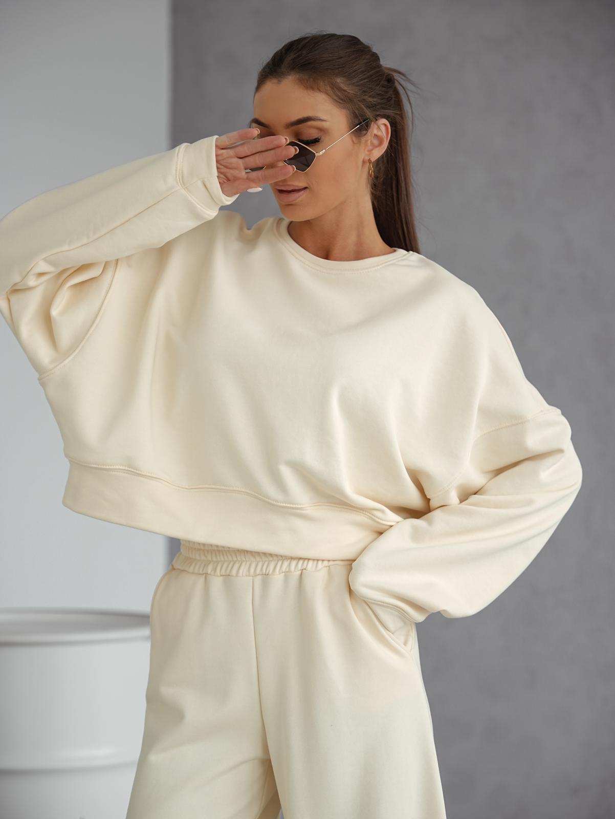 Dres damski komplet szerokie spodnie i bluza śmietankowy Me Gusta