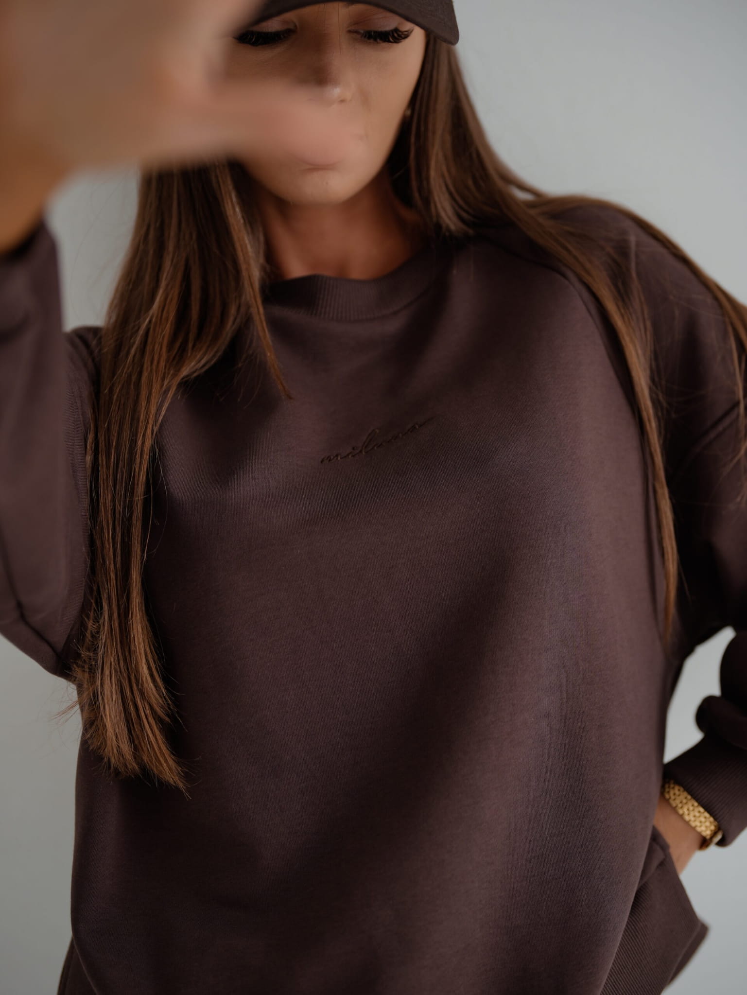 Czekoladowy dres damski od renomowanej polskiej marki Miluna to połączenie komfortu i stylu.