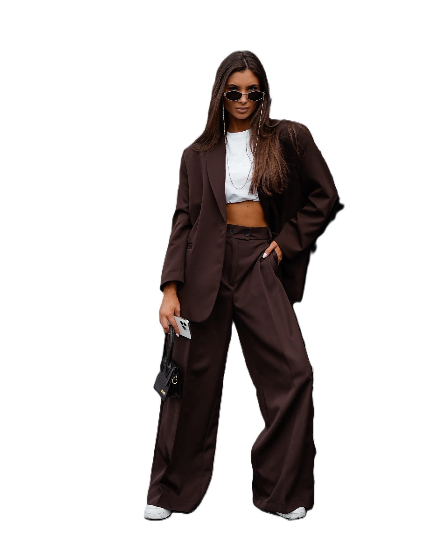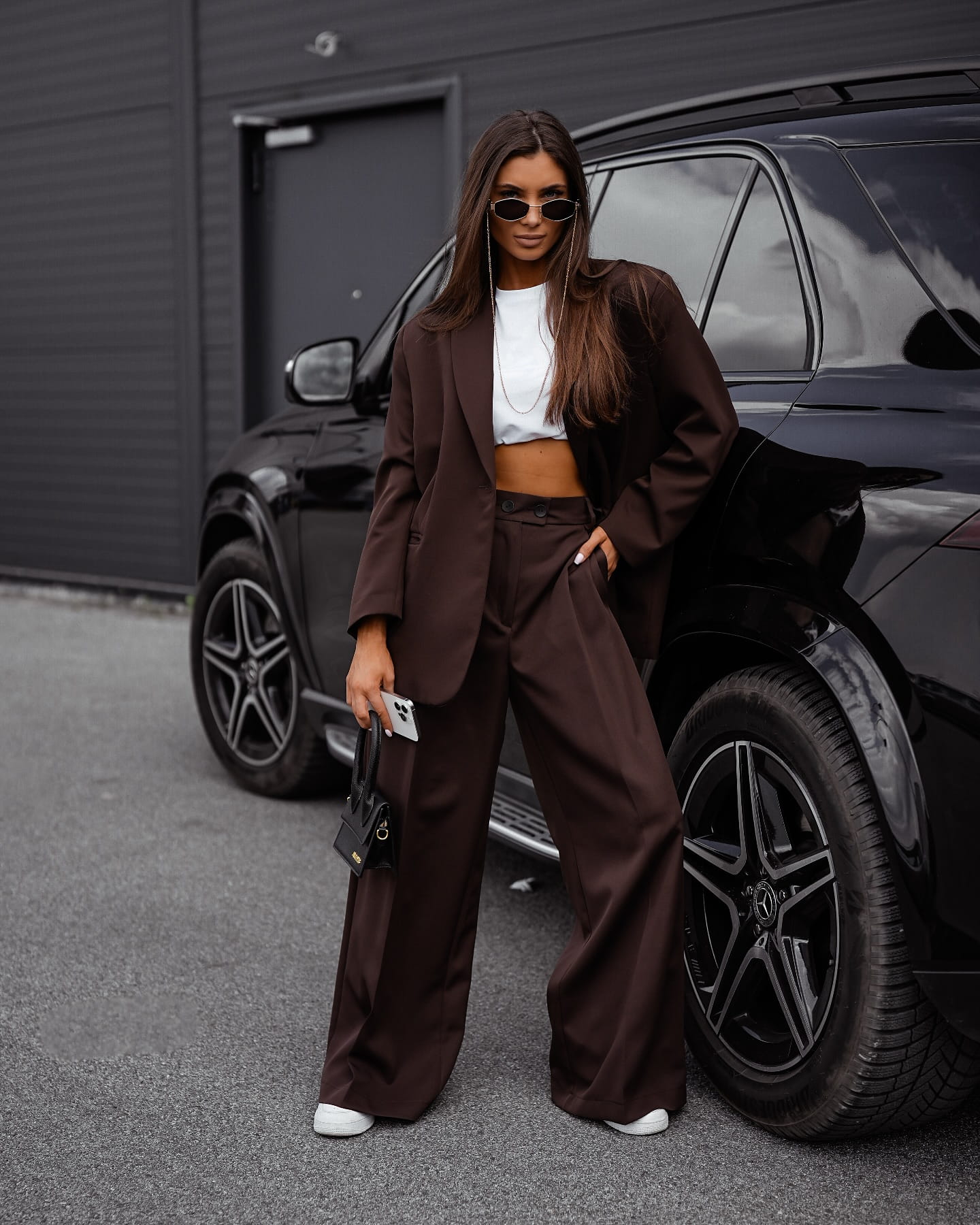 Brązowe eleganckie spodnie z szeroką nogawką - styl i wygoda w jednym